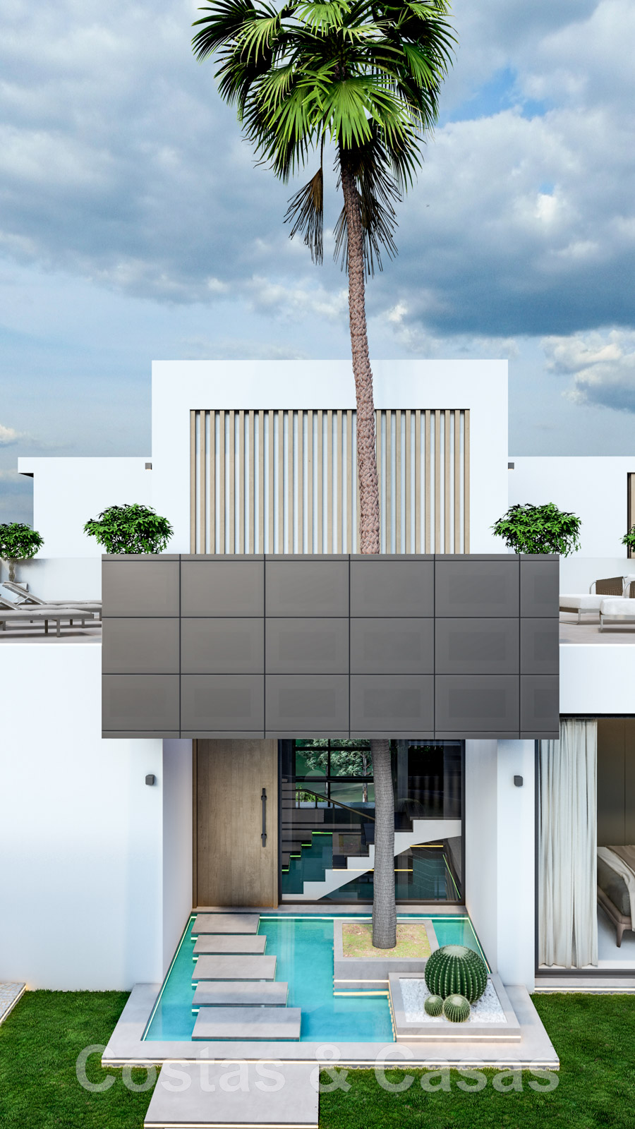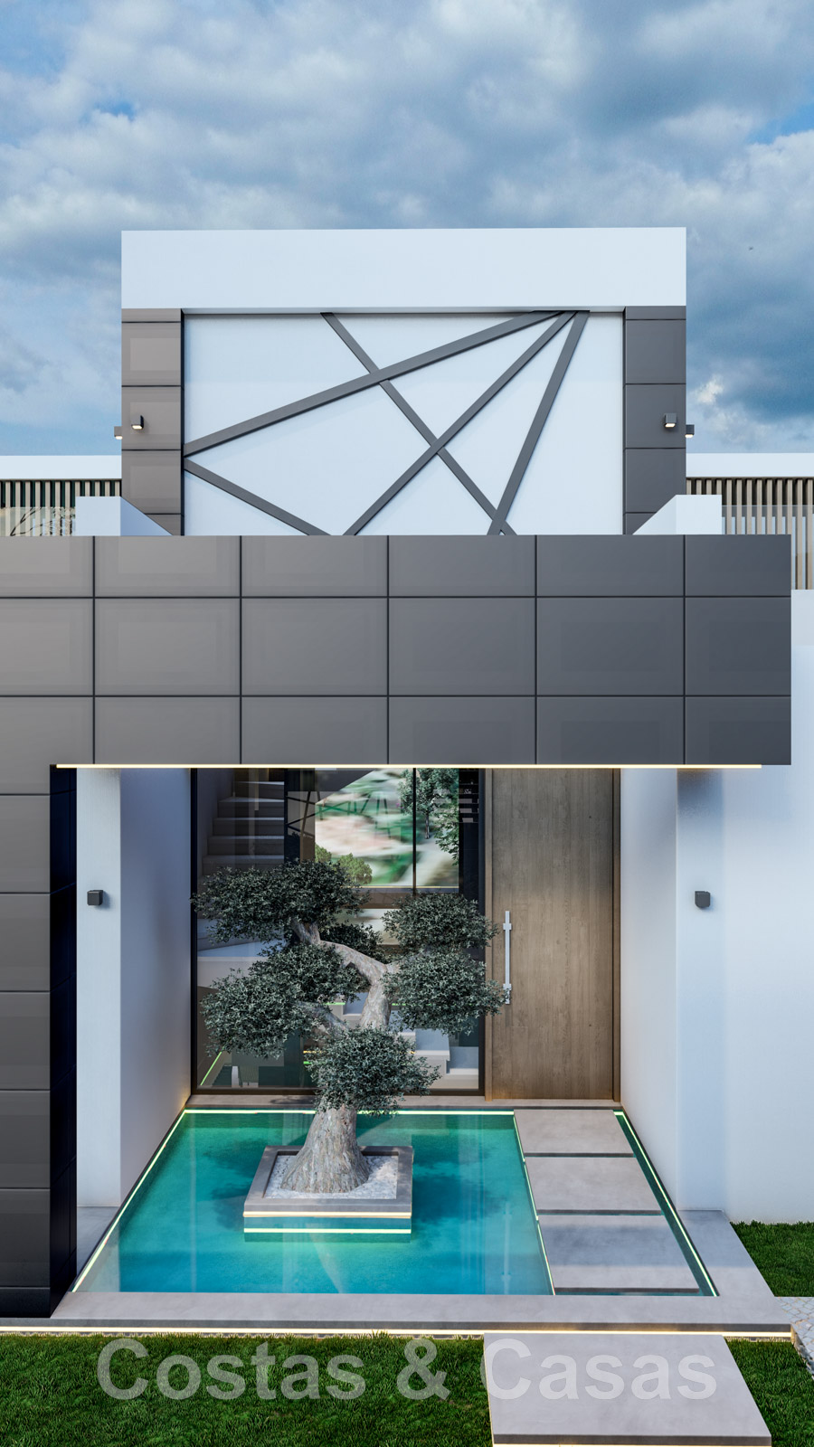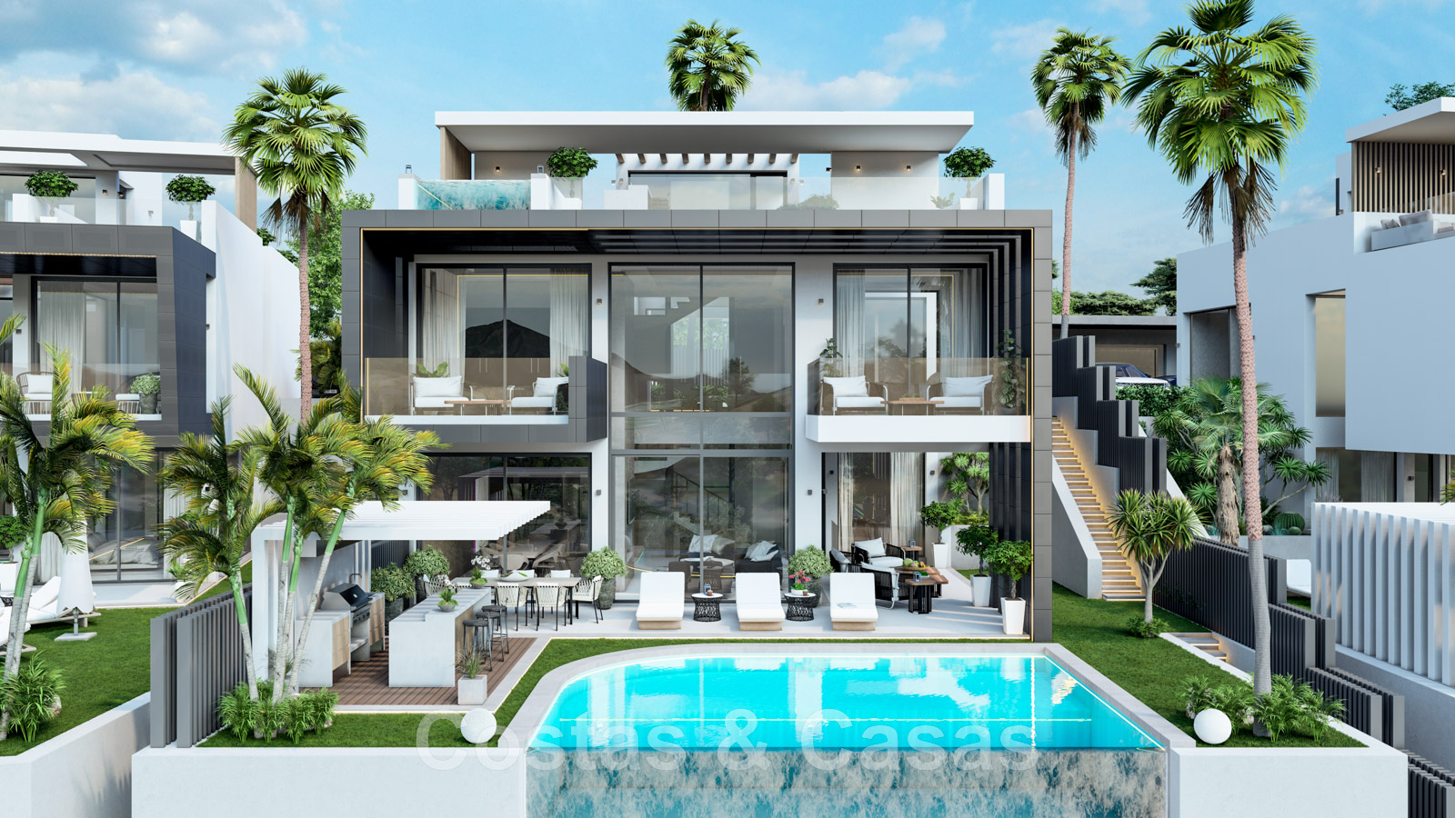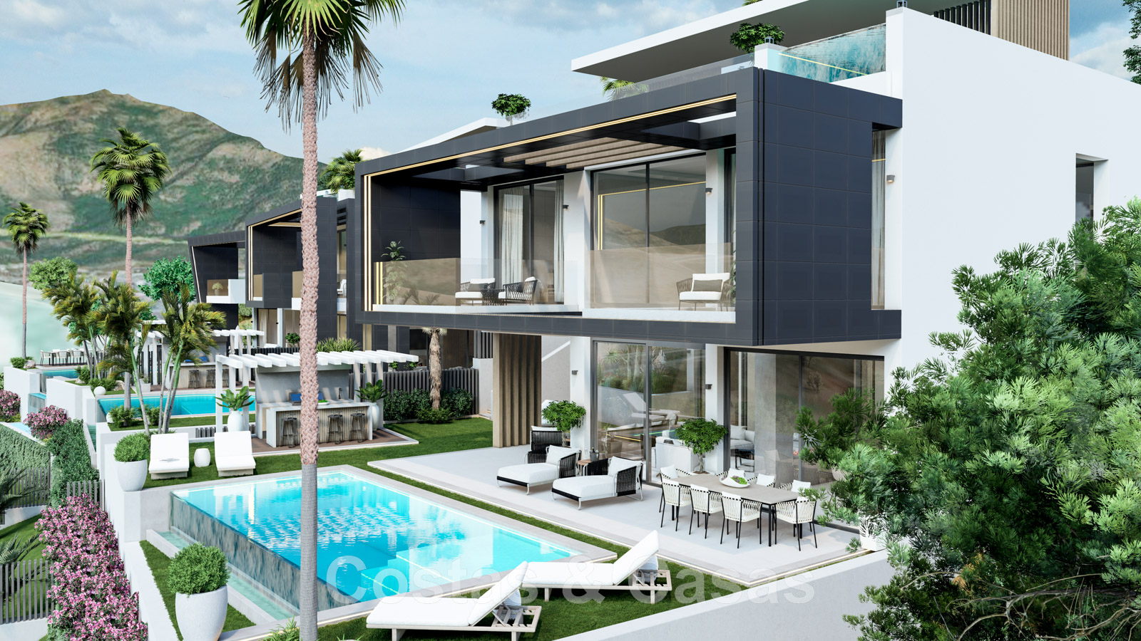 1.600.000 €LAATSTE WONING! Nieuwe, designer rijhuizen te koop, op een steenworp van het strand in Elviria ten oosten van Marbella’s centrum