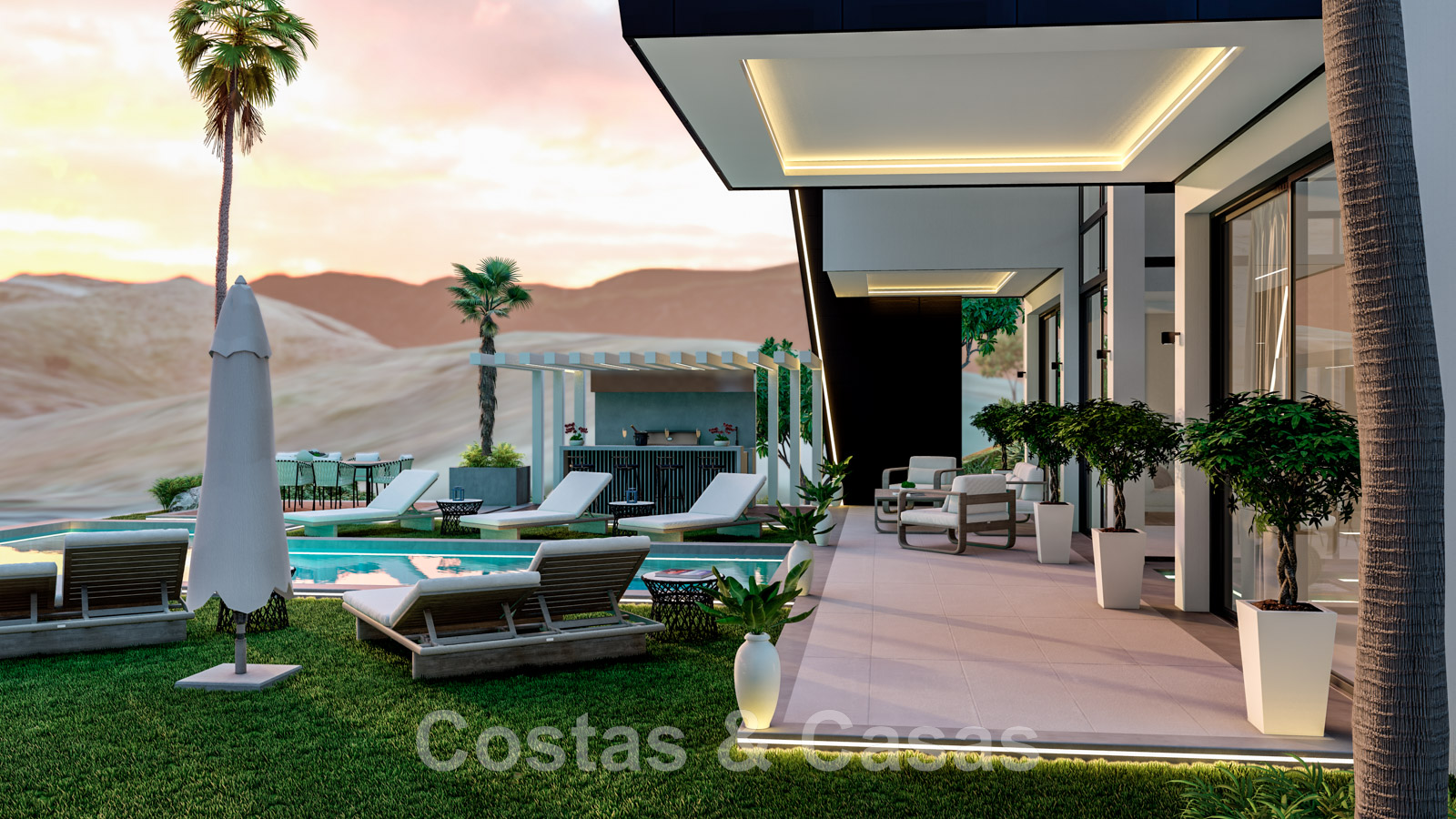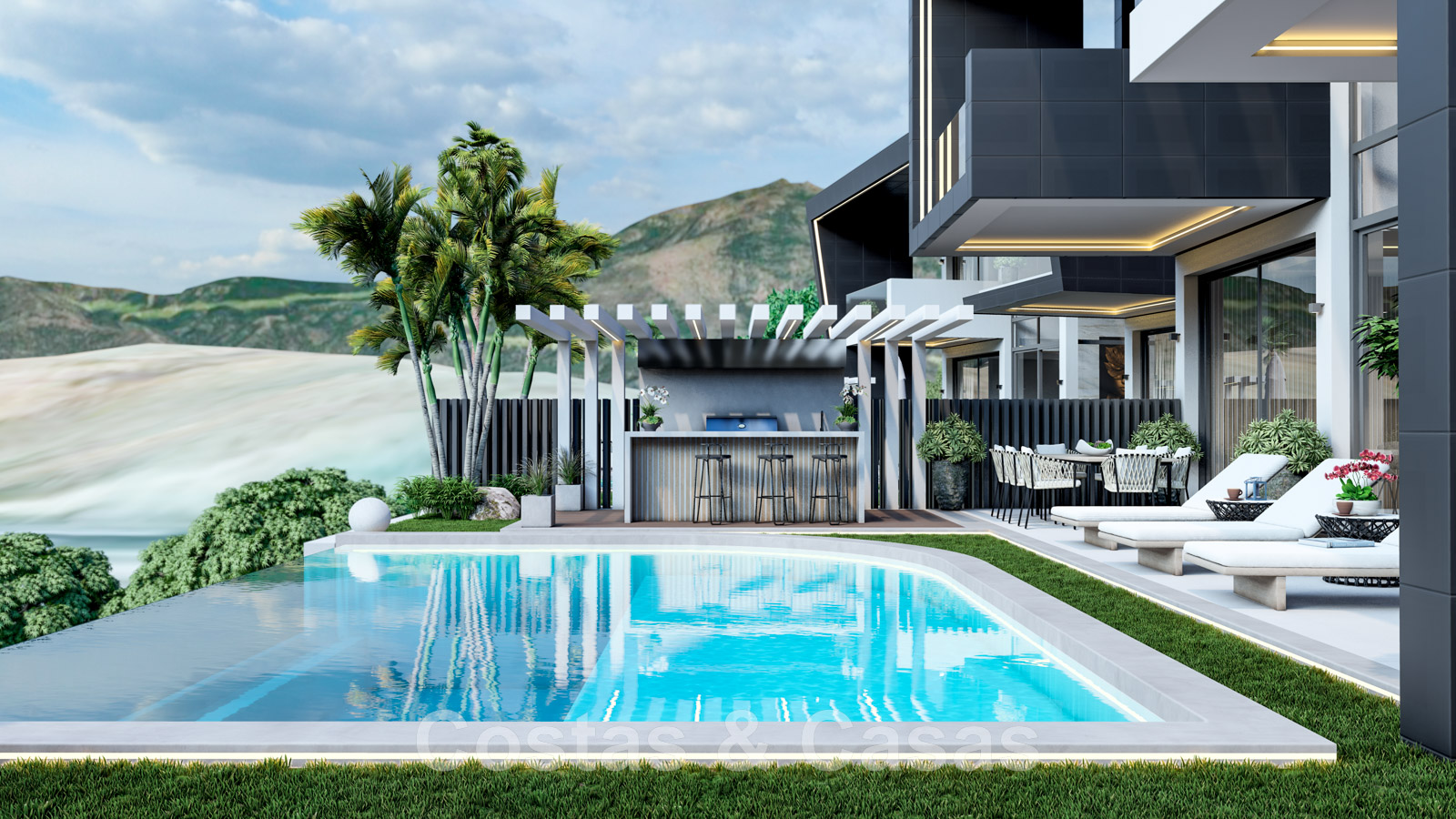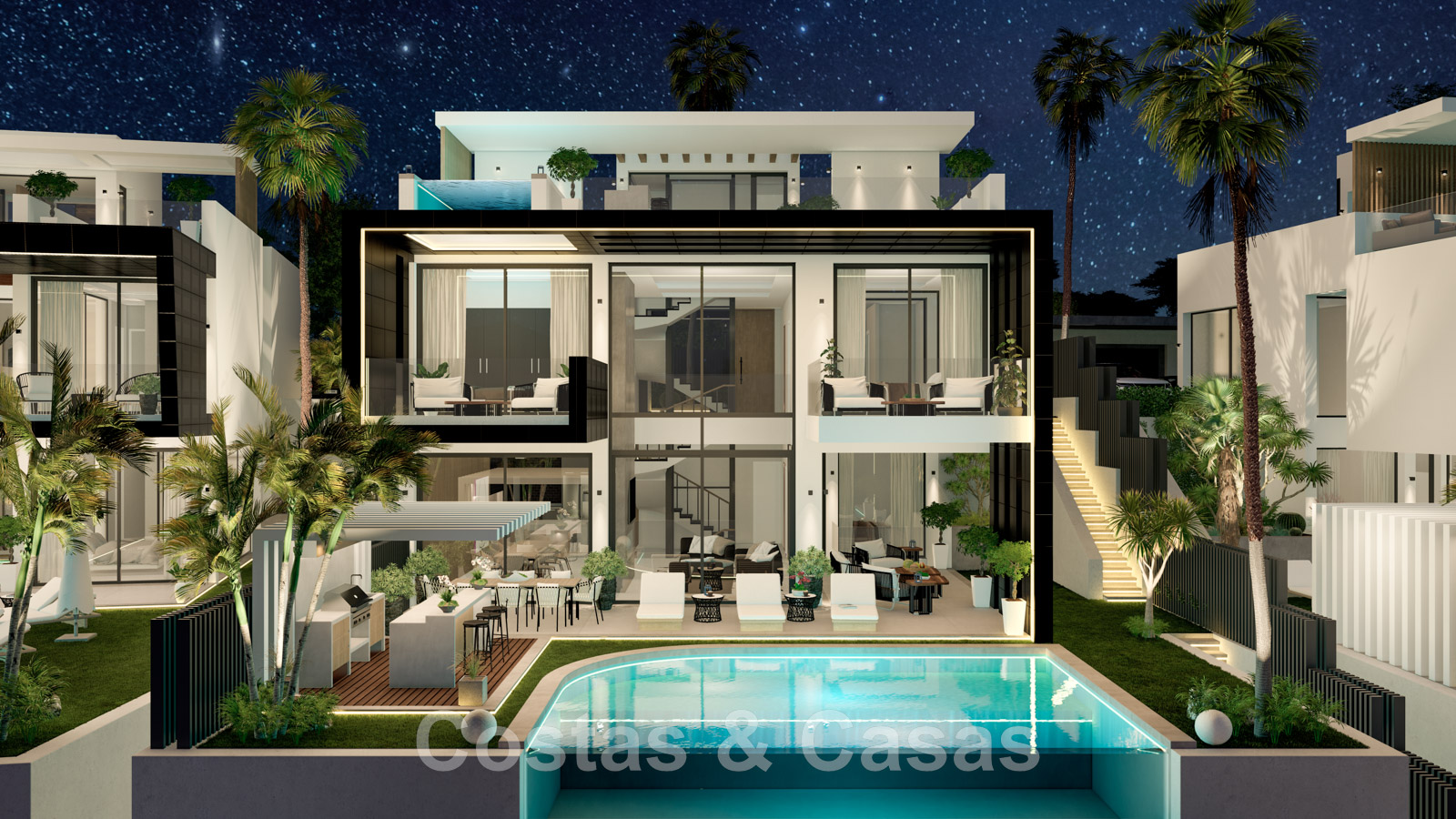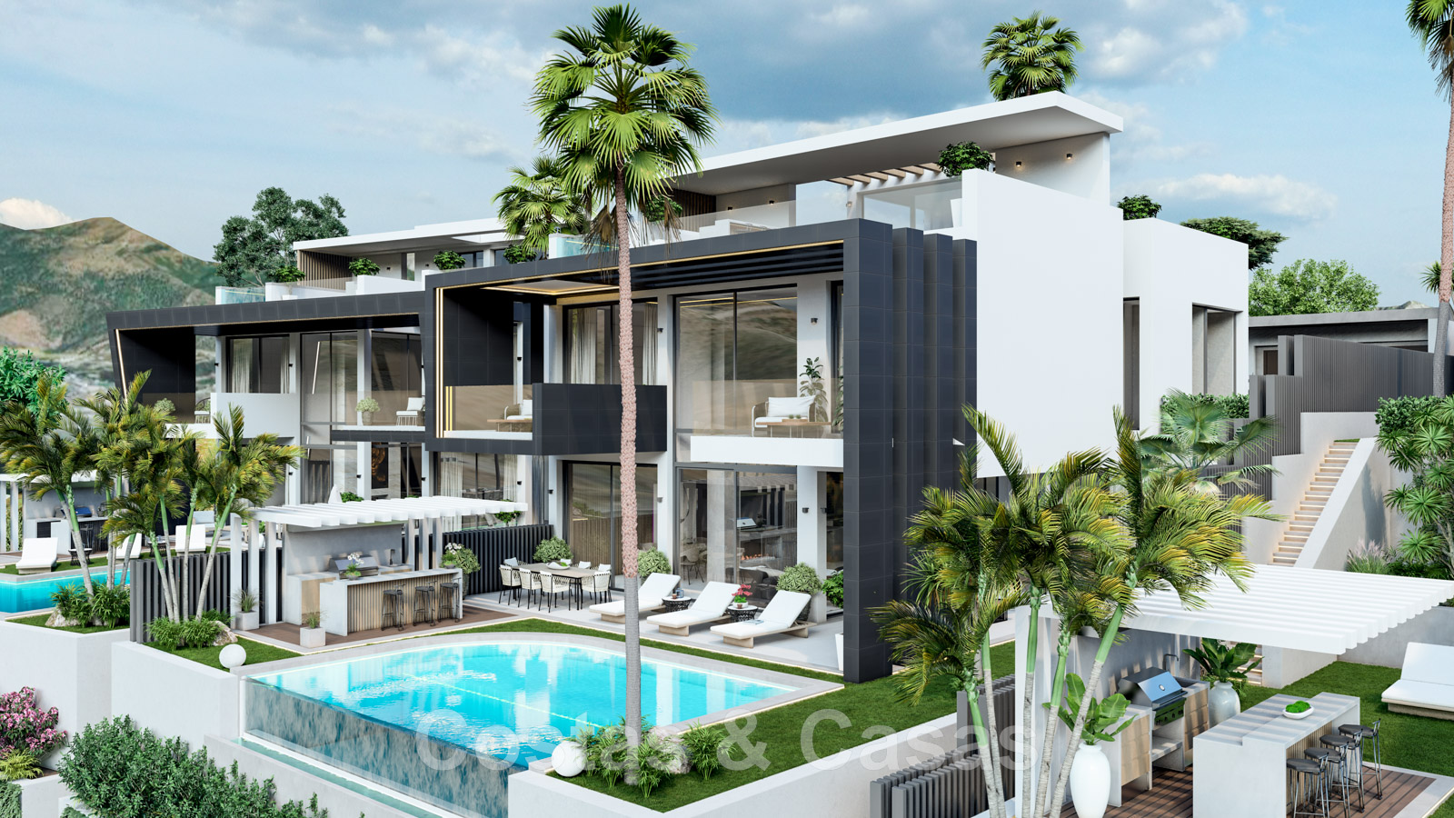 1.600.000 €LAATSTE WONING! Nieuwe, designer rijhuizen te koop, op een steenworp van het strand in Elviria ten oosten van Marbella’s centrum