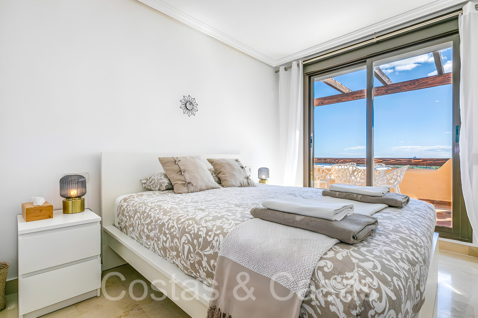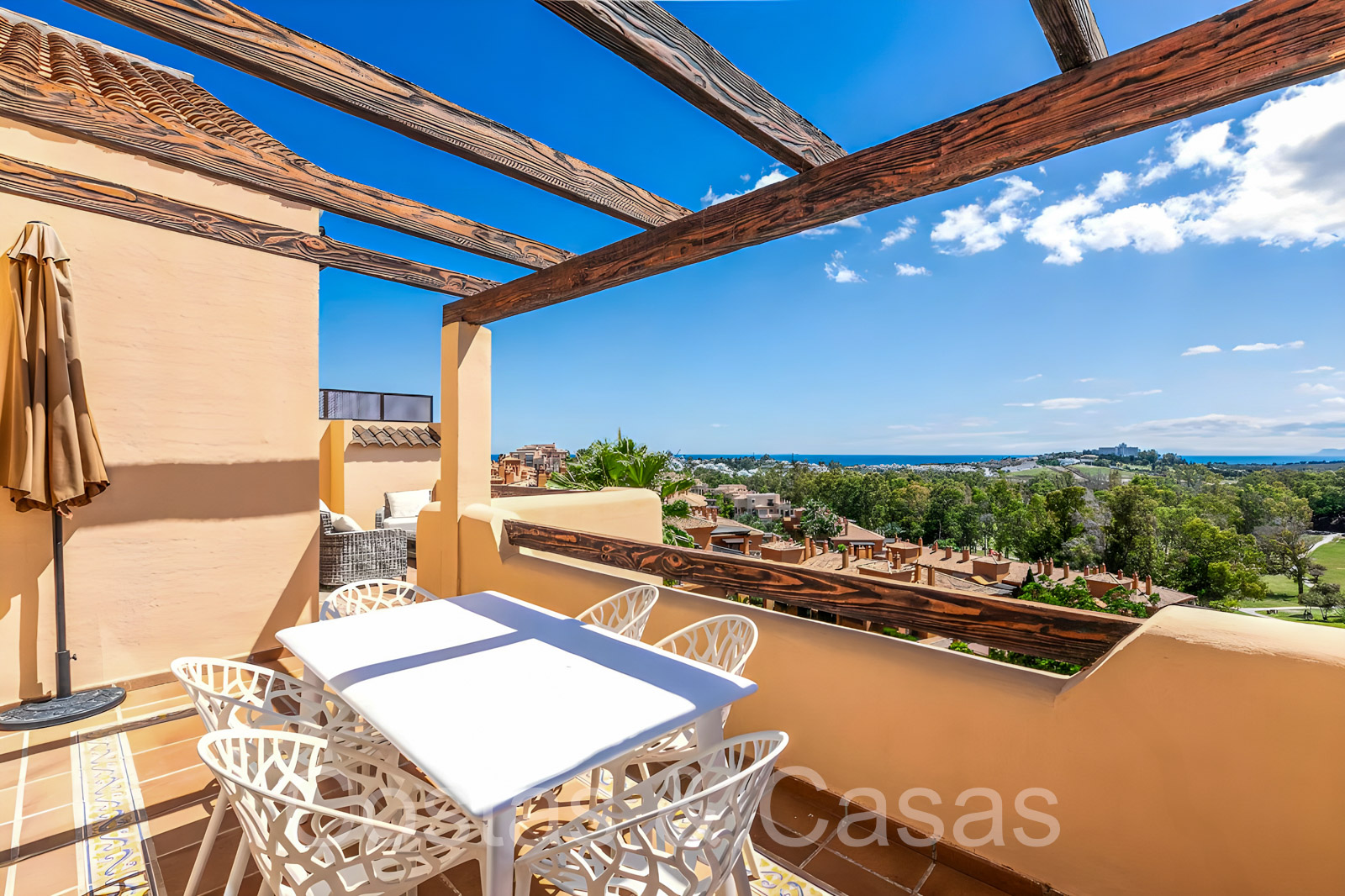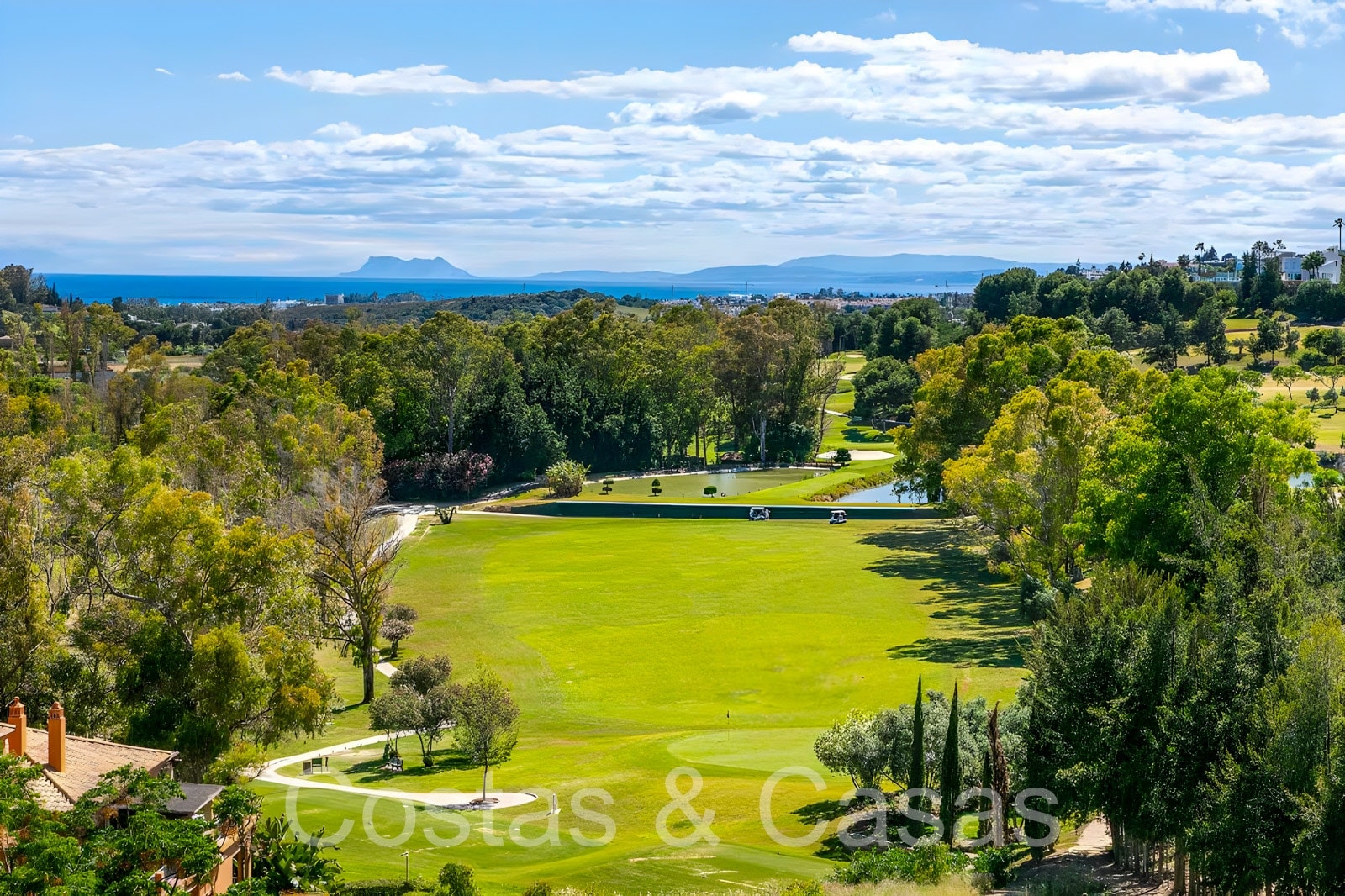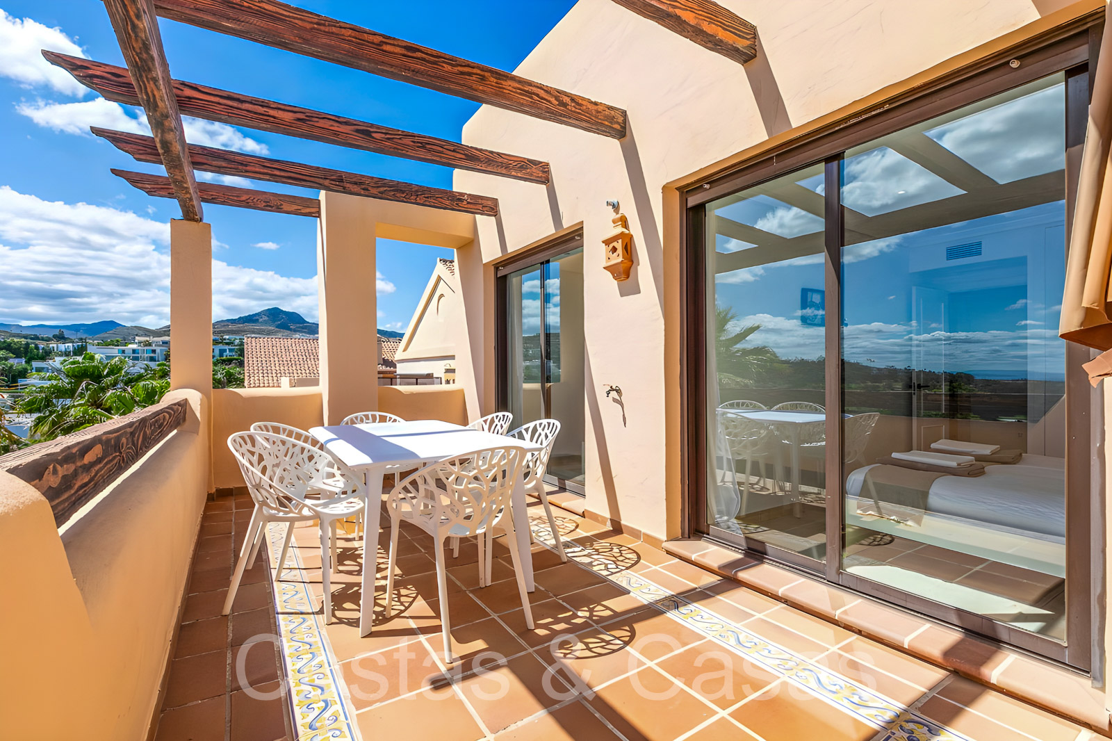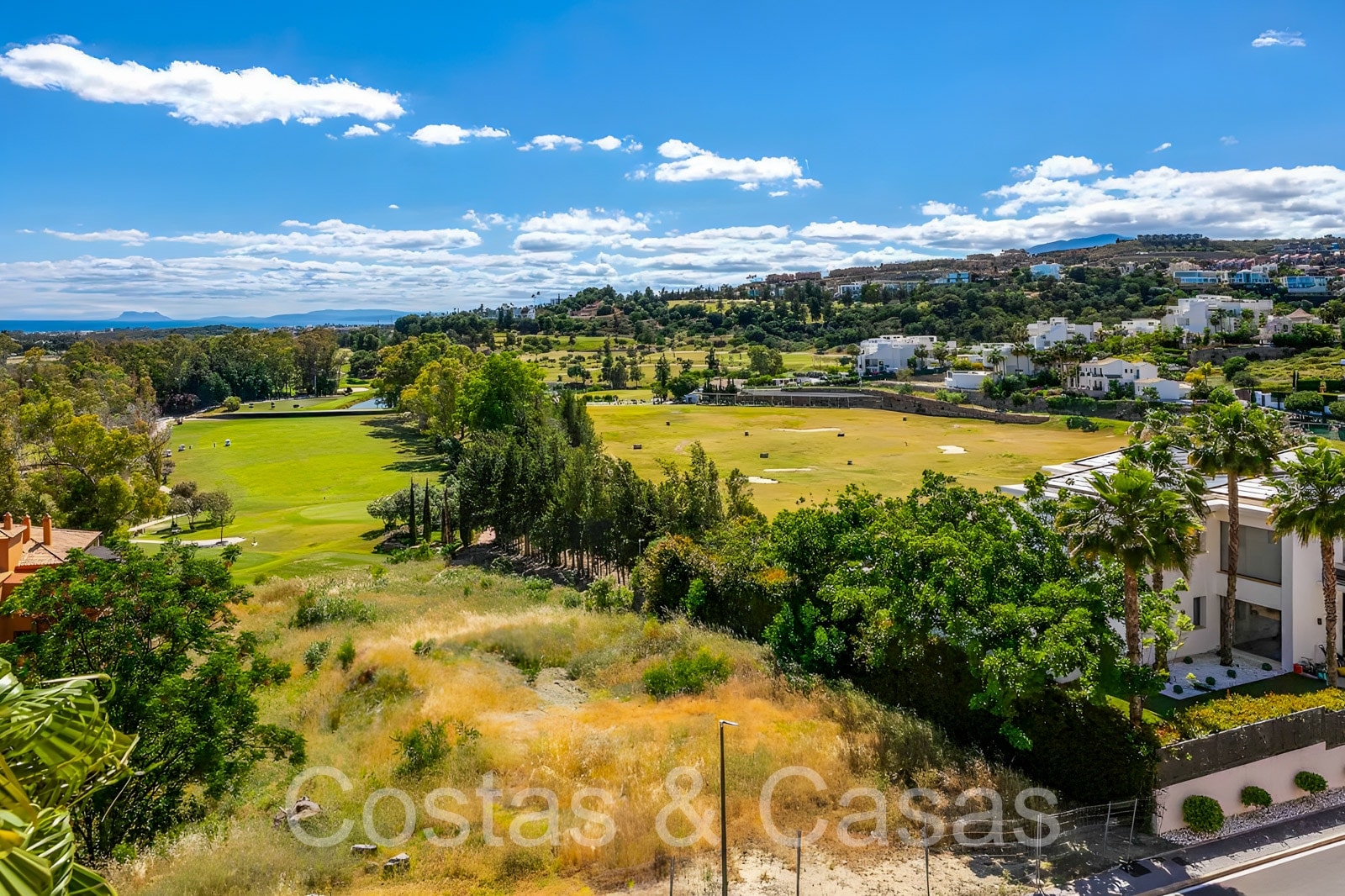 Zonnige terrassen waar je geniet van een schitterend uitzicht op de golfbaan, het berglandschap, Gibraltar en de Middellandse Zee.