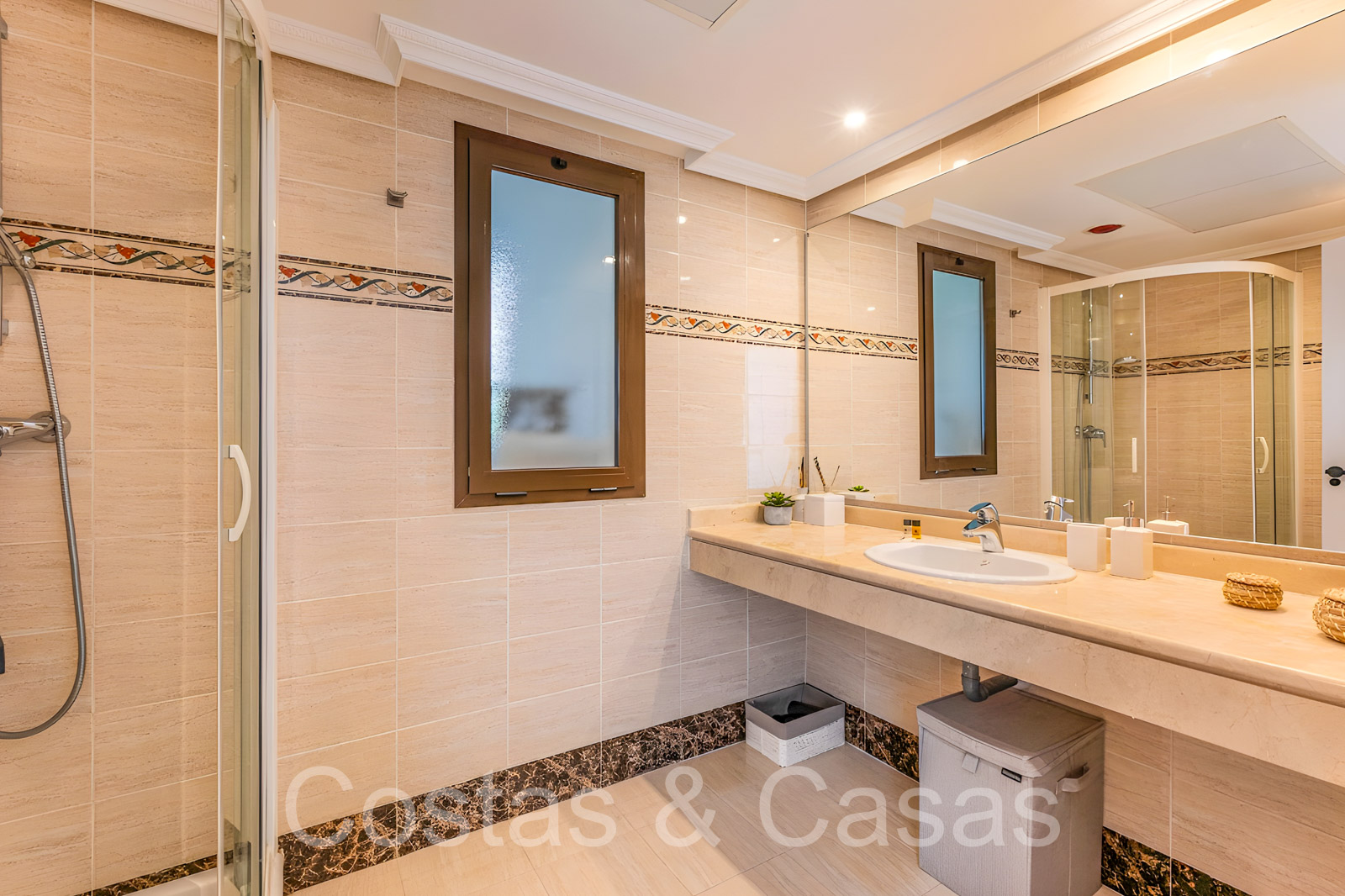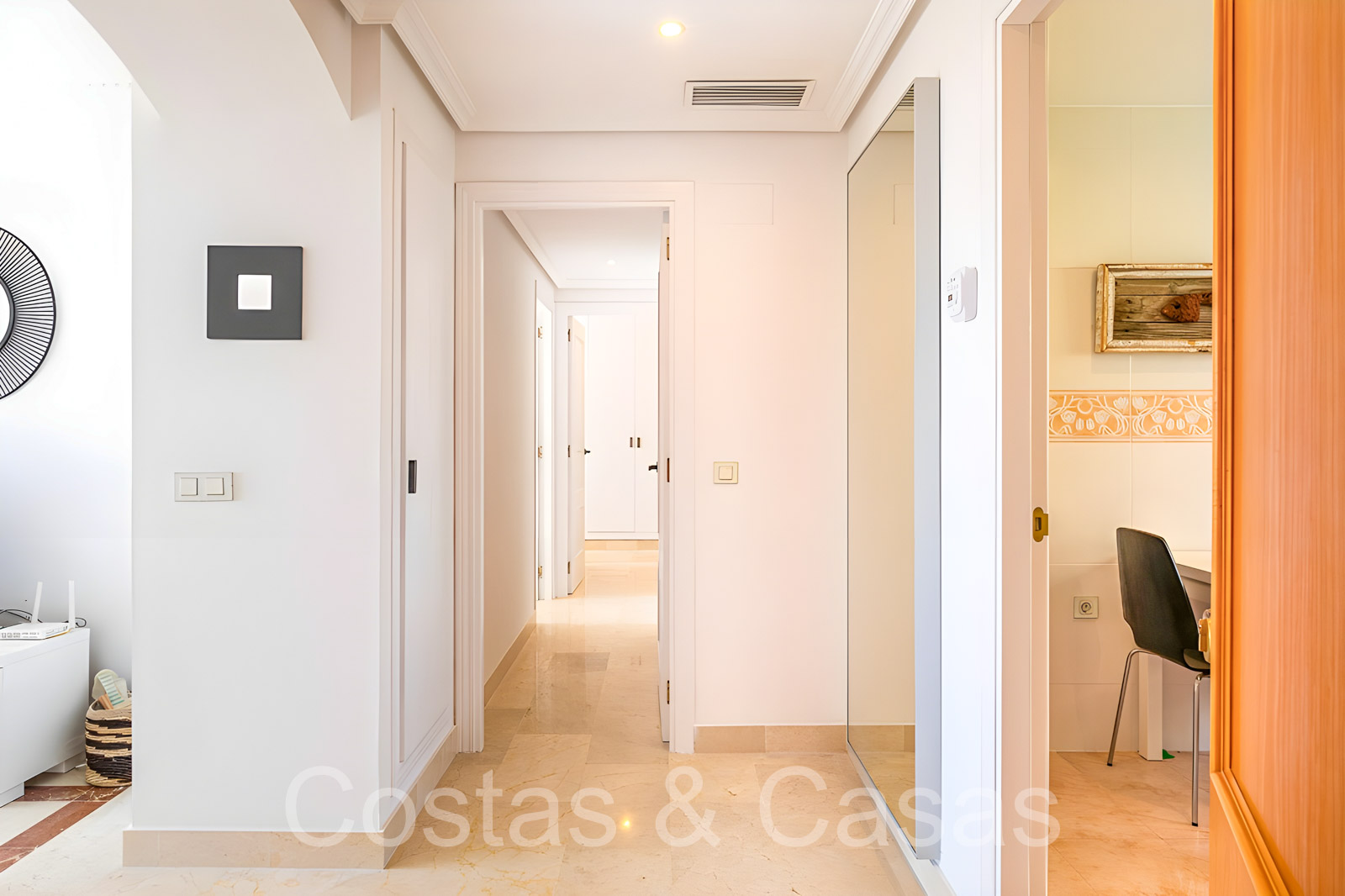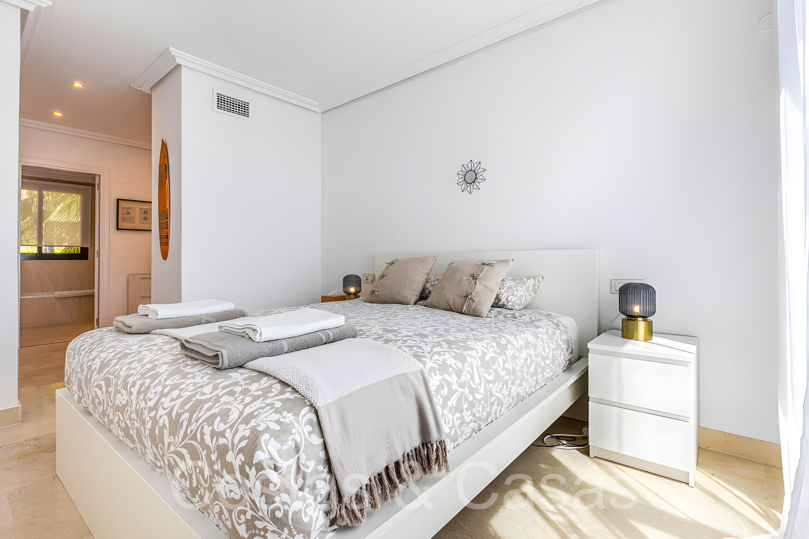 De hoofdslaapkamer heeft een en-suite badkamer en een inloopkast.