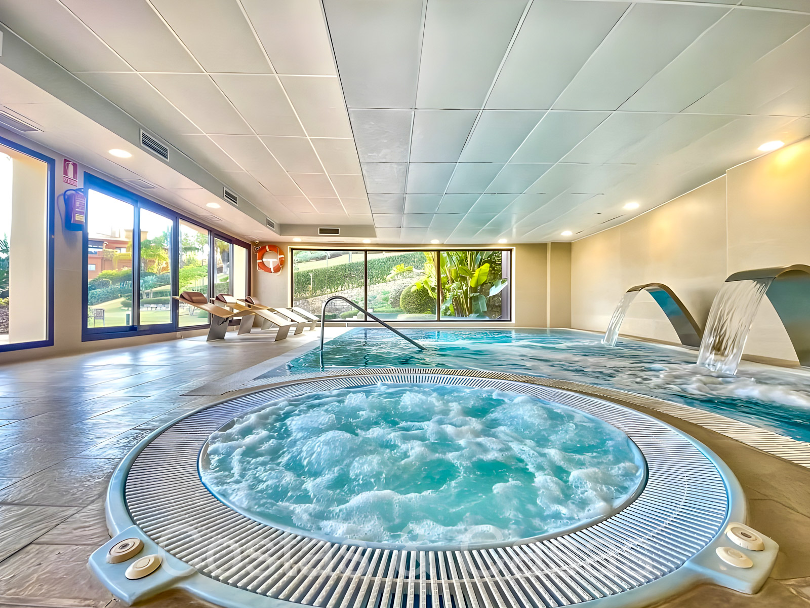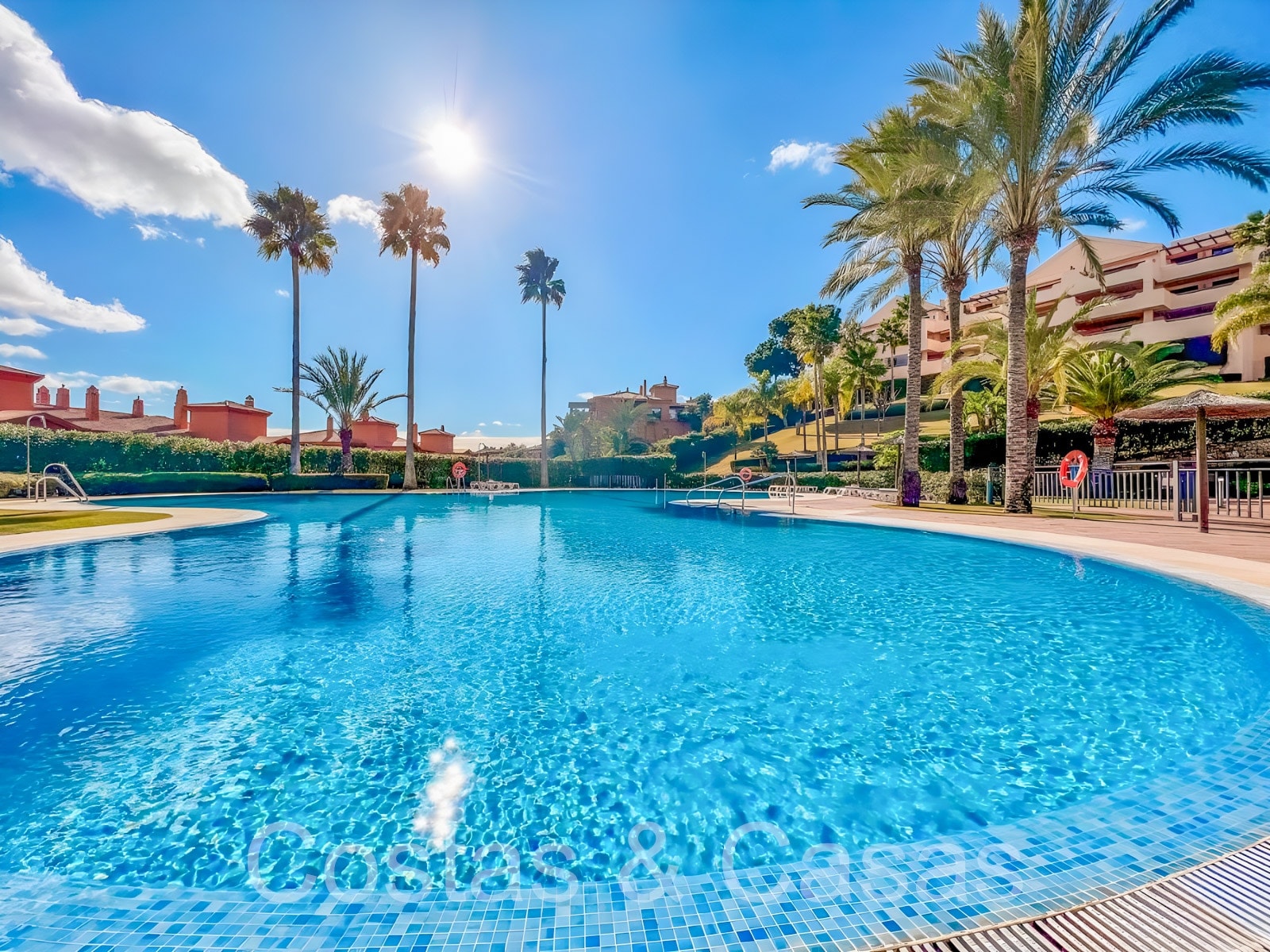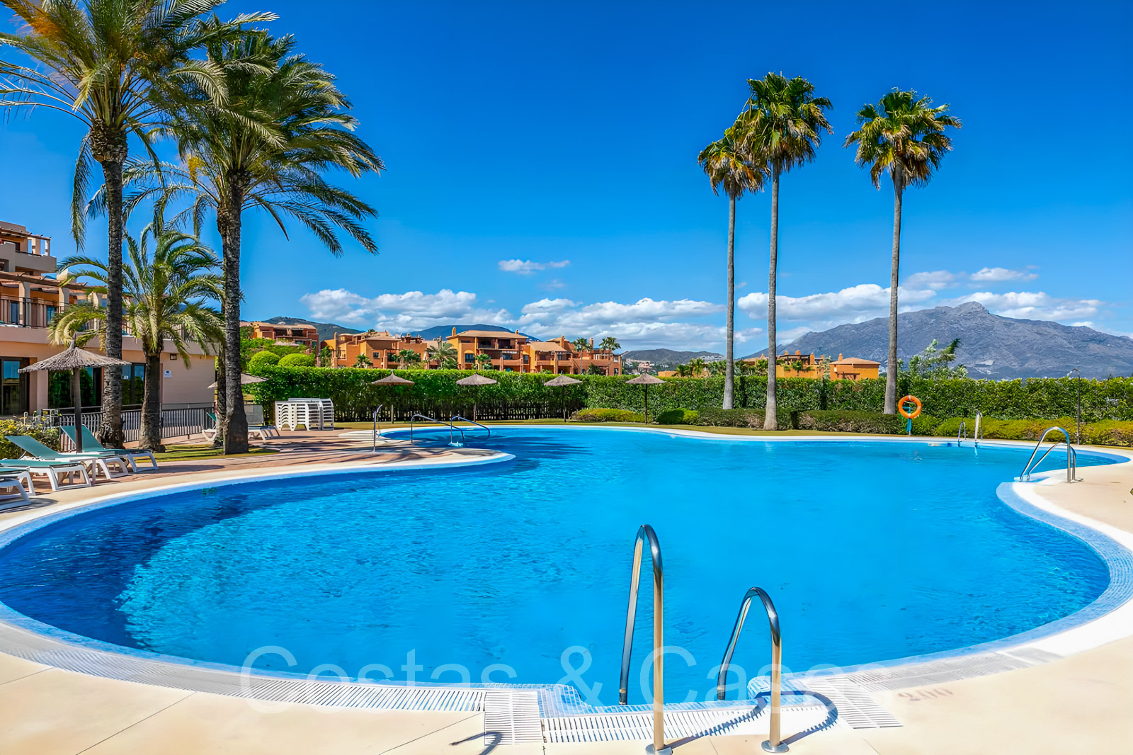 Gelegen in een gewilde, omheinde gemeenschap met 24-uurs beveiliging, tropische tuinen, een prachtig gemeenschappelijk zwembad, een verwarmd binnenzwembad en een fitnessruimte, sauna en Turks stoombad, gedeeltelijk omringd door de Atalaya golfbaan.