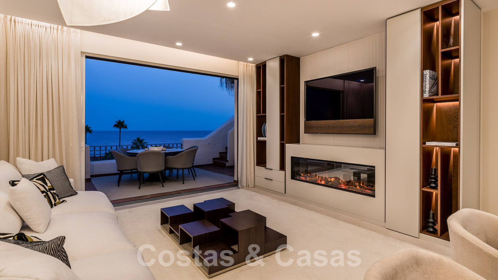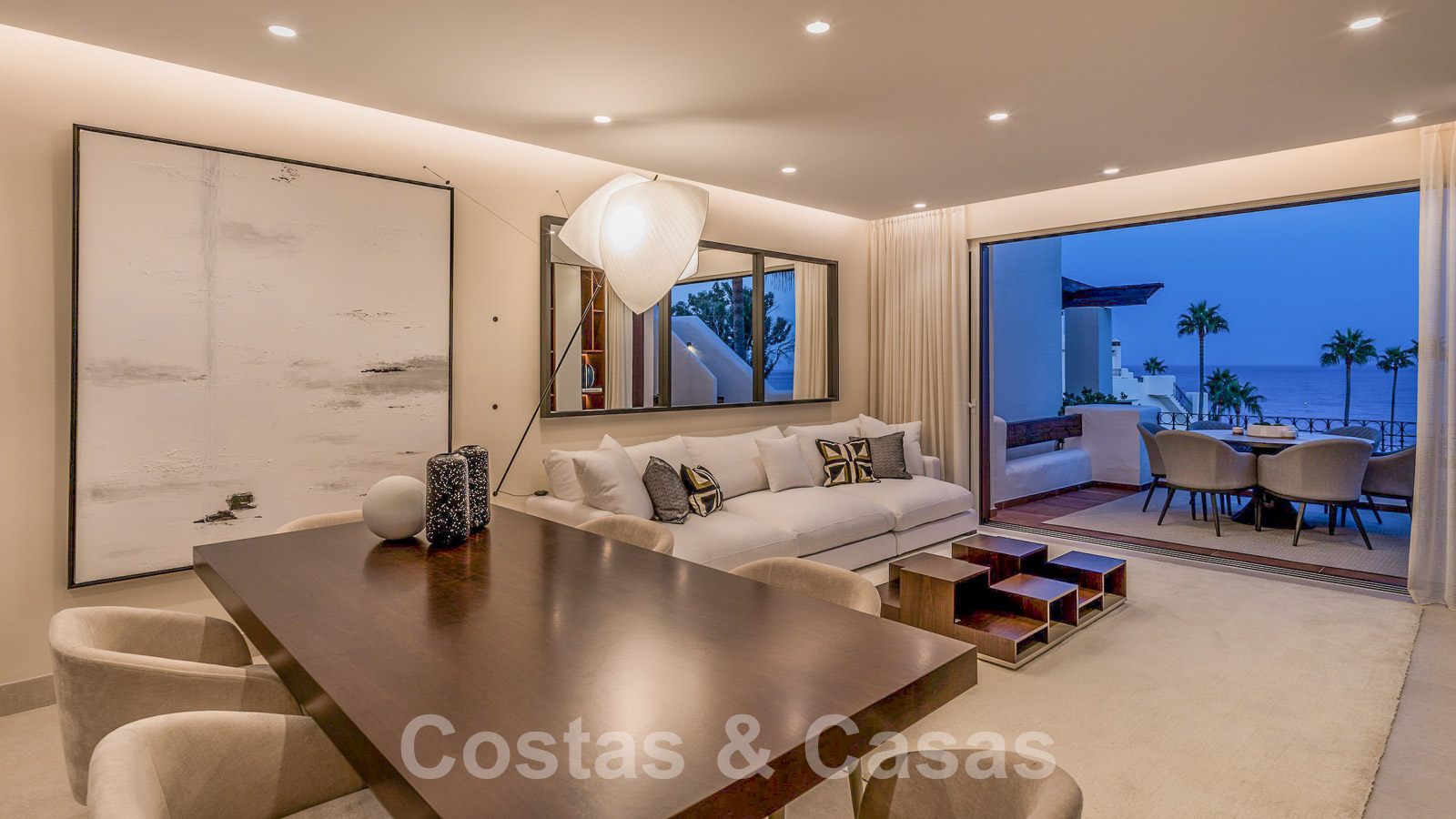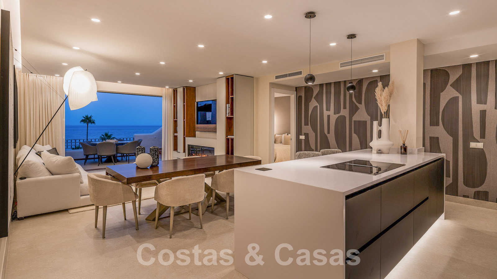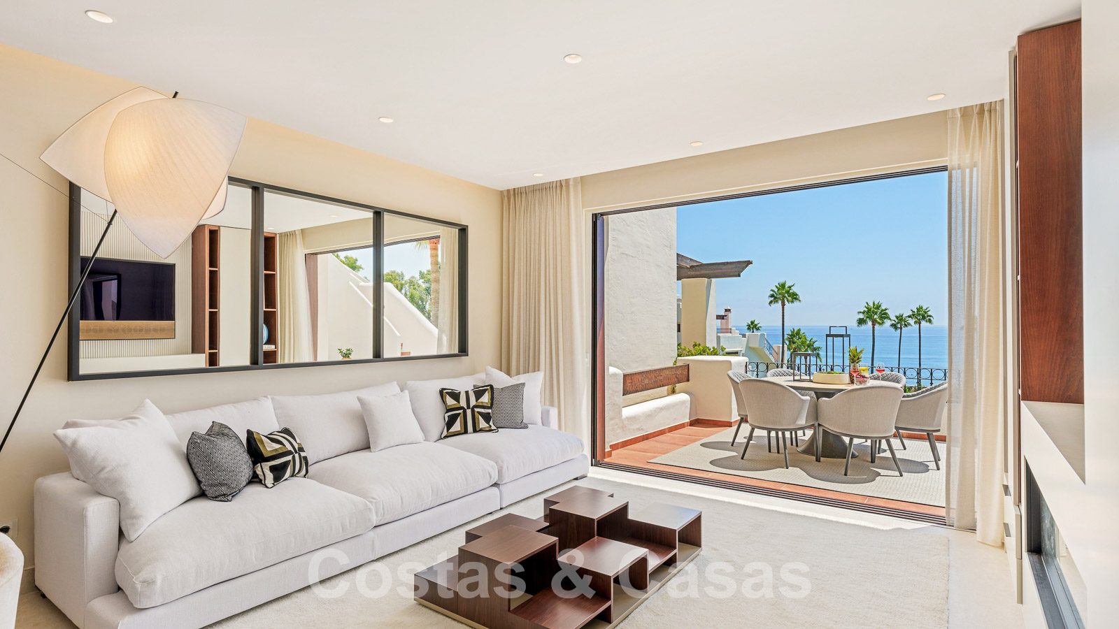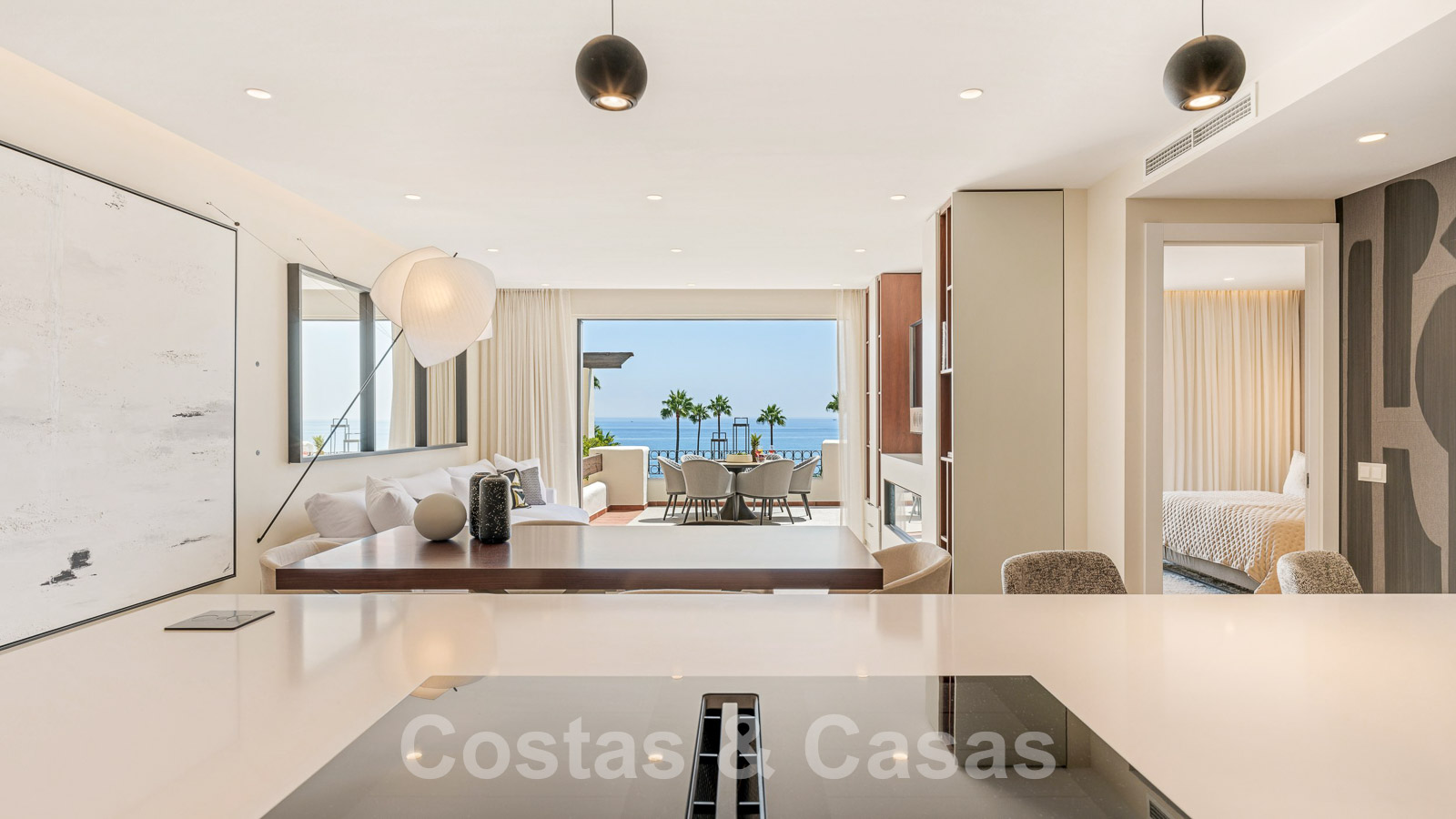 Eigentijds gerenoveerd penthouse te koop in een eerstelijnsstrand complex met frontaal zeezicht, New Golden Mile tussen Marbella en Estepona