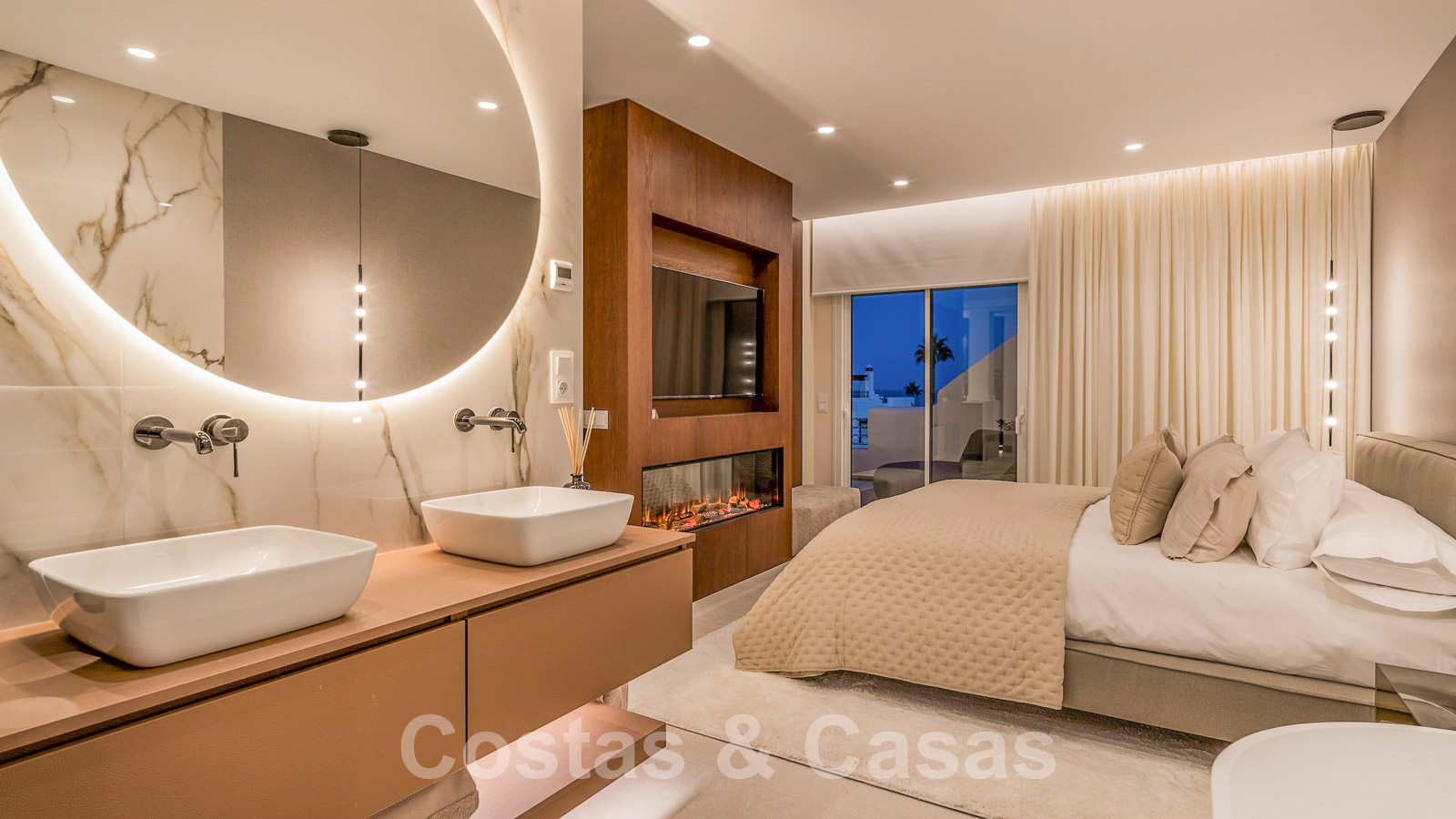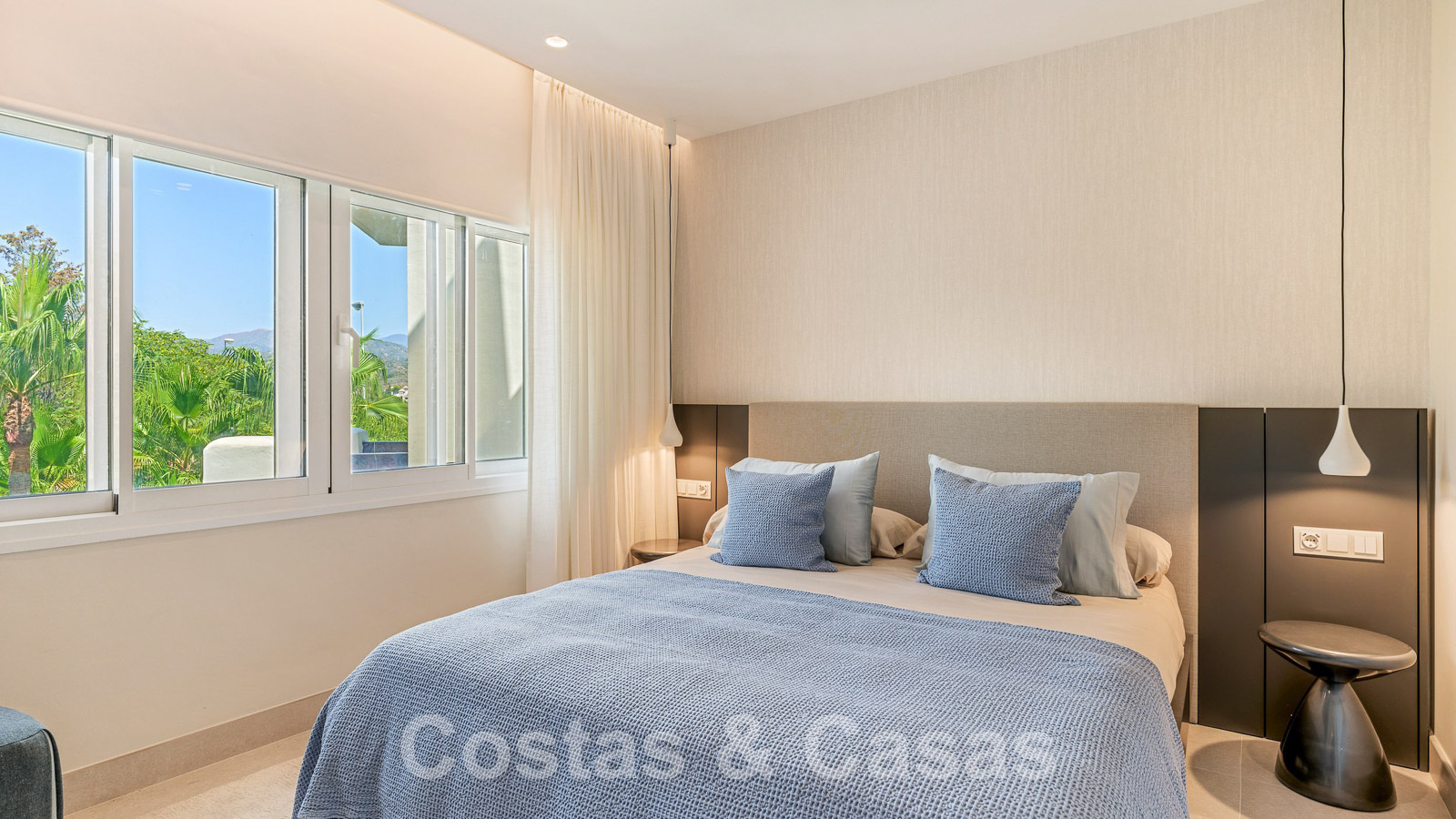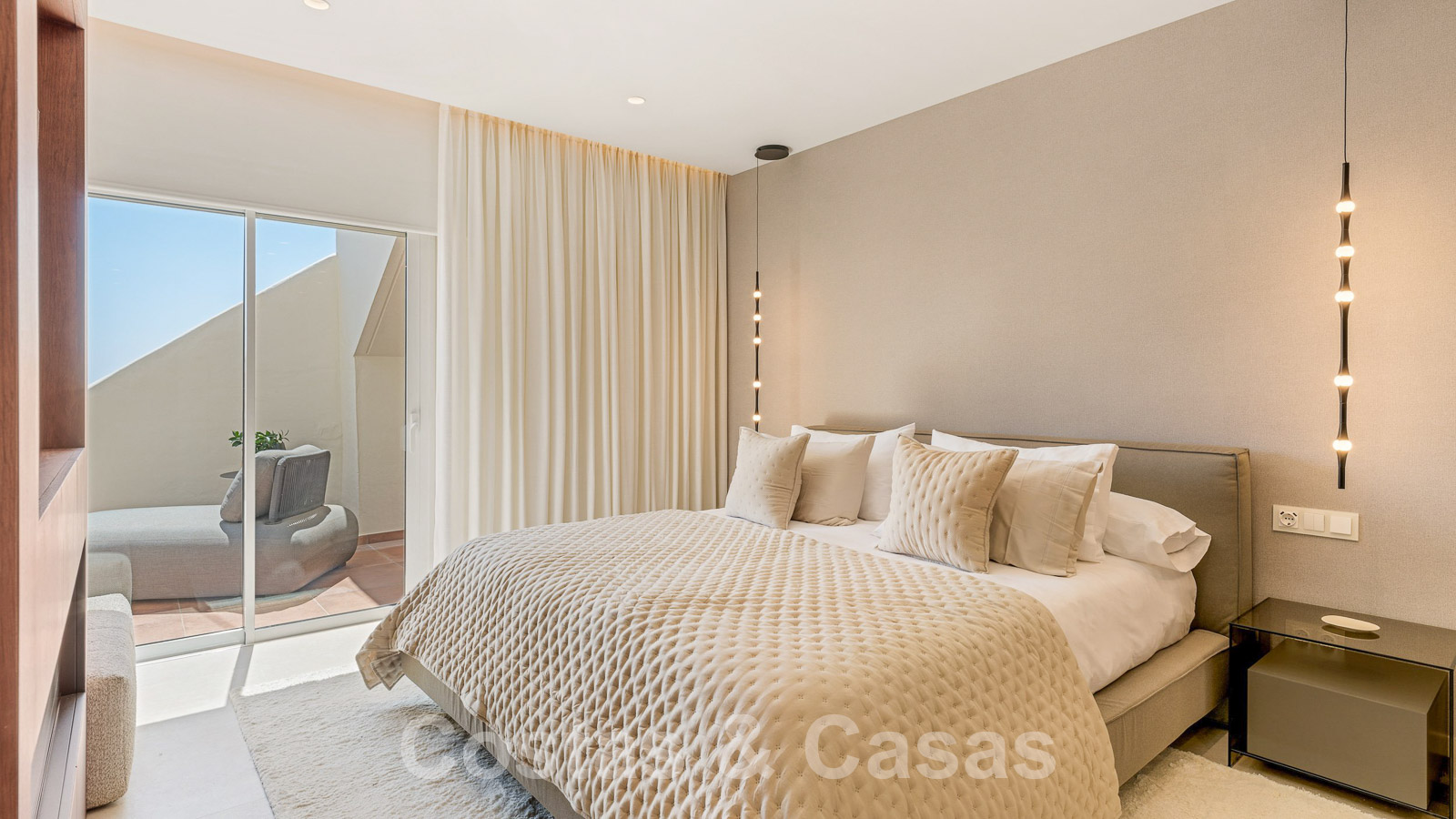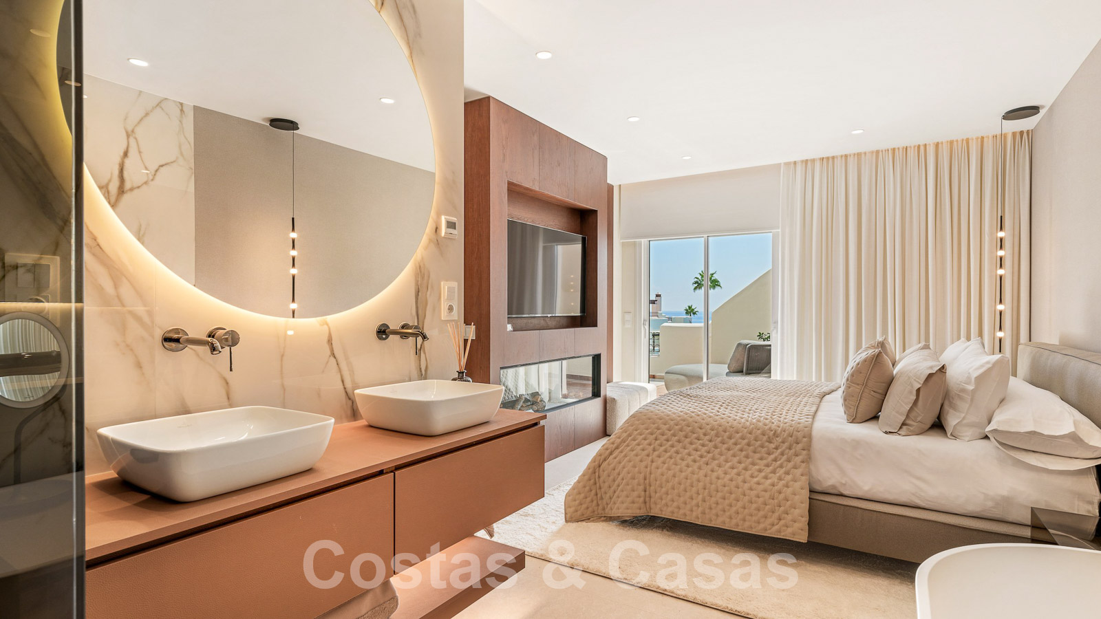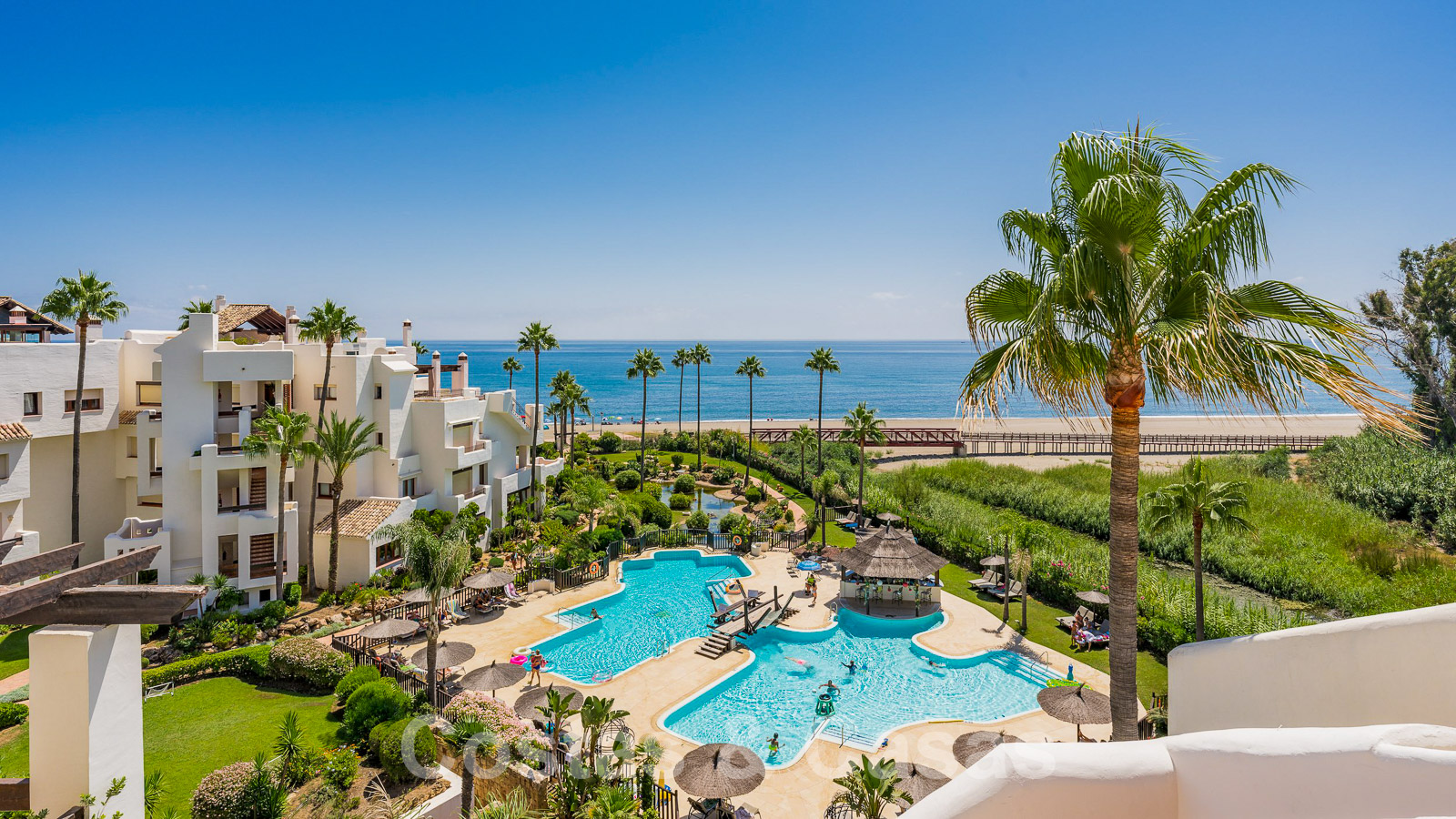 Eigentijds gerenoveerd penthouse te koop in een eerstelijnsstrand complex met frontaal zeezicht, New Golden Mile tussen Marbella en Estepona
