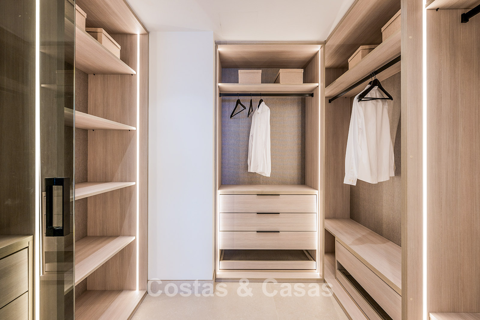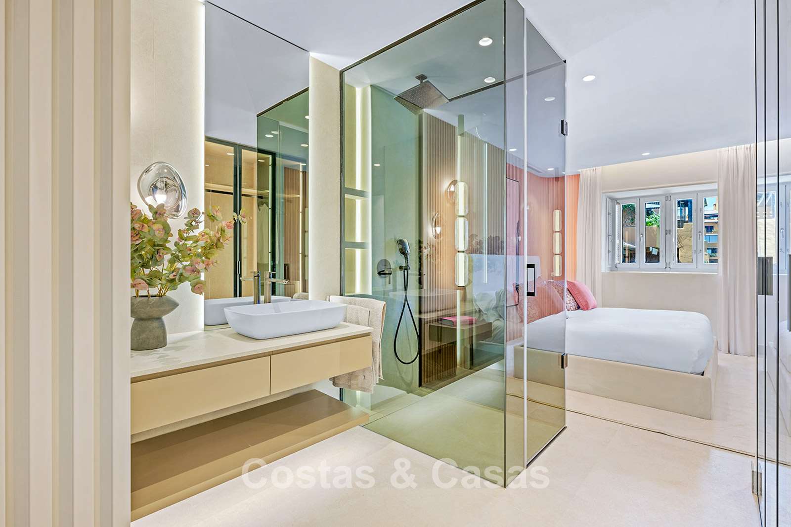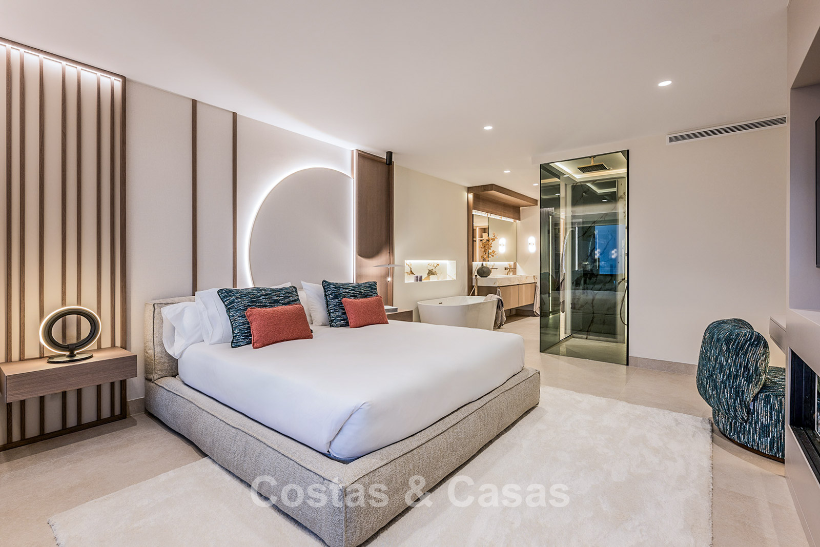De hoofdsuite beschikt over een open badkamer met een vrijstaand bad, een ruime dressing en directe toegang tot het privéterras.