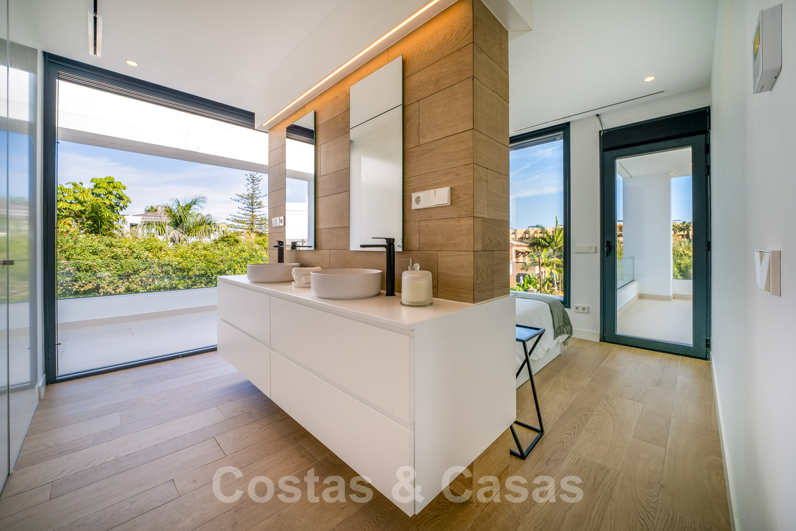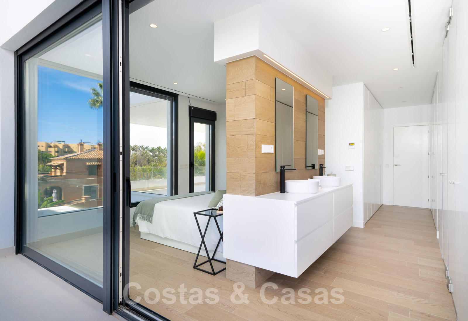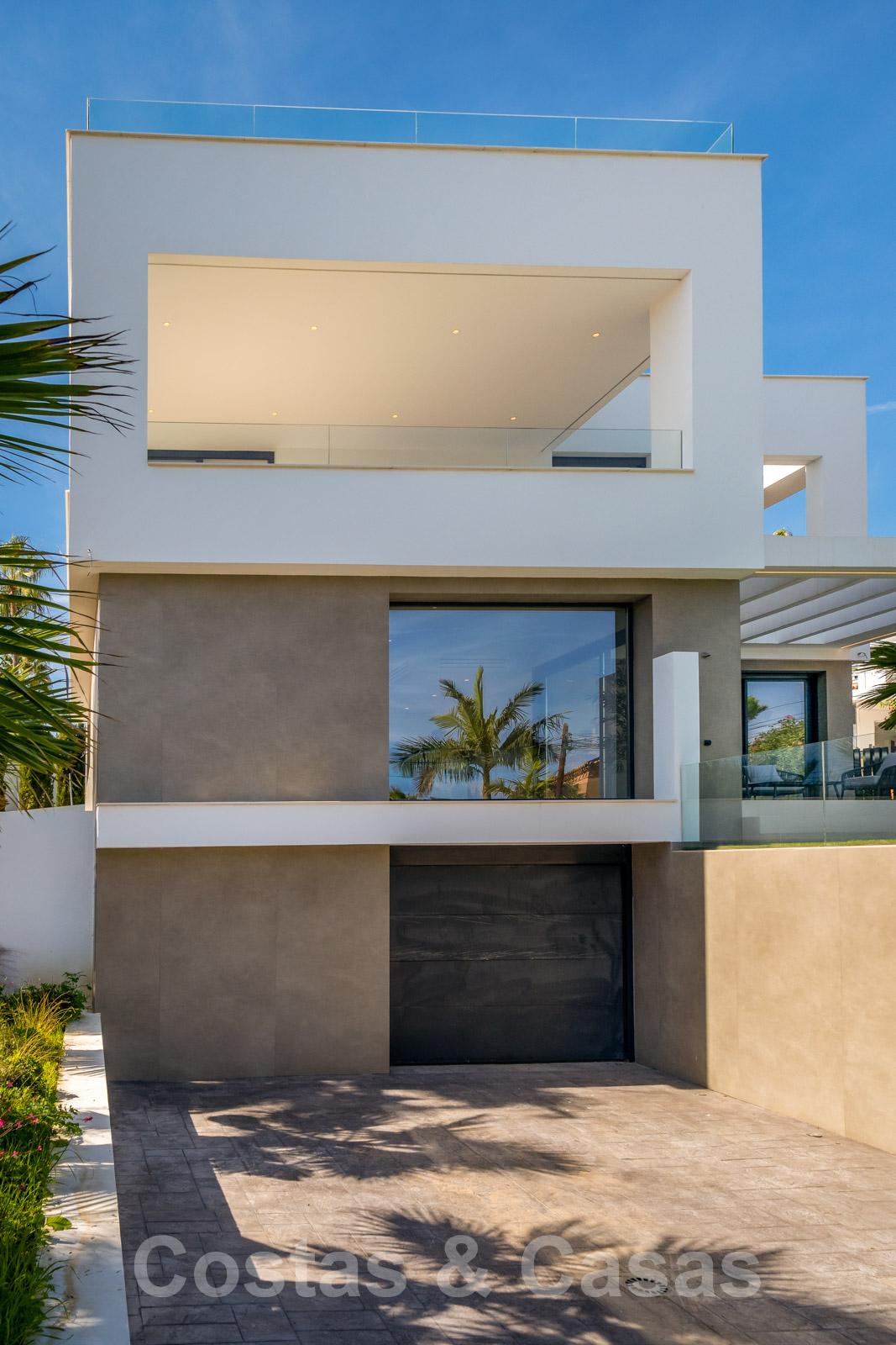 Koopje! Minimalistische, elegante villa te koop op slechts enkele meters van het strand aan de New Golden Mile tussen Marbella en Estepona