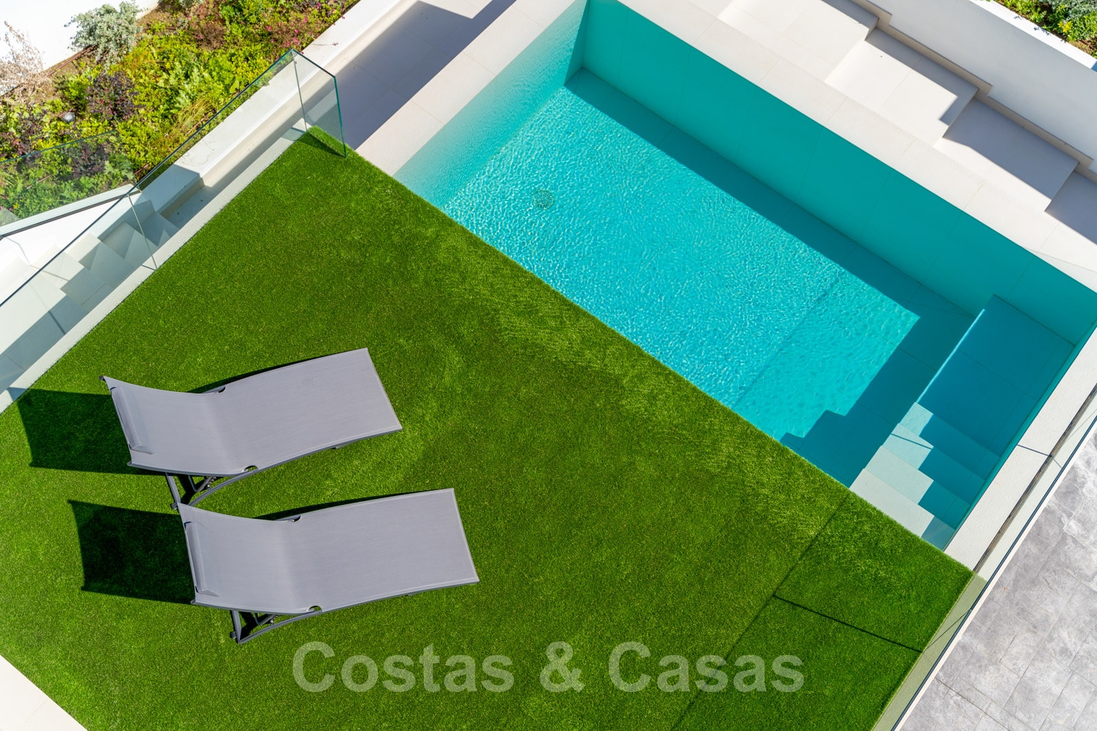 • Ingebouwd overloopzwembad met zonnedek.