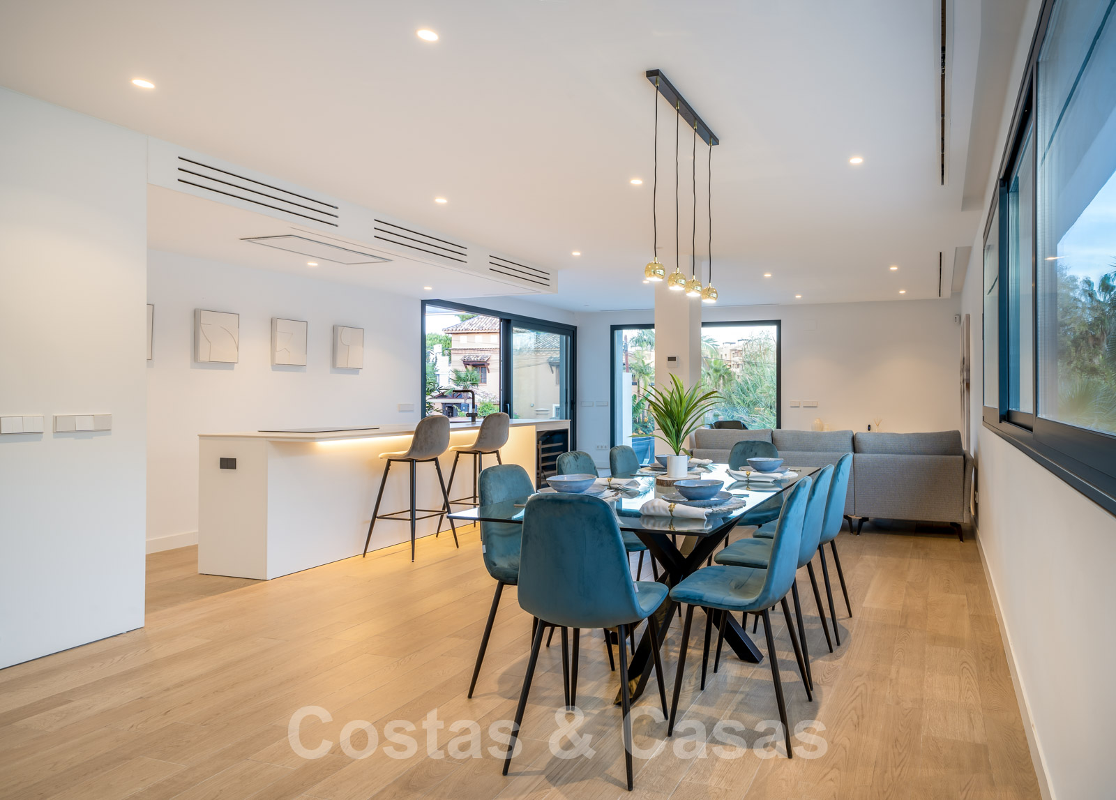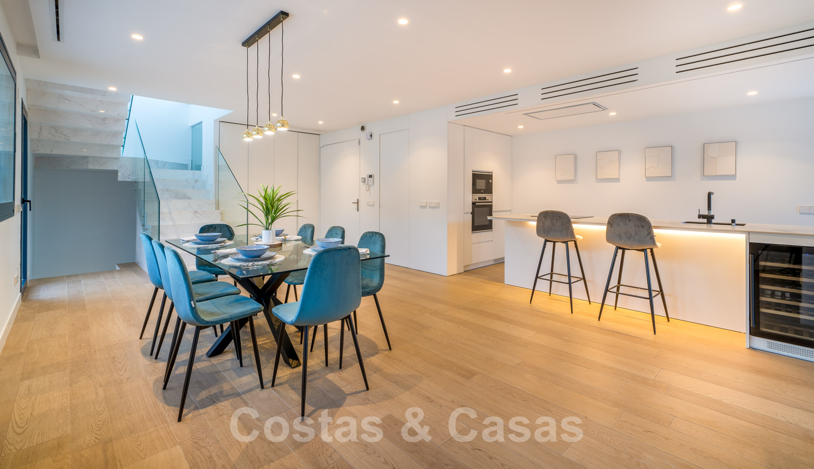 • Riante open leefruimte met salon, eetruimte en volledig uitgeruste keuken met kookeiland en wijnkast