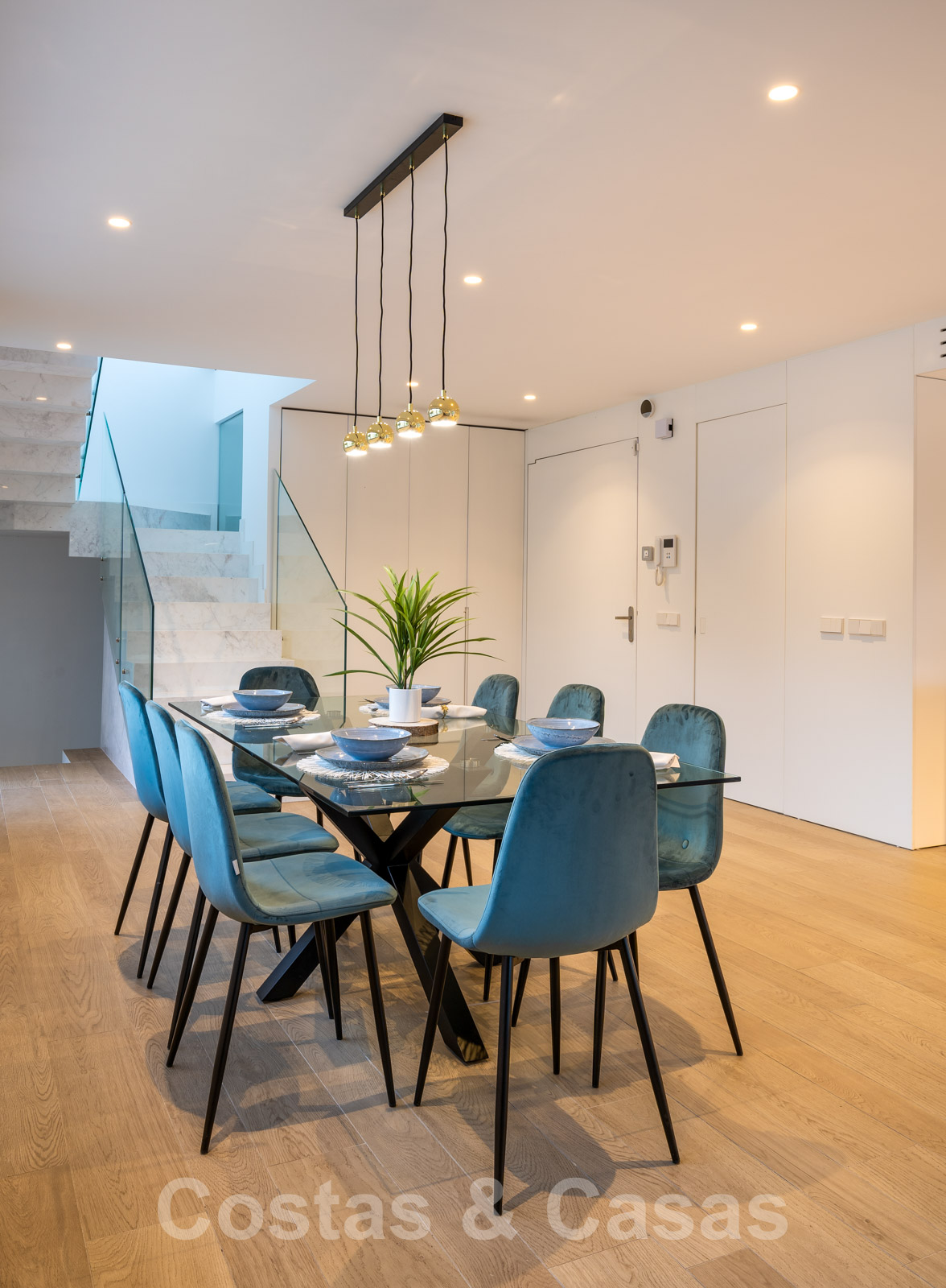 • Inkom met traphal voorzien van glazen balustrades.