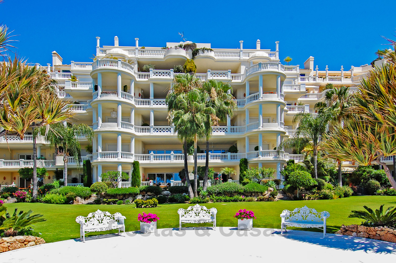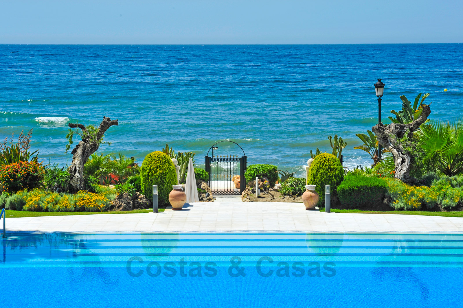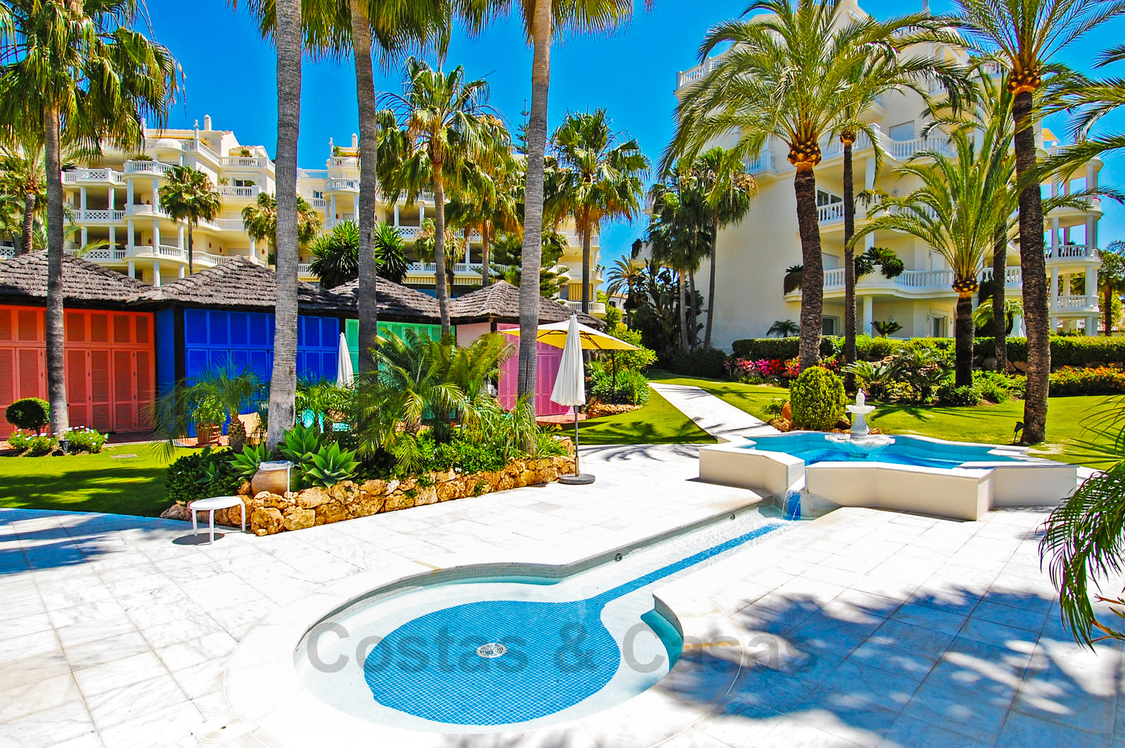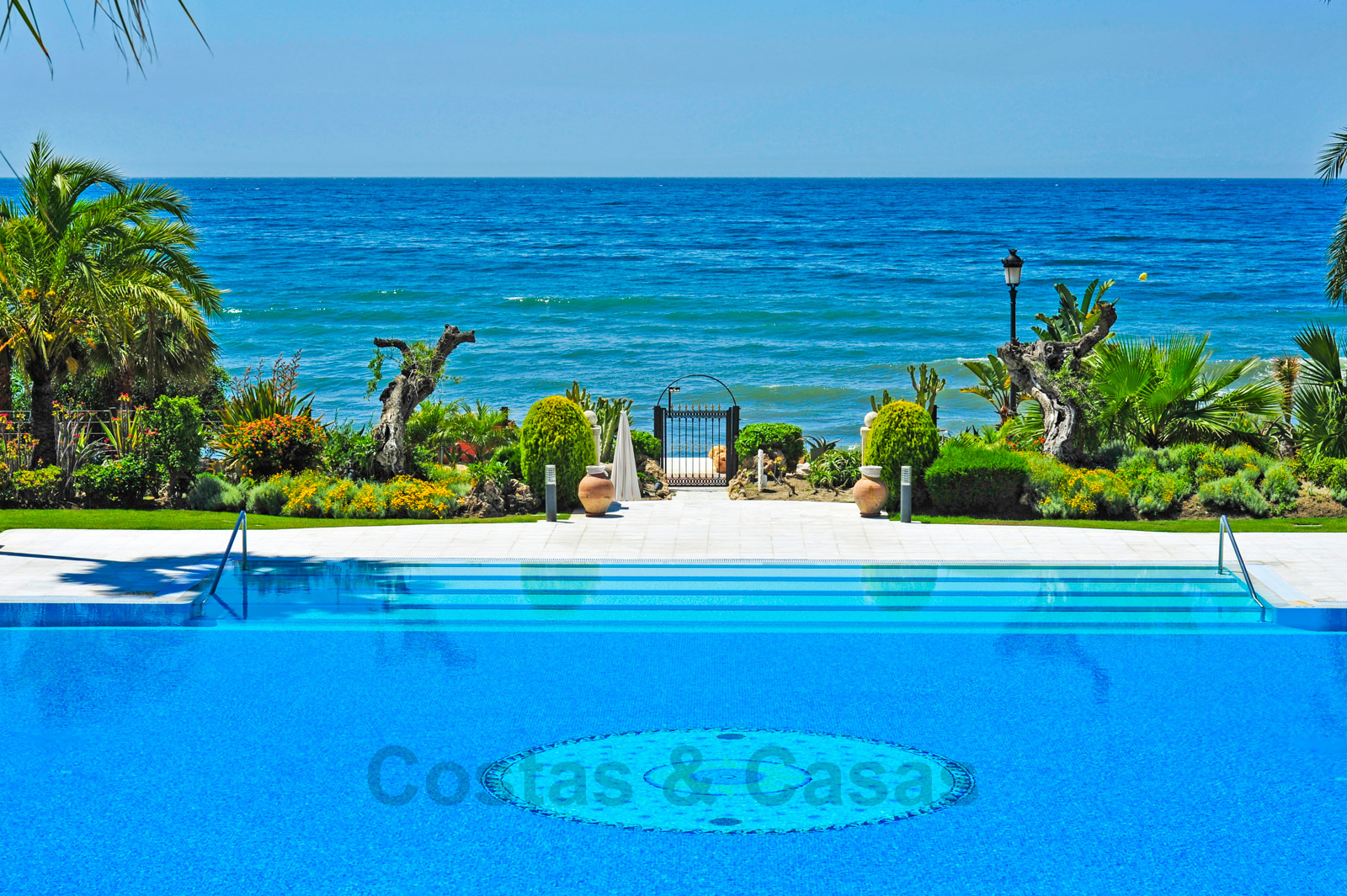 Het complex is ongetwijfeld één van de meest prestigieuze in de regio van Marbella en Estepona en biedt een enorm verwarmd buitenzwembad, tropische tuinen, ligbedden met handdoekservice, 24/7 beveiliging en grenzend aan het 5-sterren Las Dunas Hotel. Dit hotel biedt een moderne Spa en een strandrestaurant.