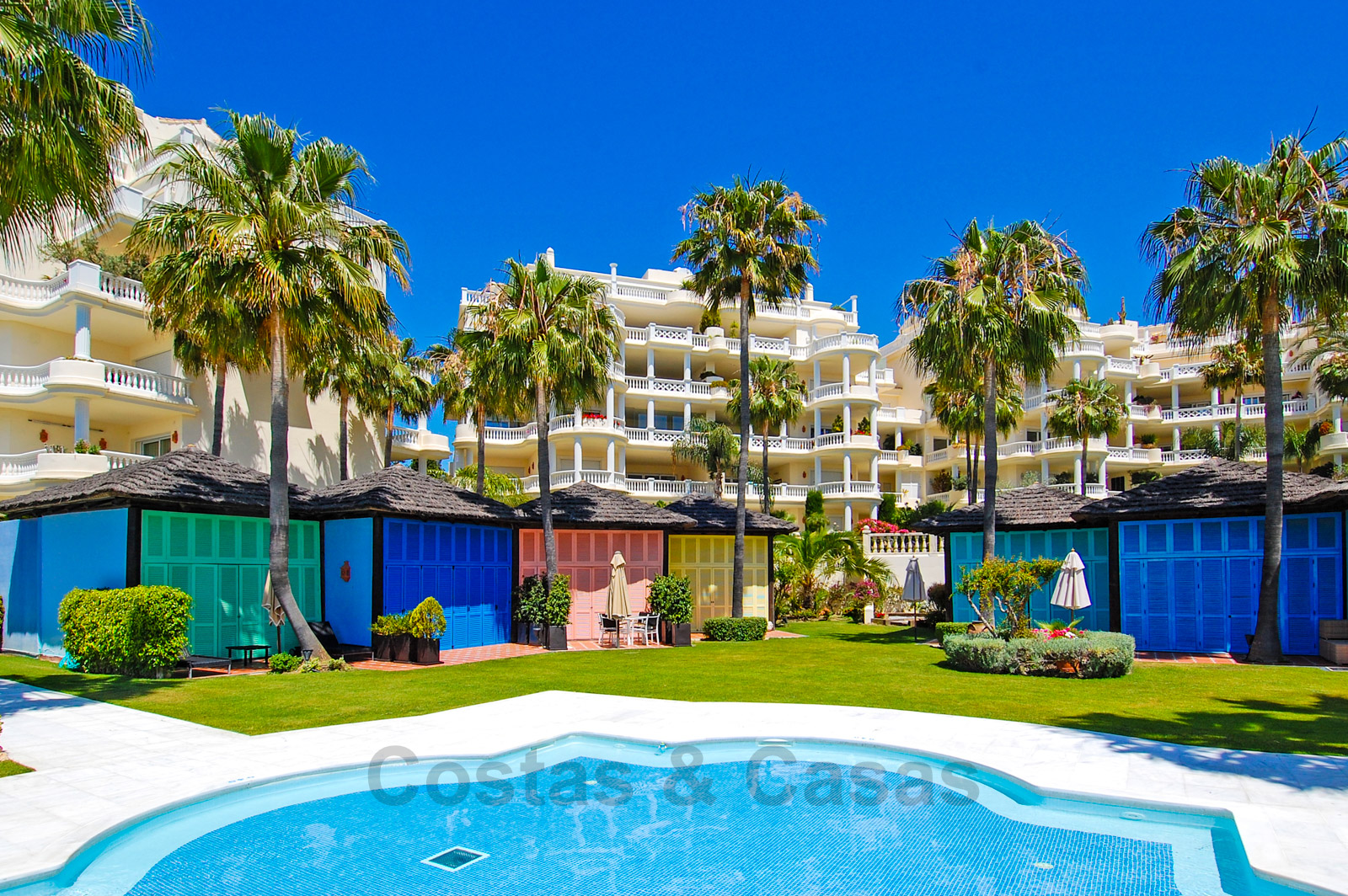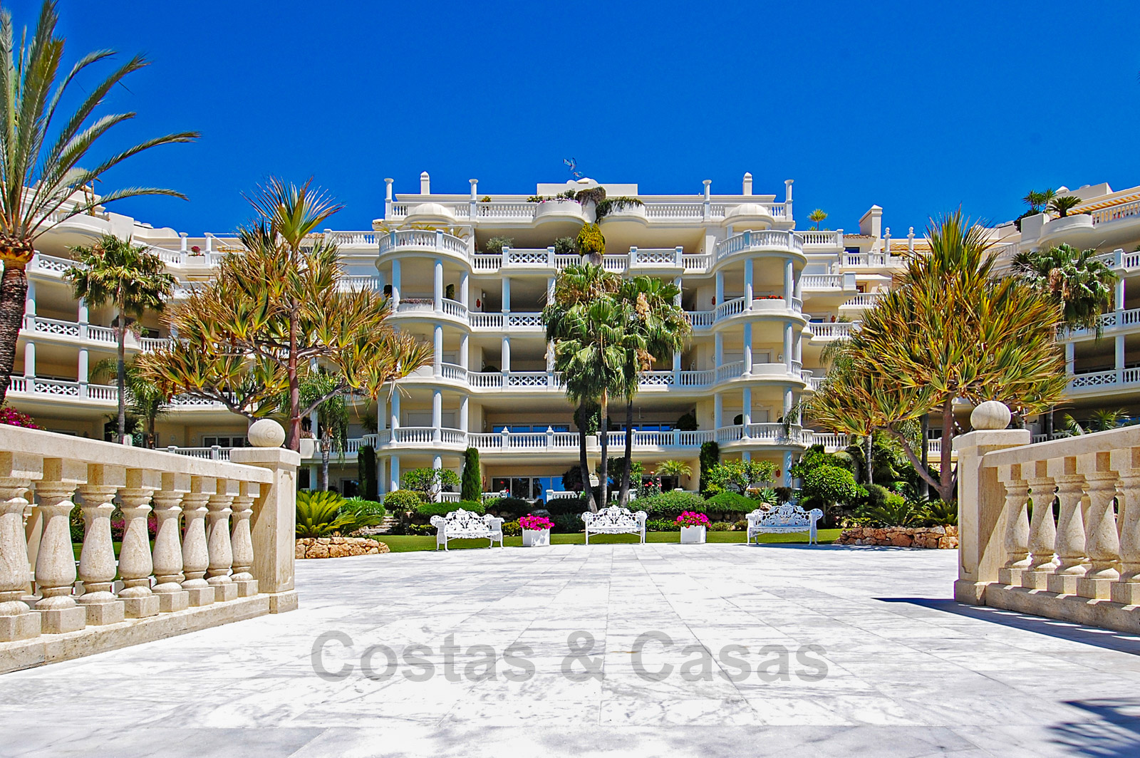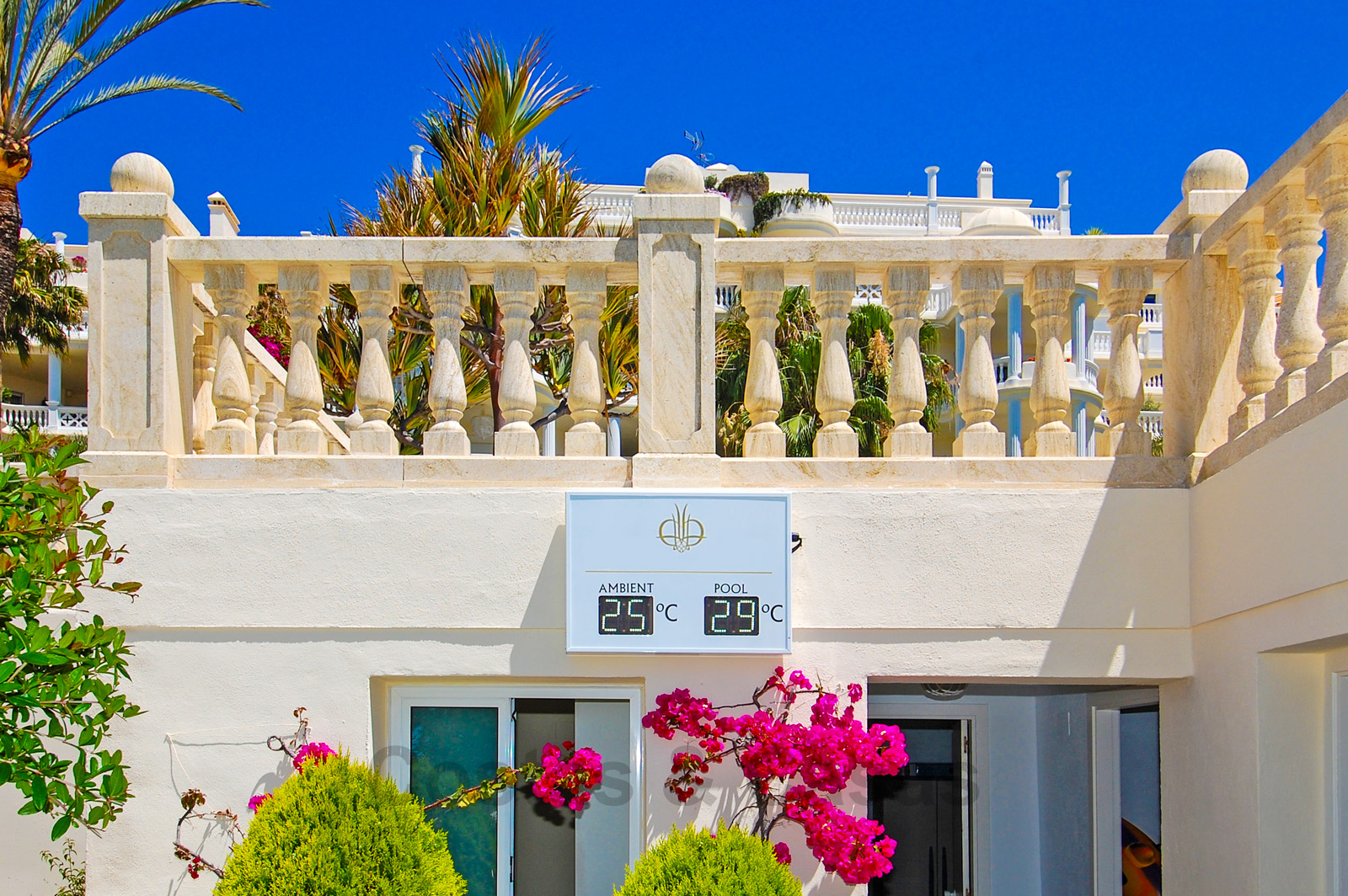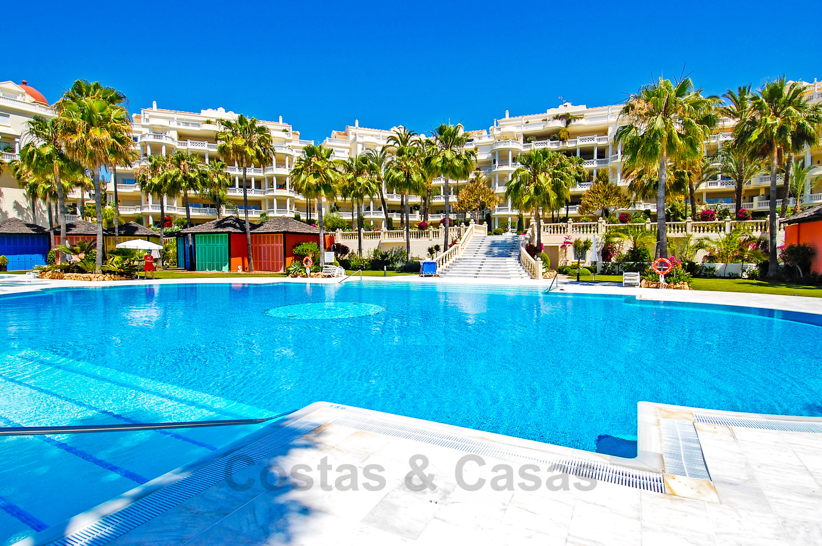 Het complex is ongetwijfeld één van de meest prestigieuze in de regio van Marbella en Estepona en biedt een enorm verwarmd buitenzwembad, tropische tuinen, ligbedden met handdoekservice, 24/7 beveiliging en grenzend aan het 5-sterren Las Dunas Hotel. Dit hotel biedt een moderne Spa en een strandrestaurant.