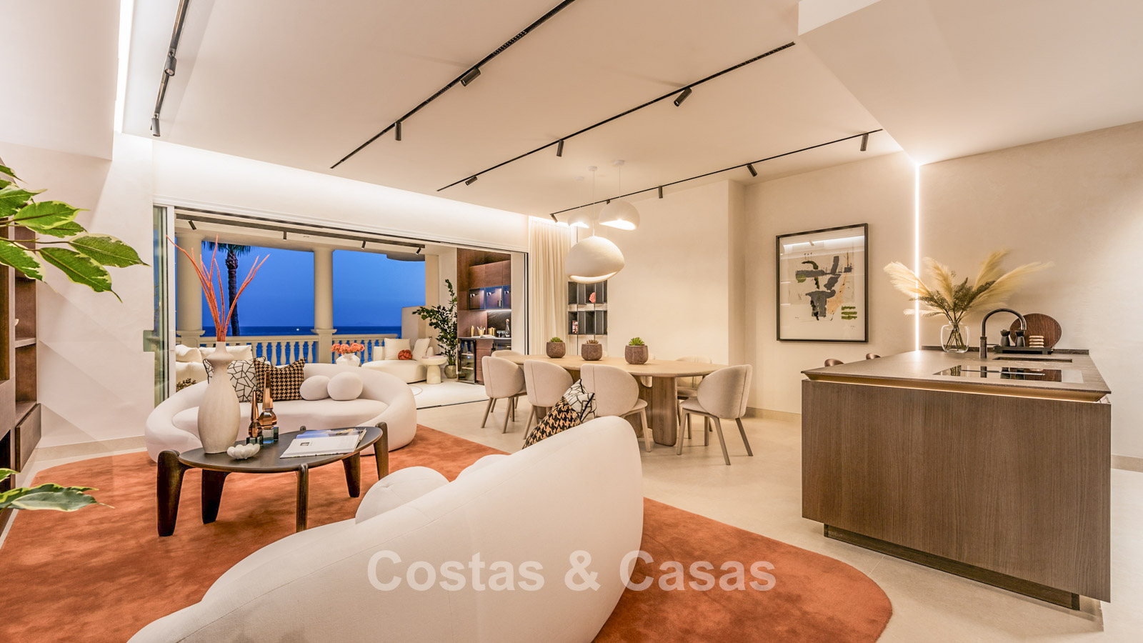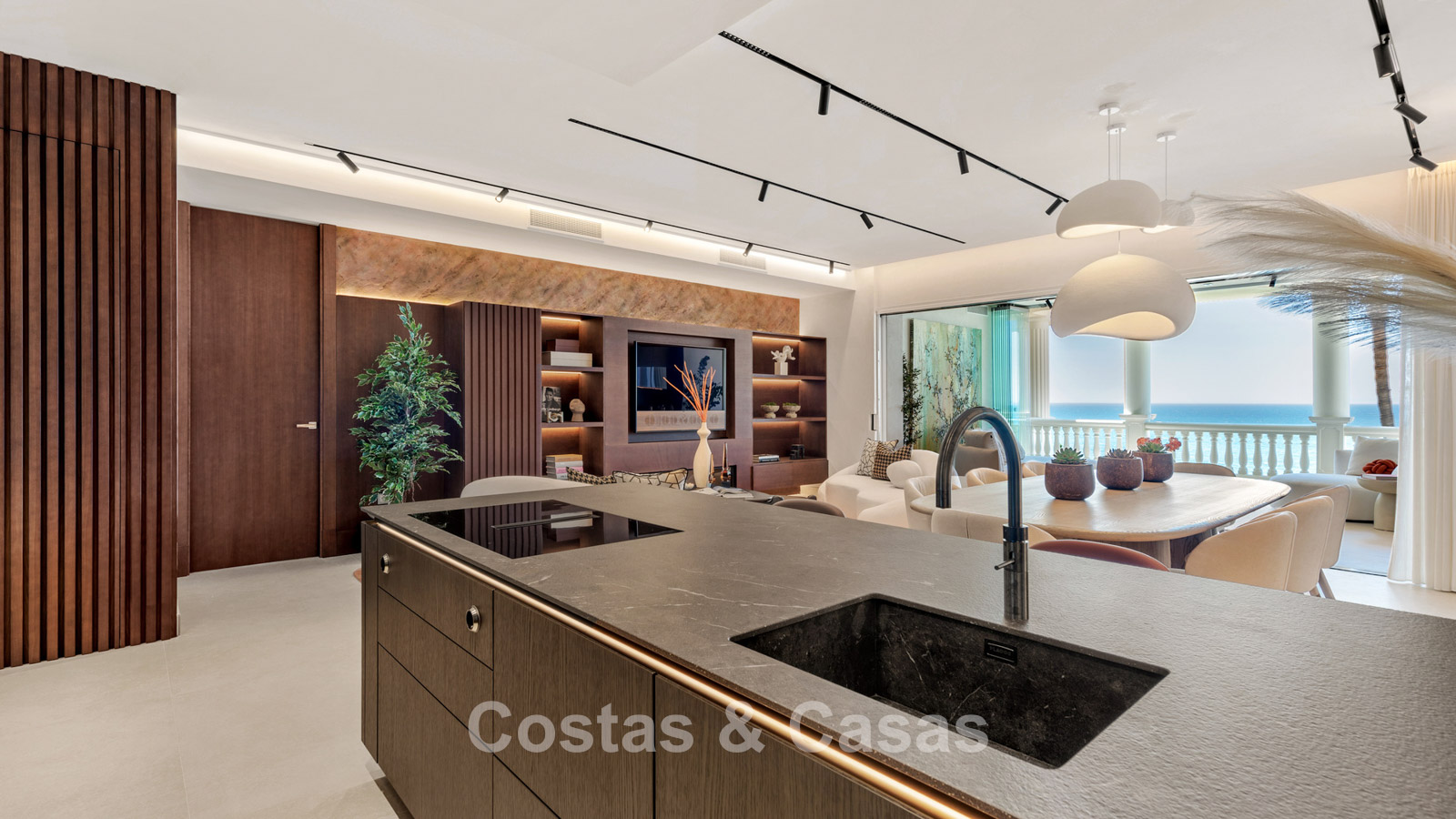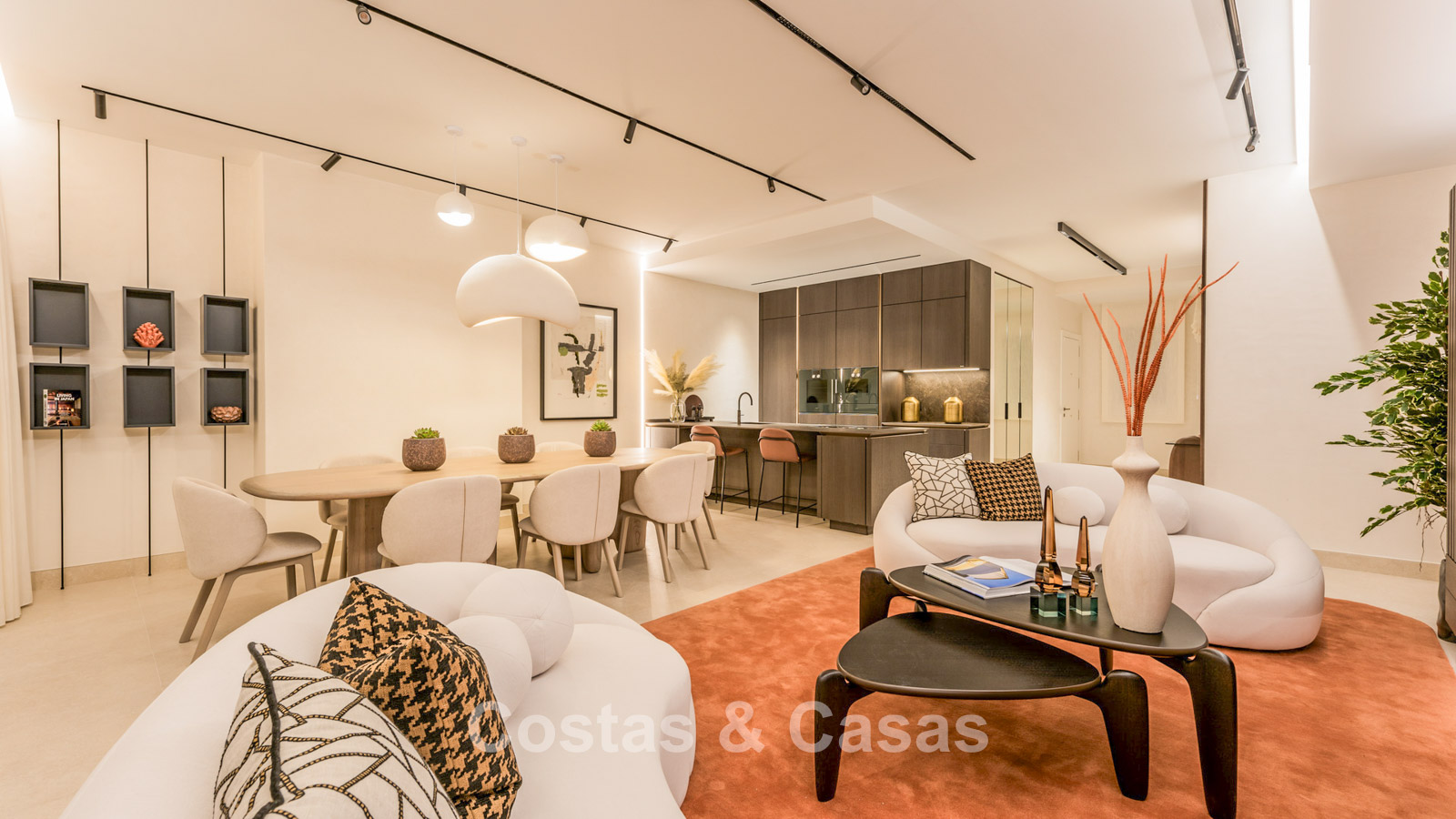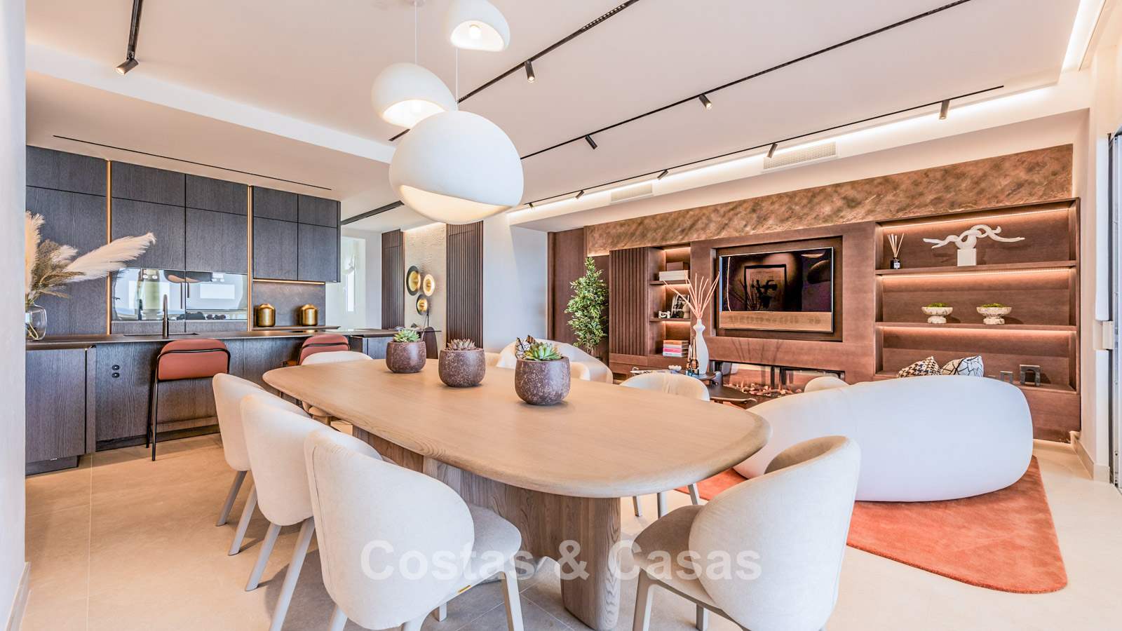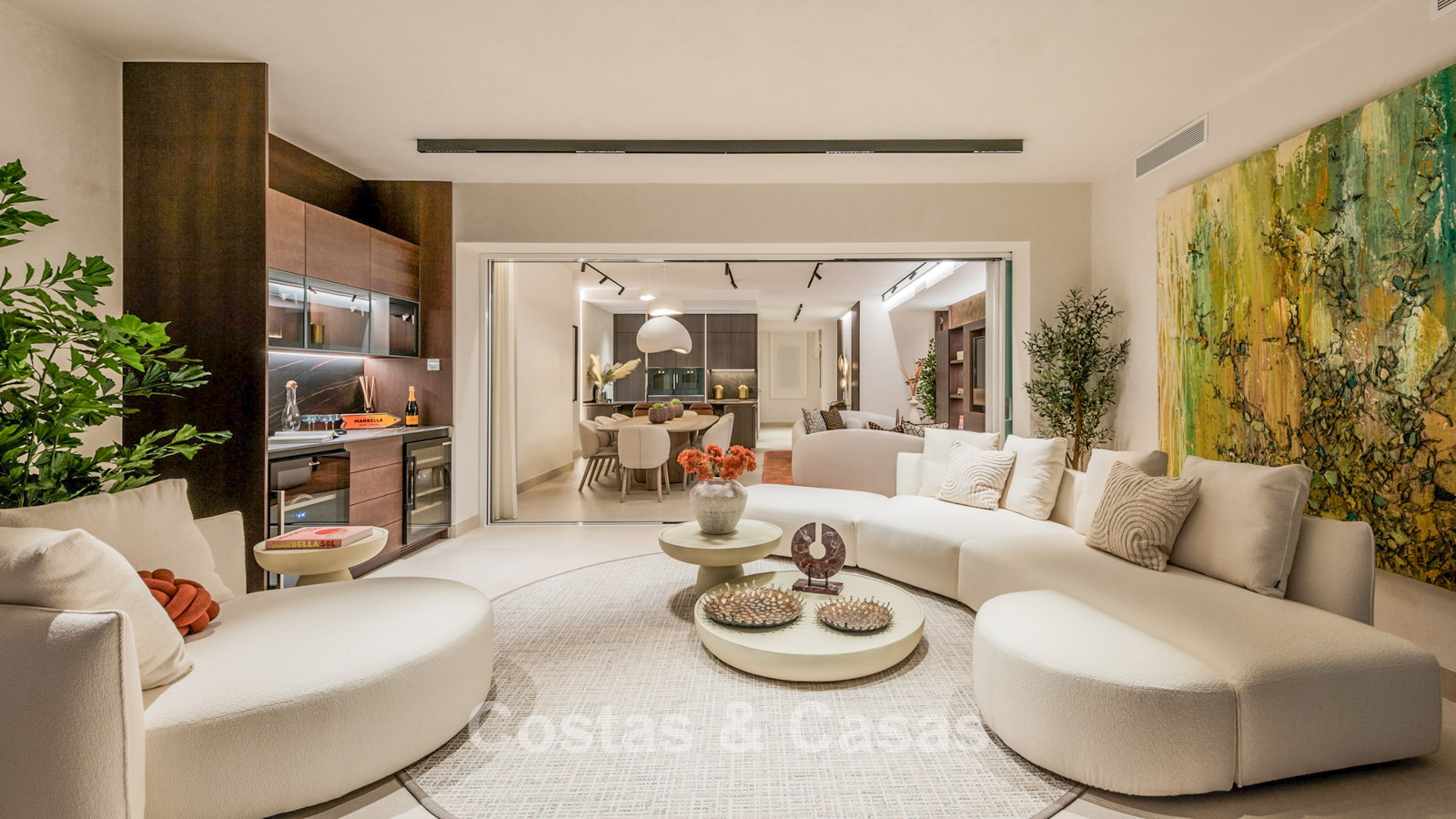 Open plan leefruimte meet TV lounge en geïntegreerde eetkamer.