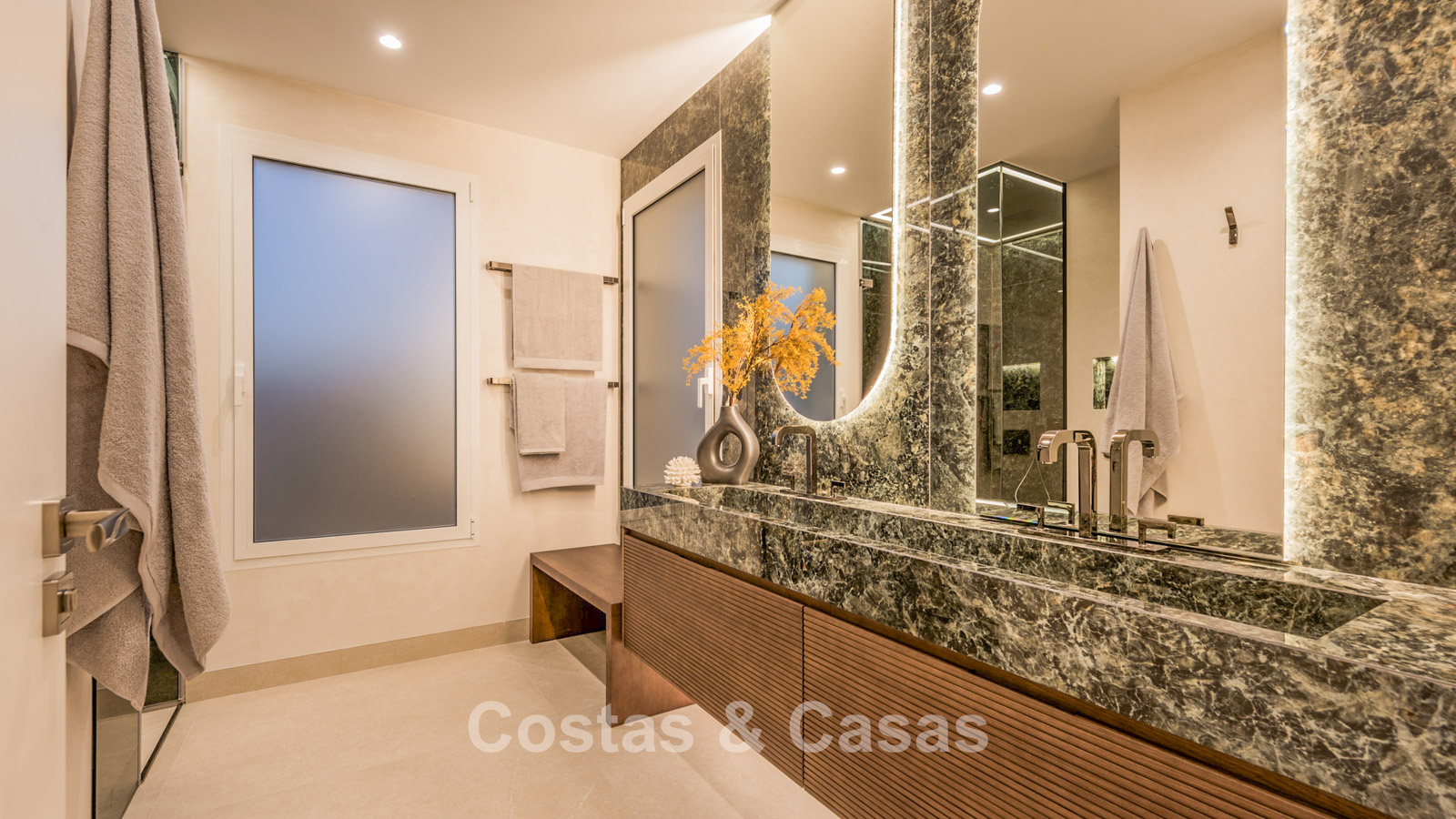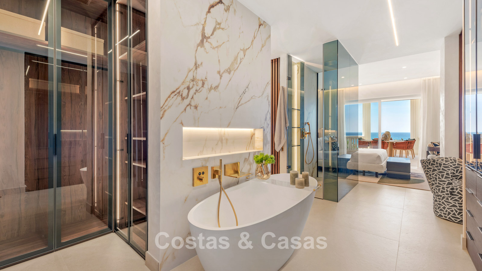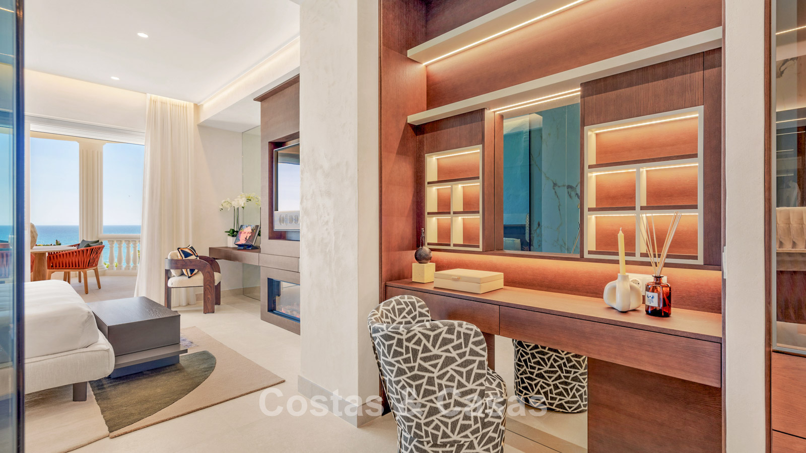 Schitterende master suite met dressing en toegang tot het zuidelijk gericht terras.