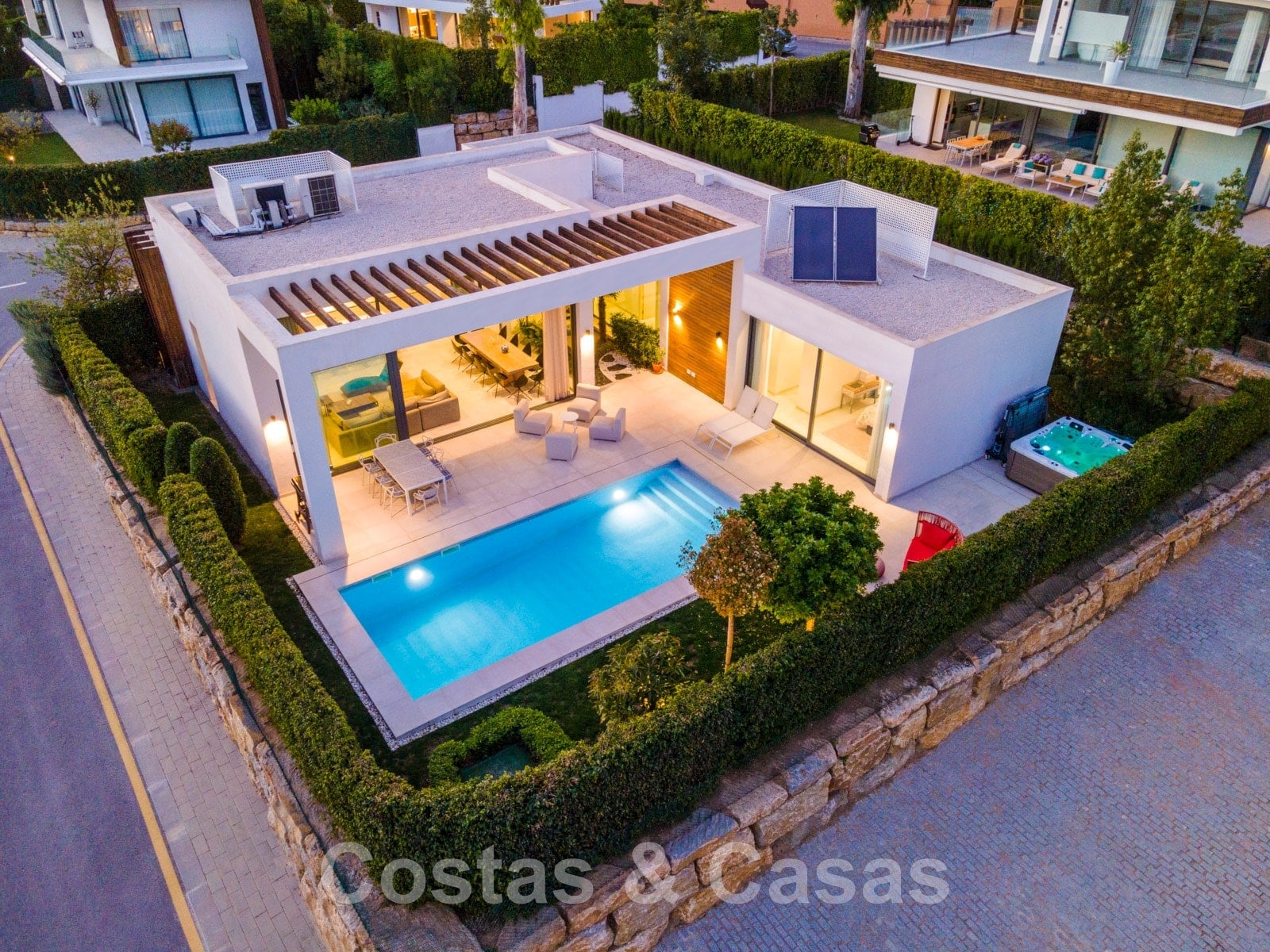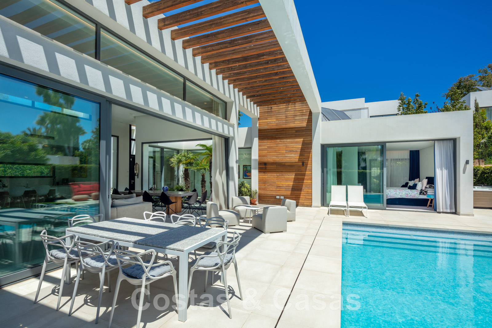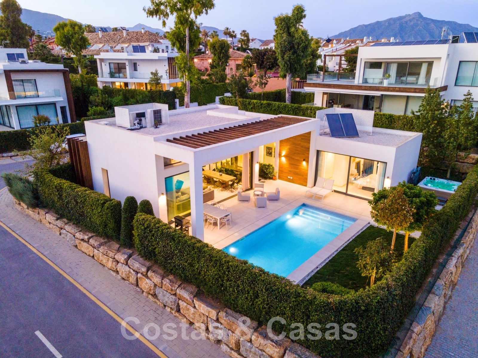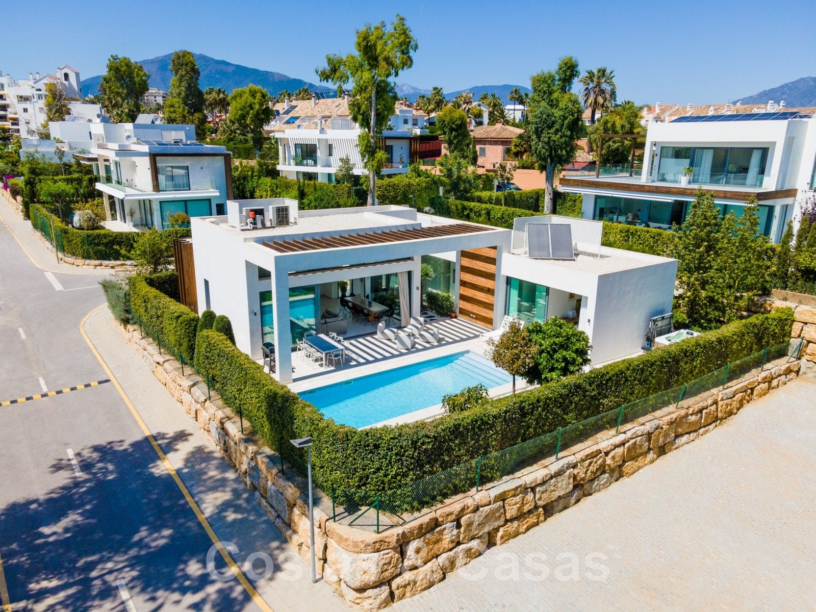 Luxueuze, moderne villa te koop in een omsloten villacomplex dicht bij alle voorzieningen tussen Marbella en Estepona