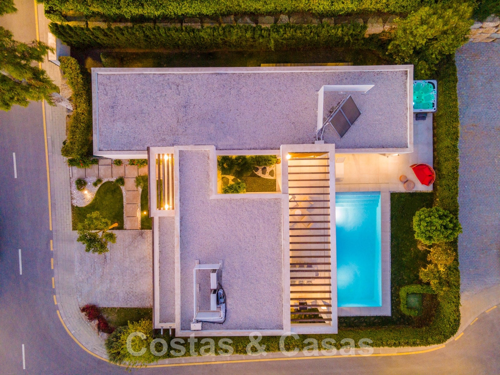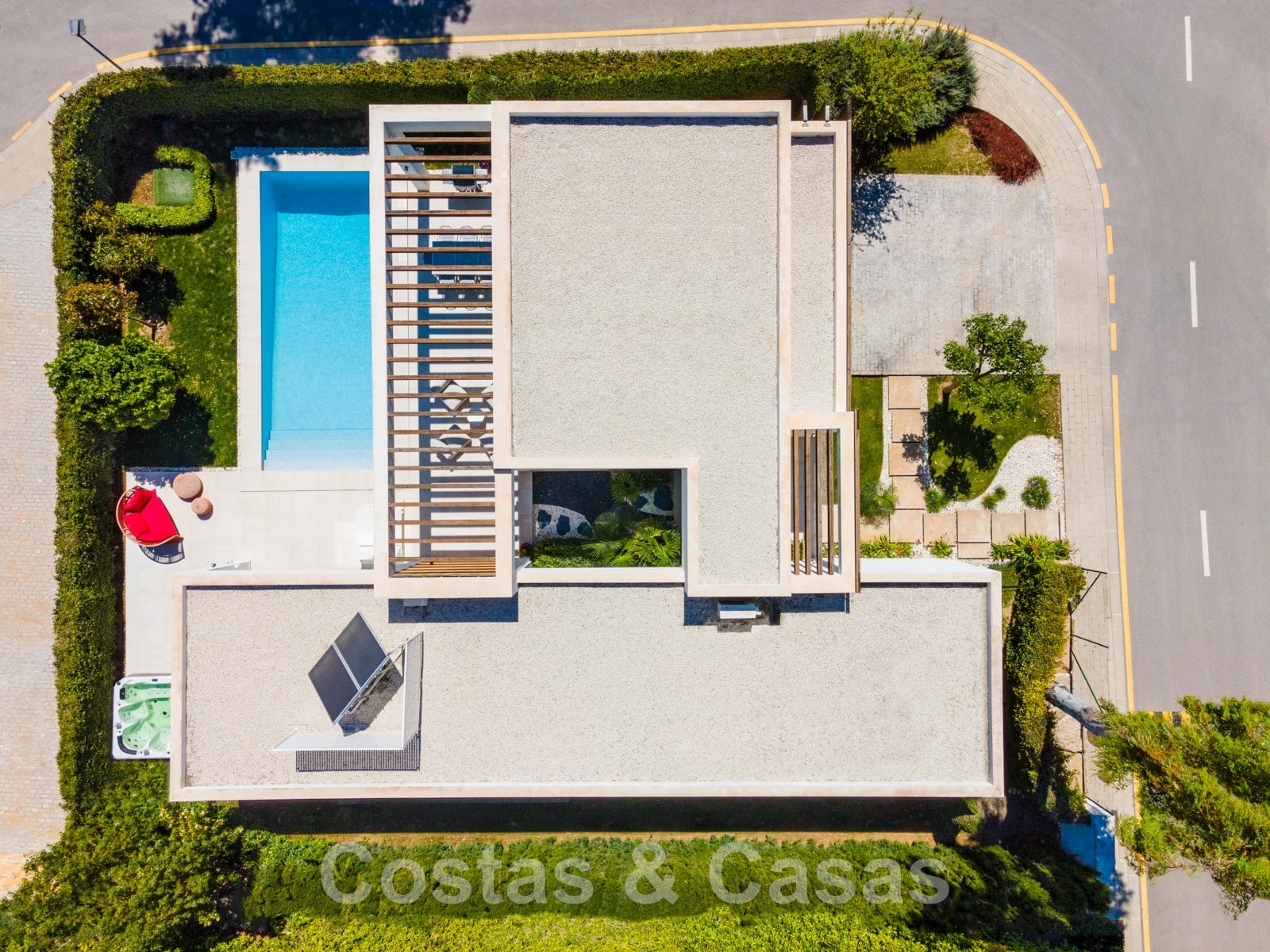 • Rechthoekig, ingebouwd zoutwaterzwembad.
