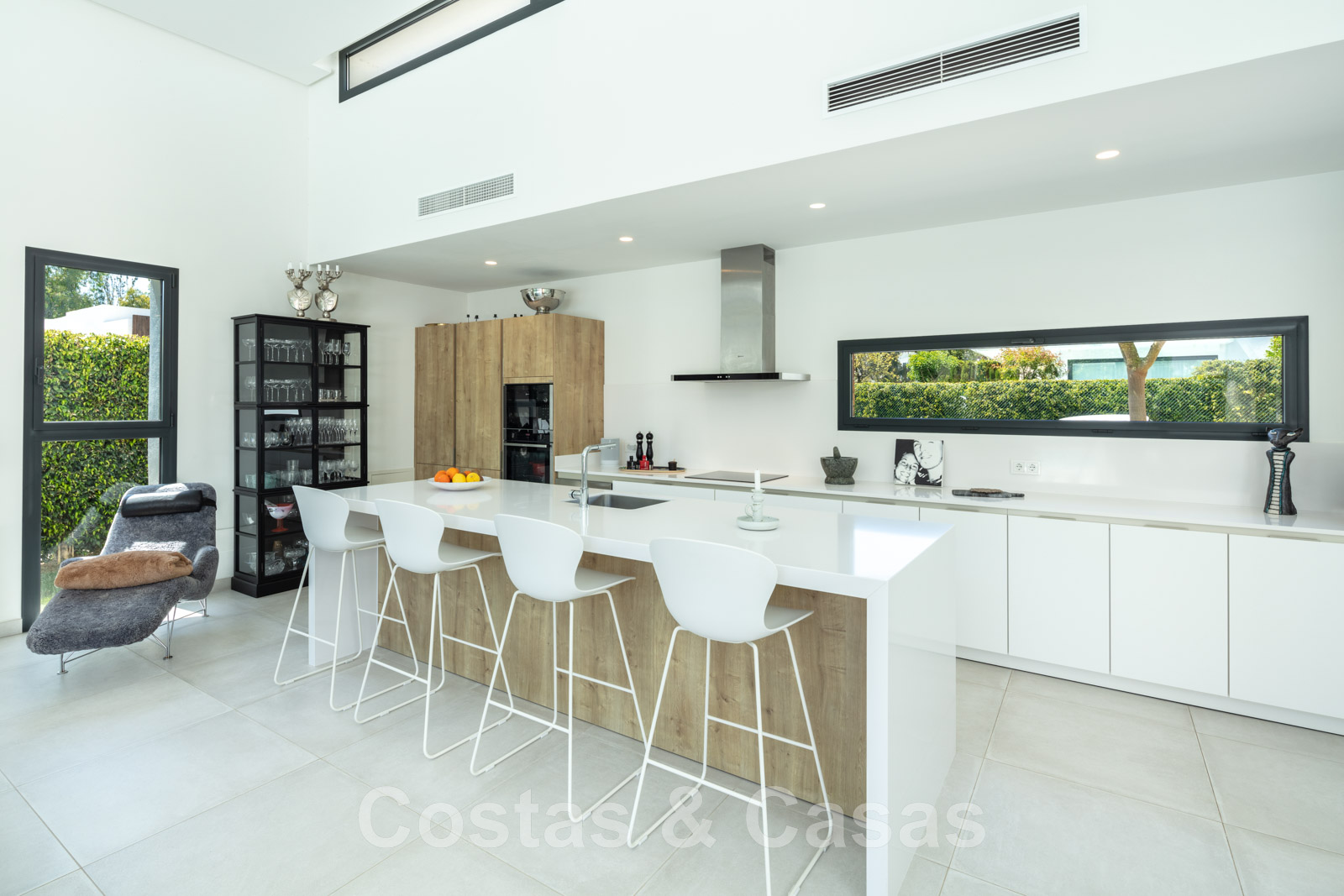 • Keuken volledig uitgerust met NEFF apparaten, wijnkoeler en een eiland met zitjes.