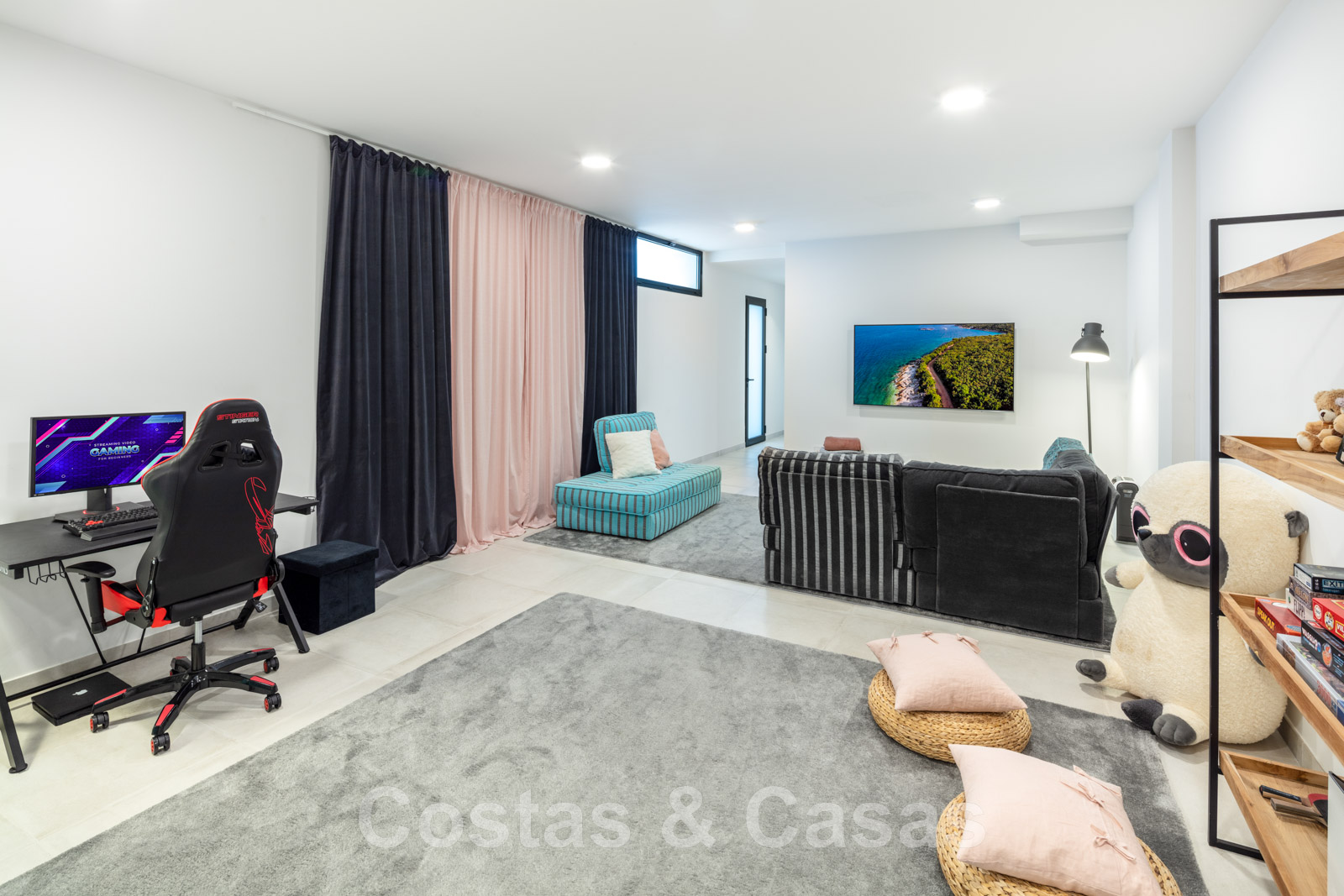 • Grote ruimte van 53m² die kan dienen als ontspanningsruimte, speelkamer of home cinema met chill-out.