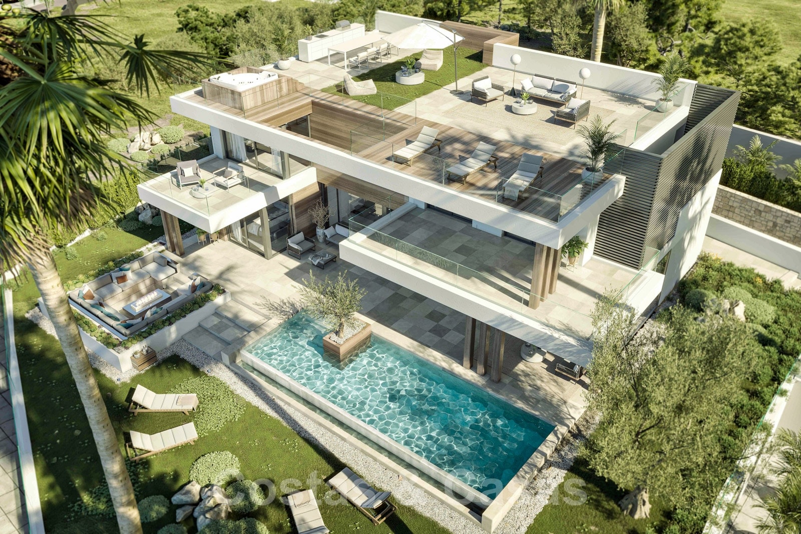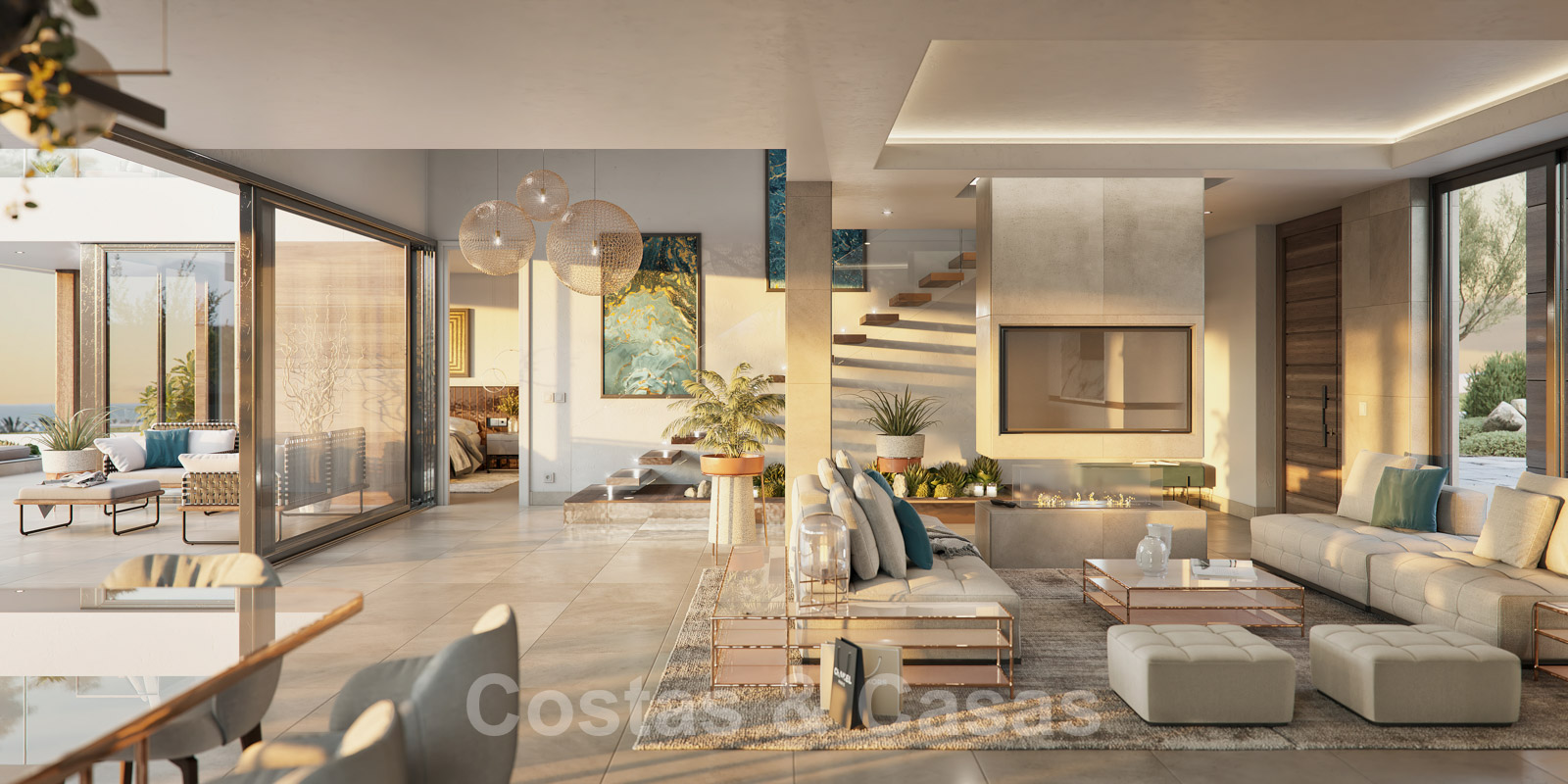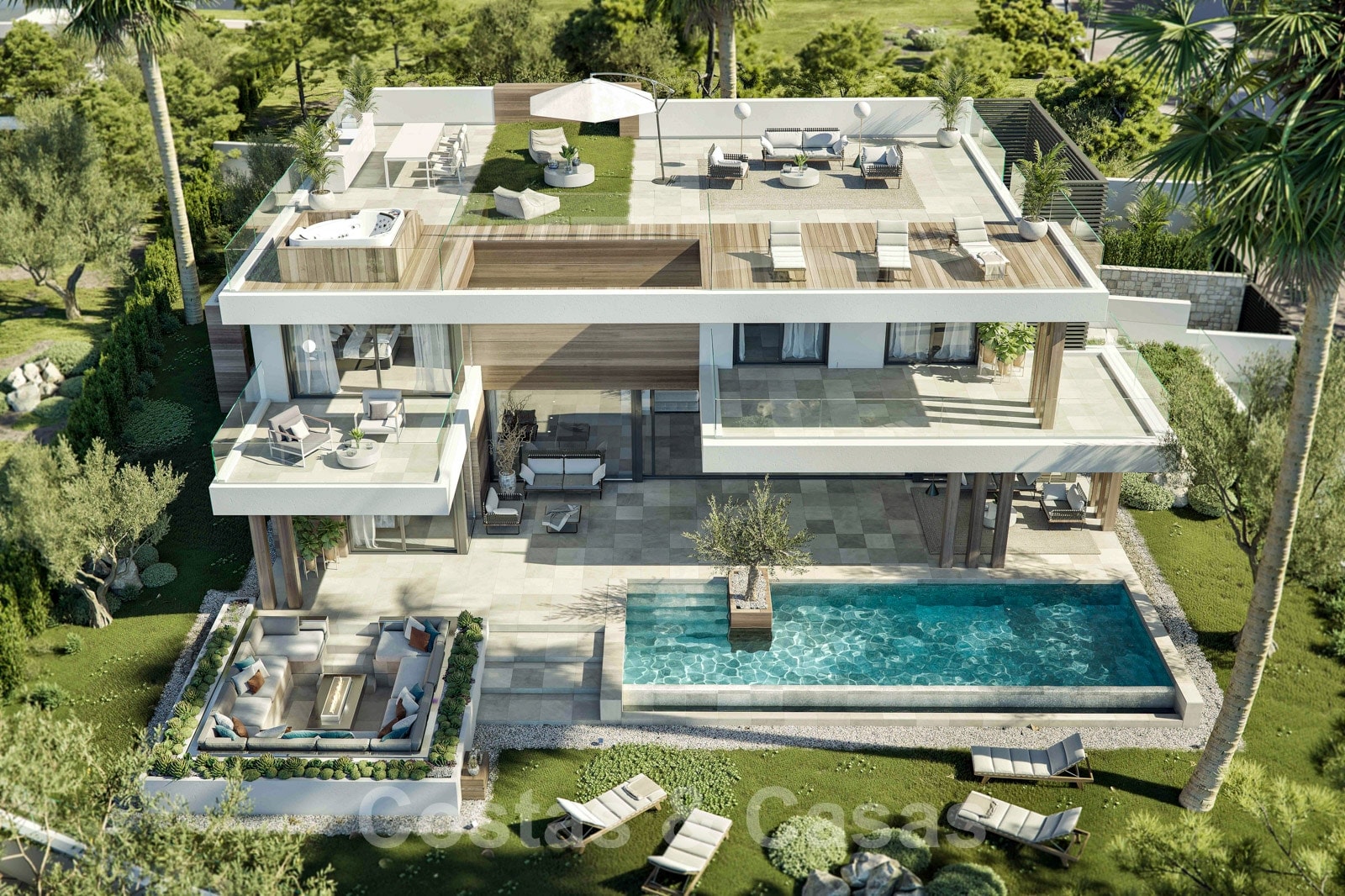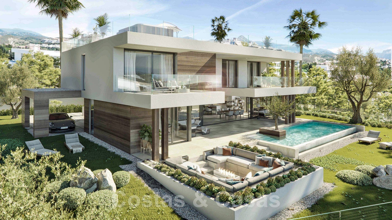 Nieuwe, stijlvolle moderne luxevilla's met zeezicht te koop in een nieuw project op de New Golden Mile tussen Marbella en Estepona