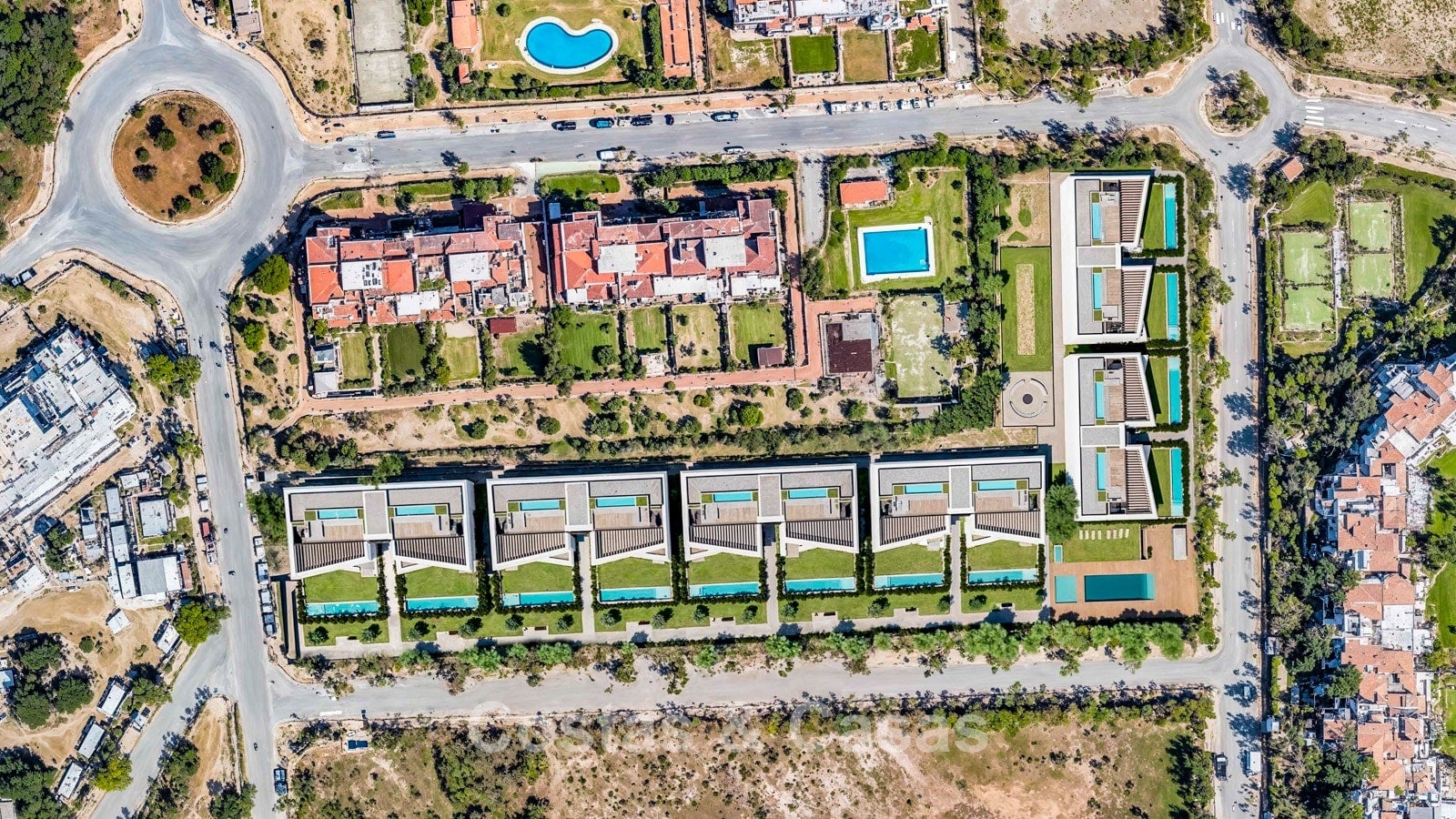 De begane grond woningen beschikken allemaal over een privétuin met eigen zwembad.