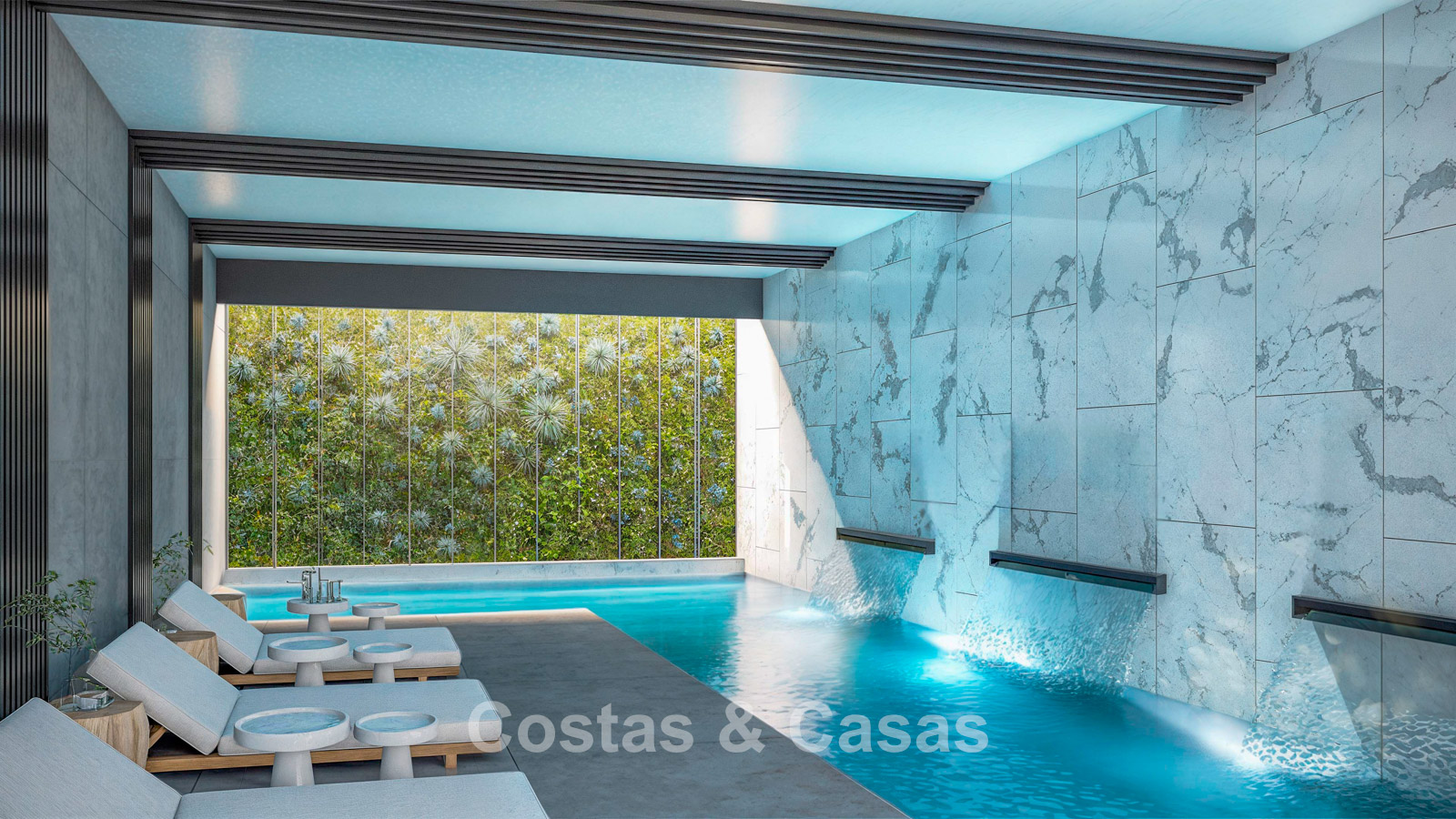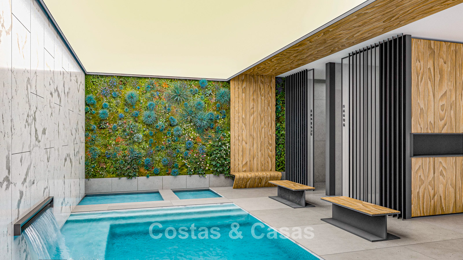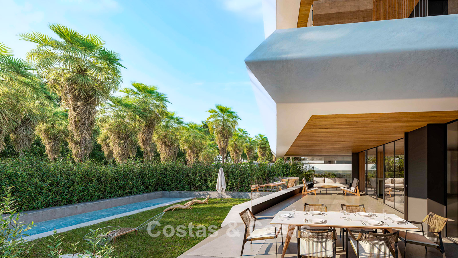 De penthouses genieten van een royaal dakterras, uitgerust met een privézwembad.
