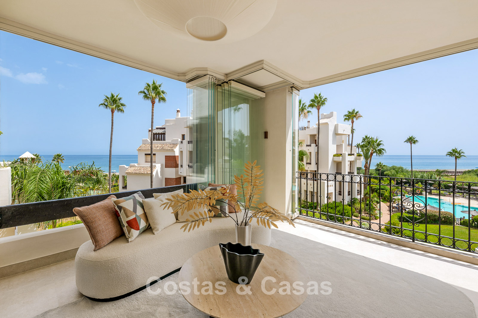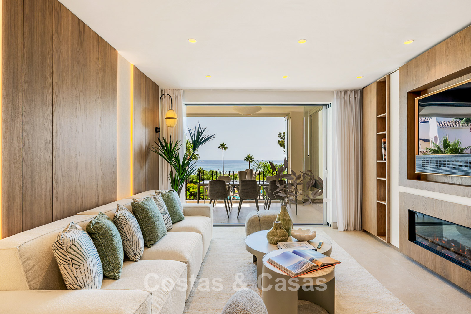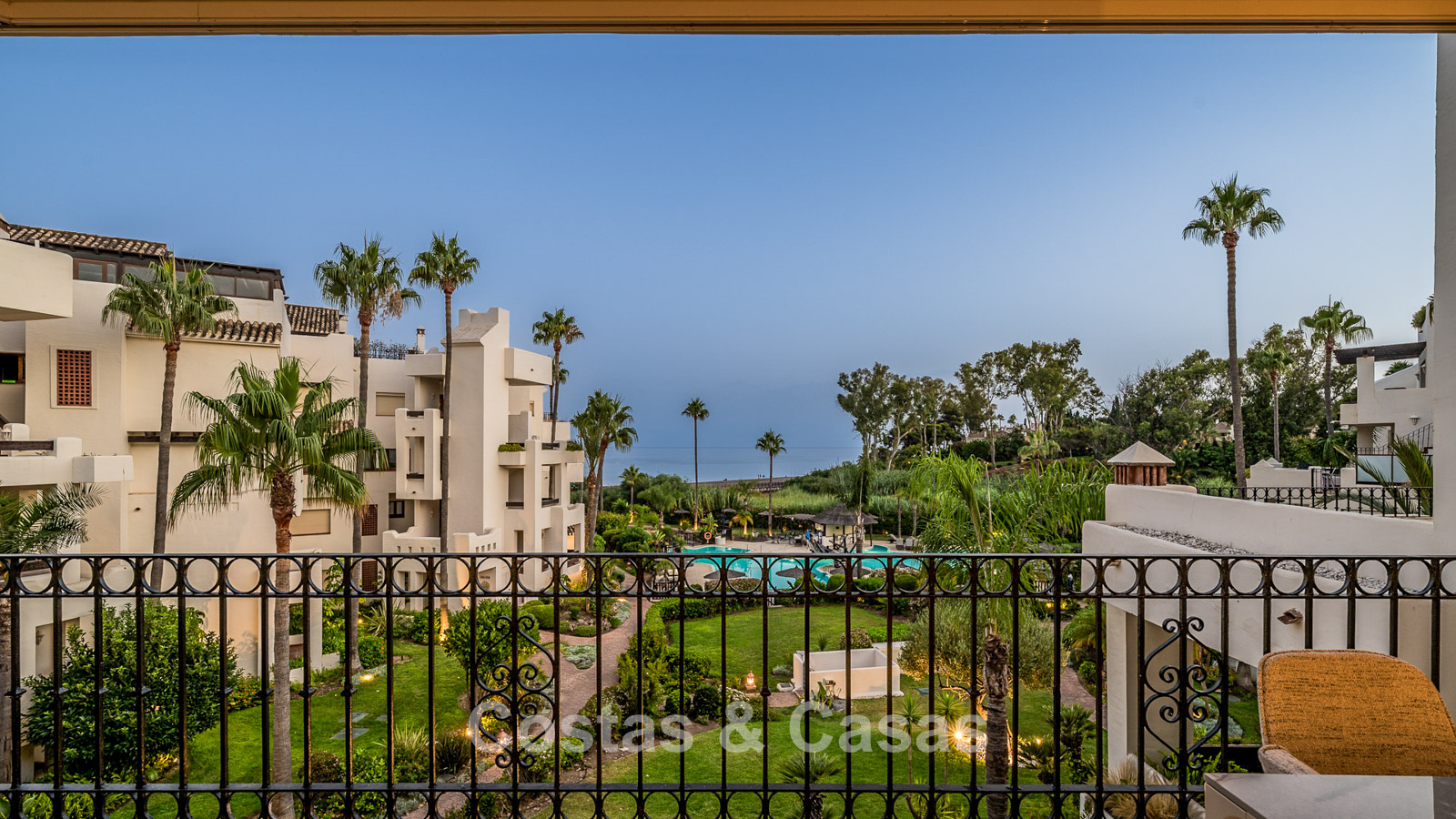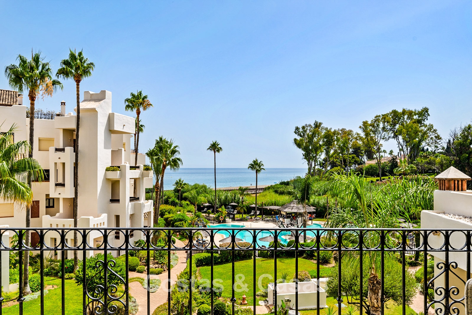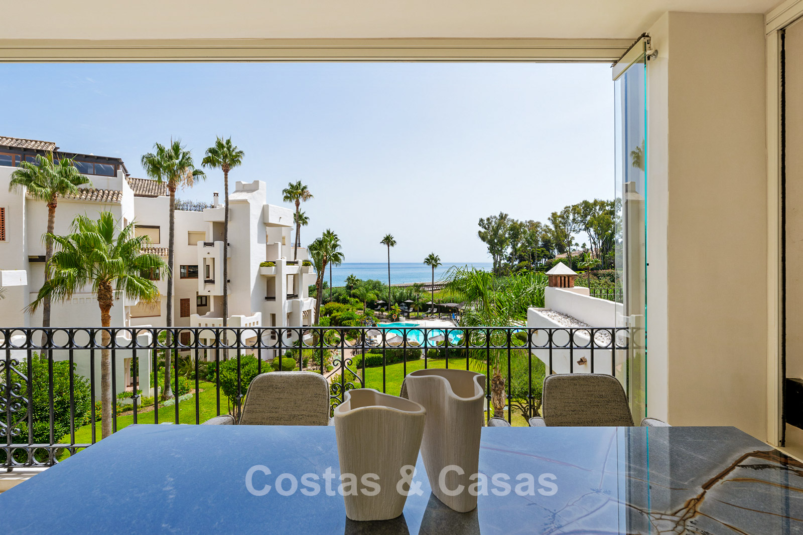 Gerenoveerd appartement met zeezicht te koop in een frontlijn strandcomplex op loopafstand van Puerto Banus, Marbella