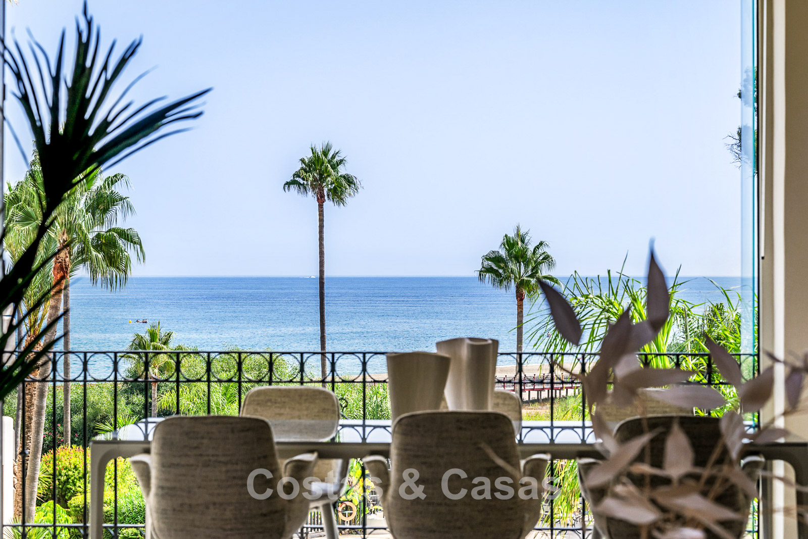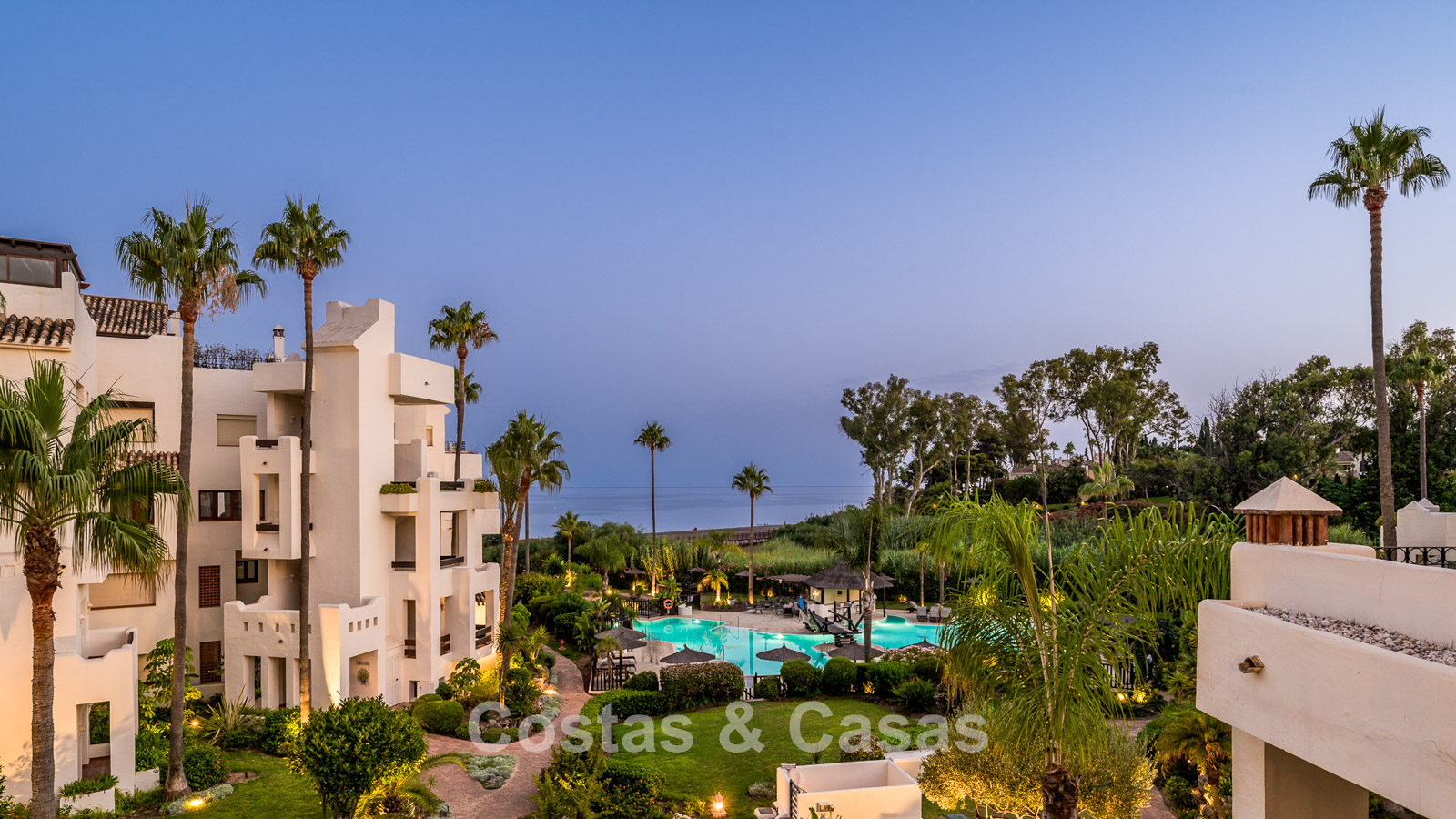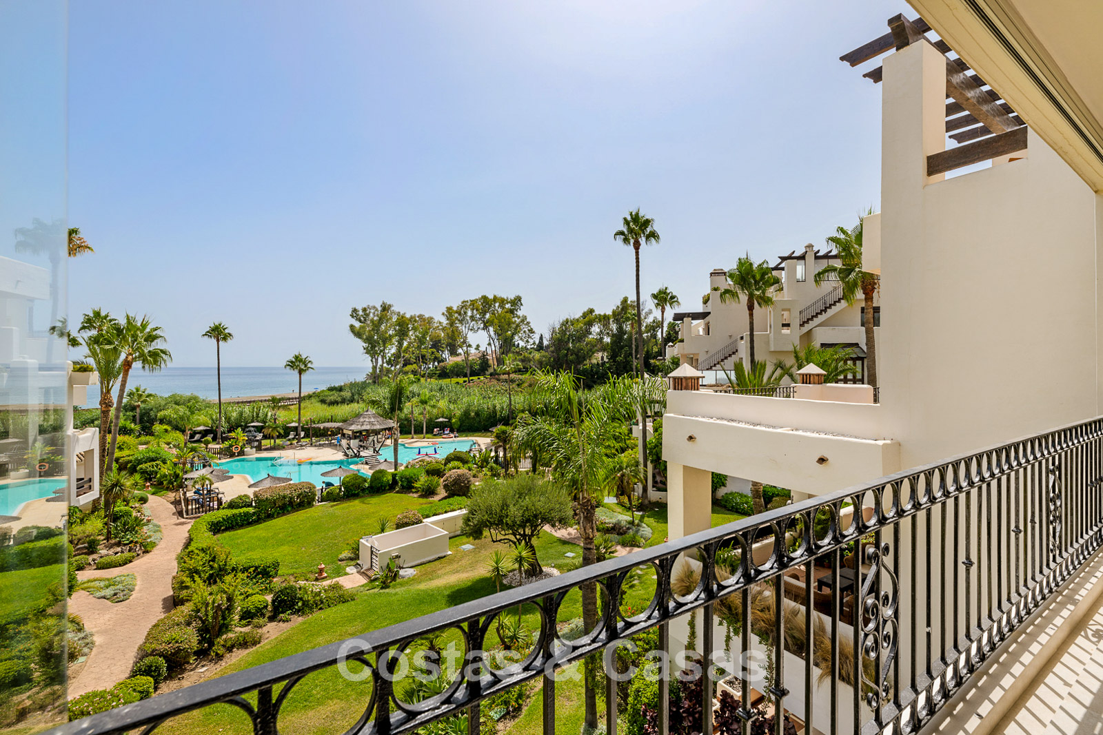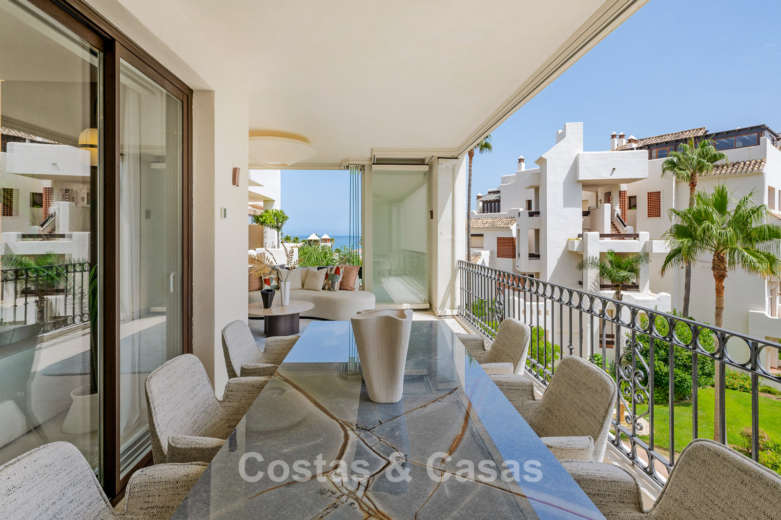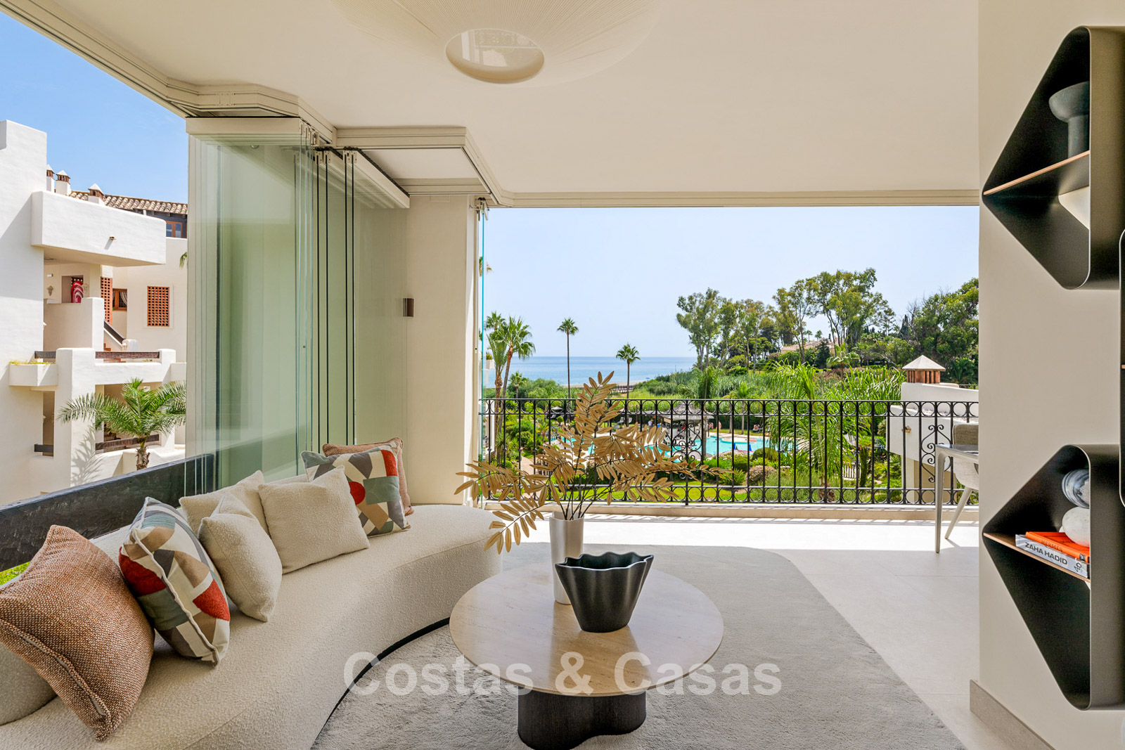 Gerenoveerd appartement met zeezicht te koop in een frontlijn strandcomplex op loopafstand van Puerto Banus, Marbella