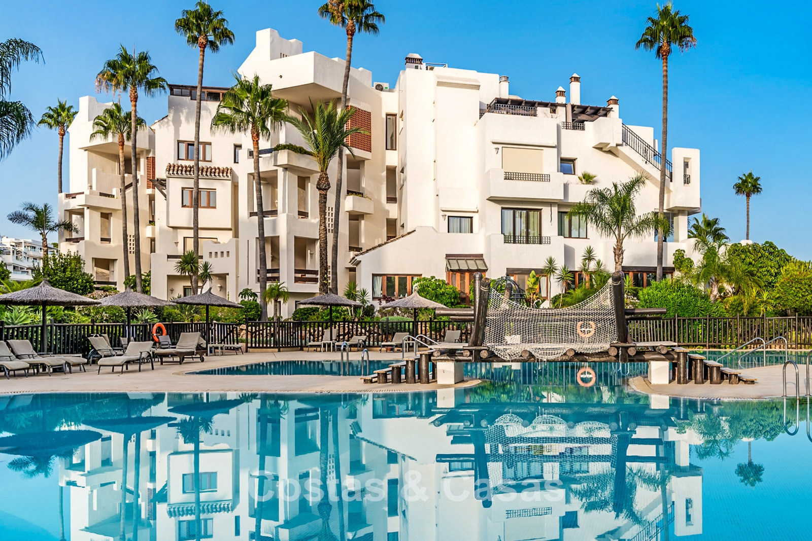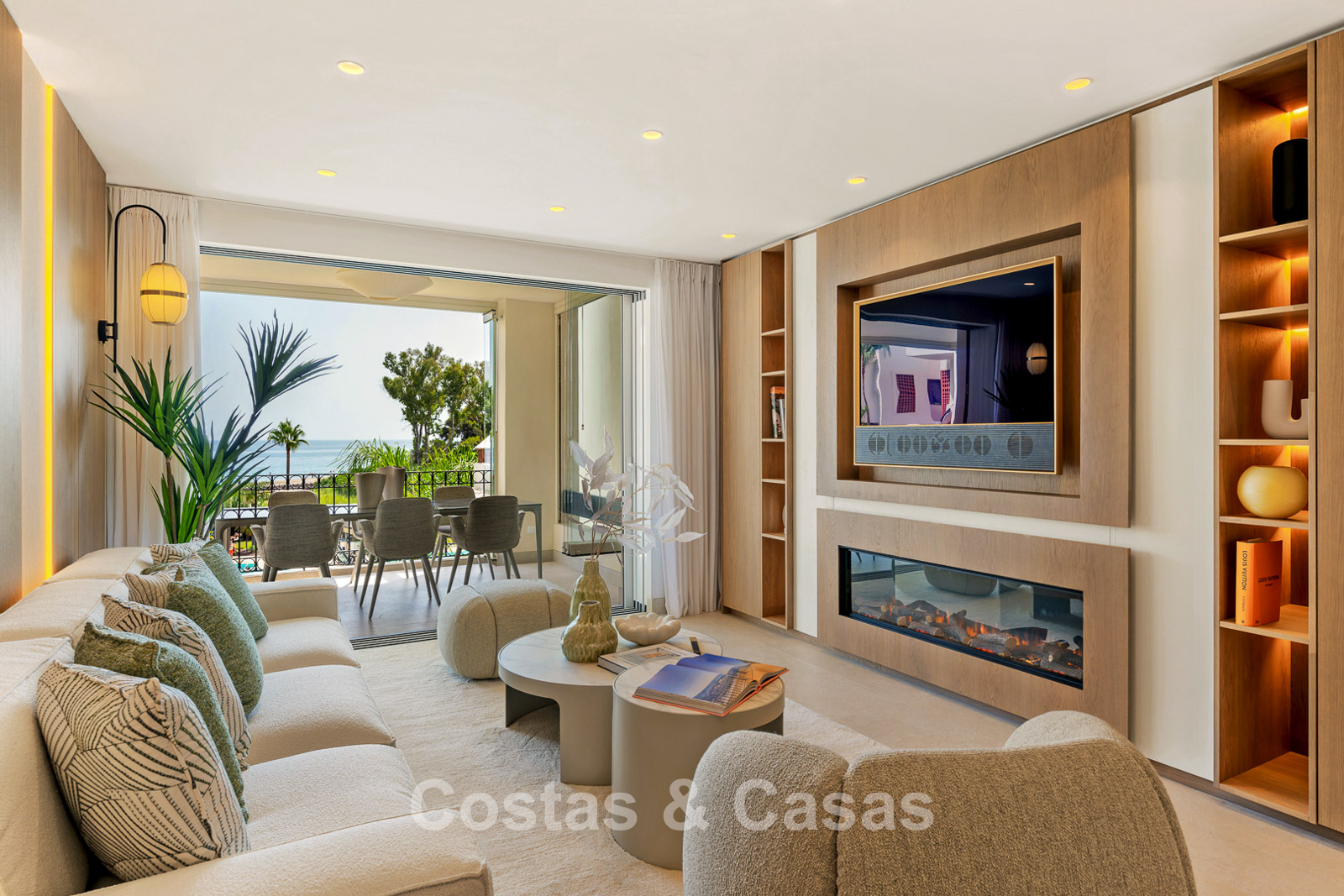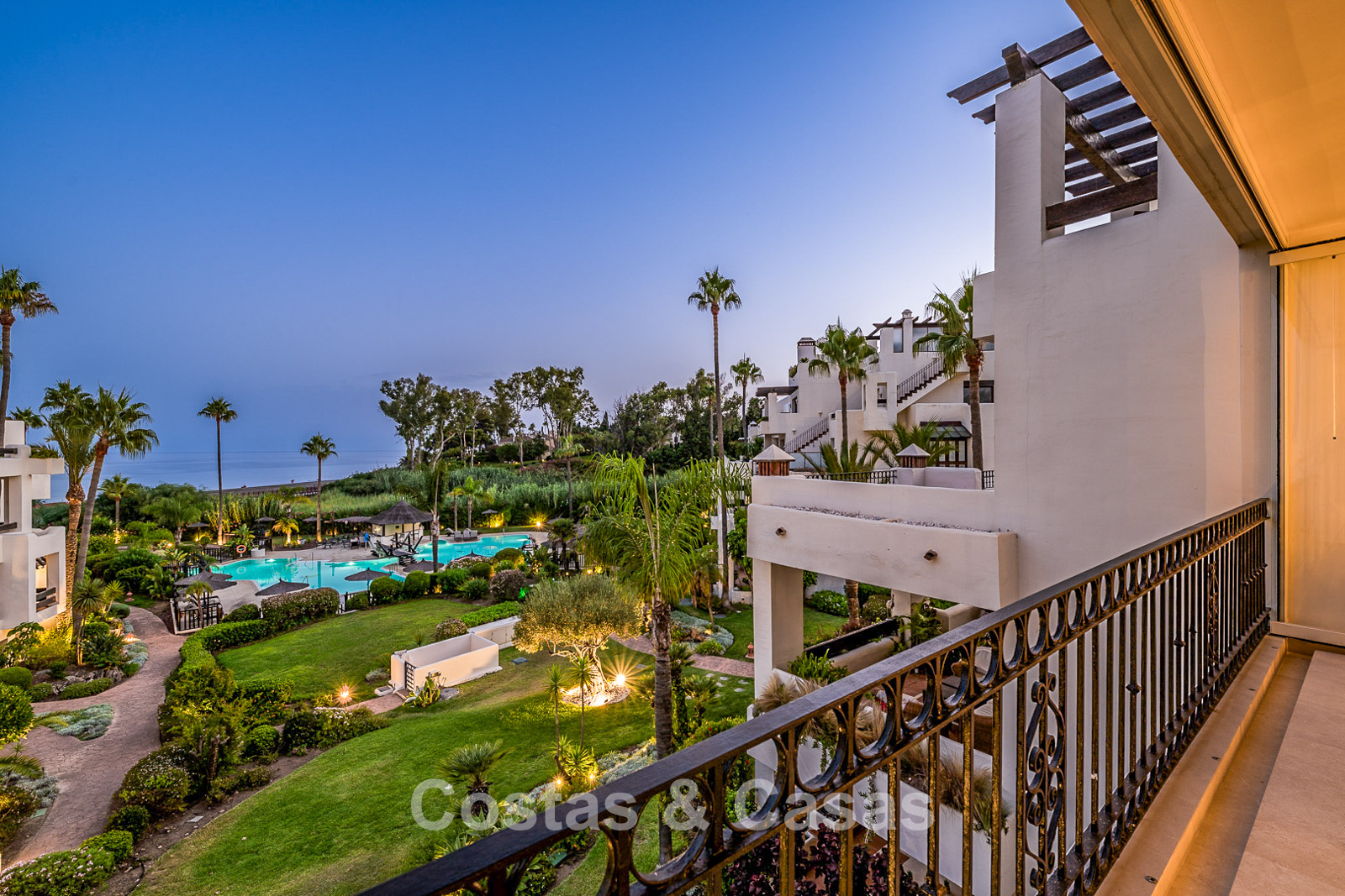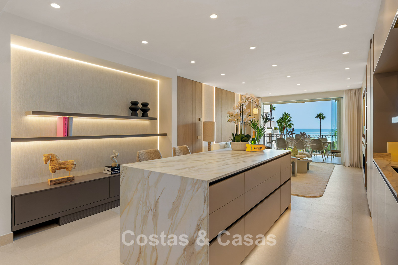 Gerenoveerd appartement met zeezicht te koop in een frontlijn strandcomplex op loopafstand van Puerto Banus, Marbella
