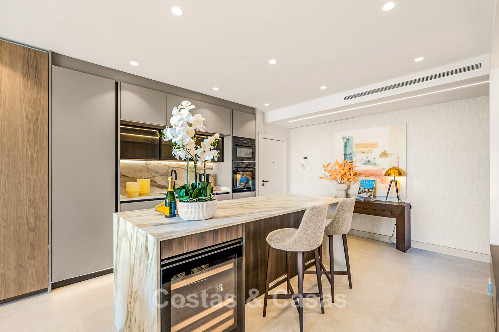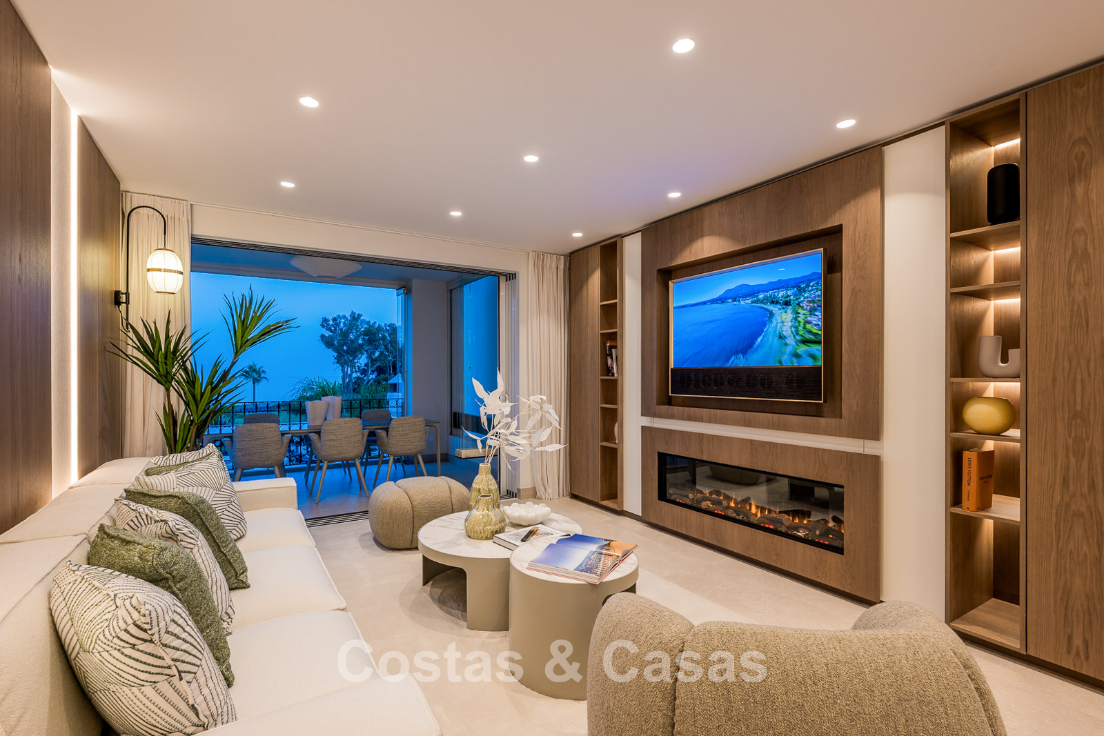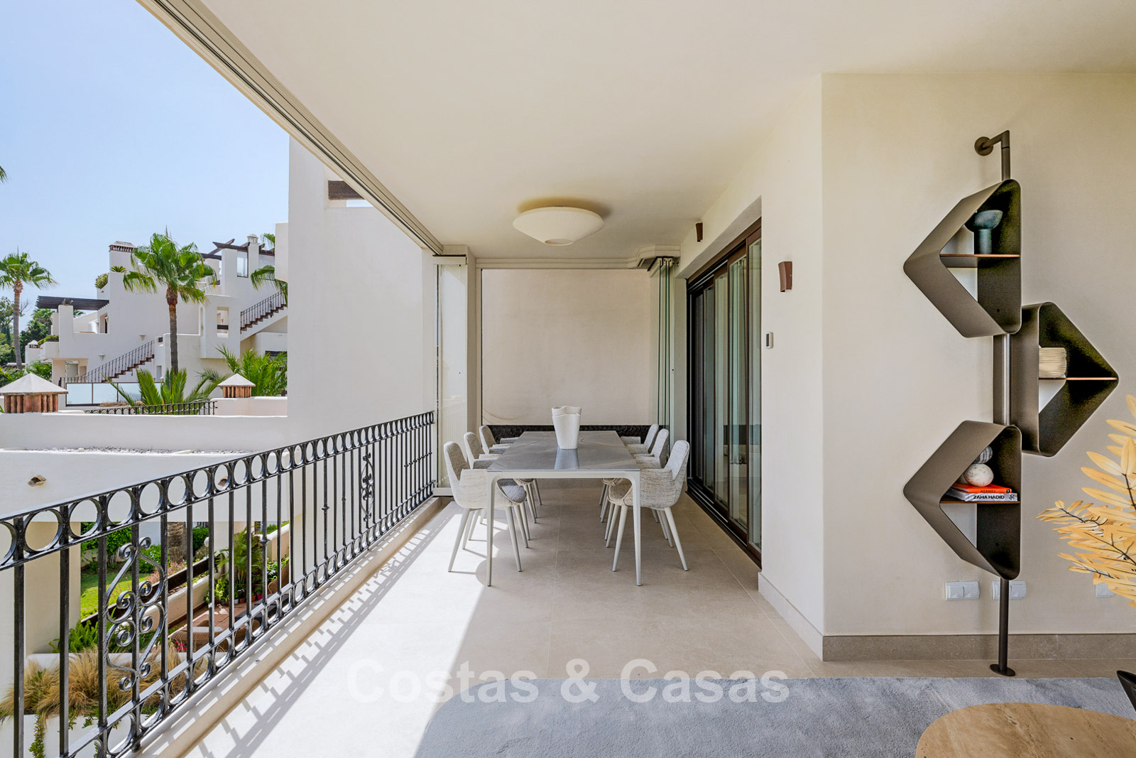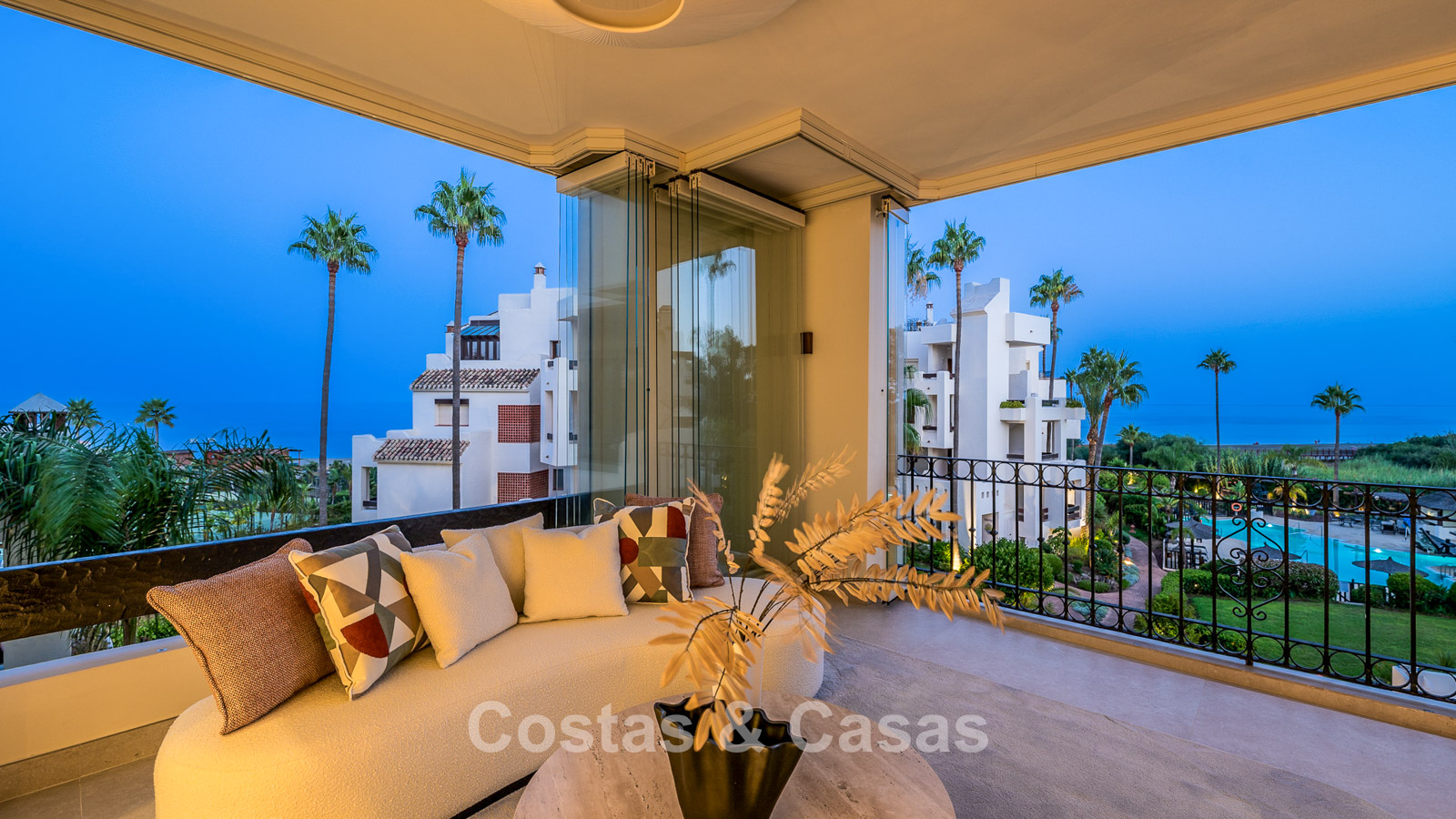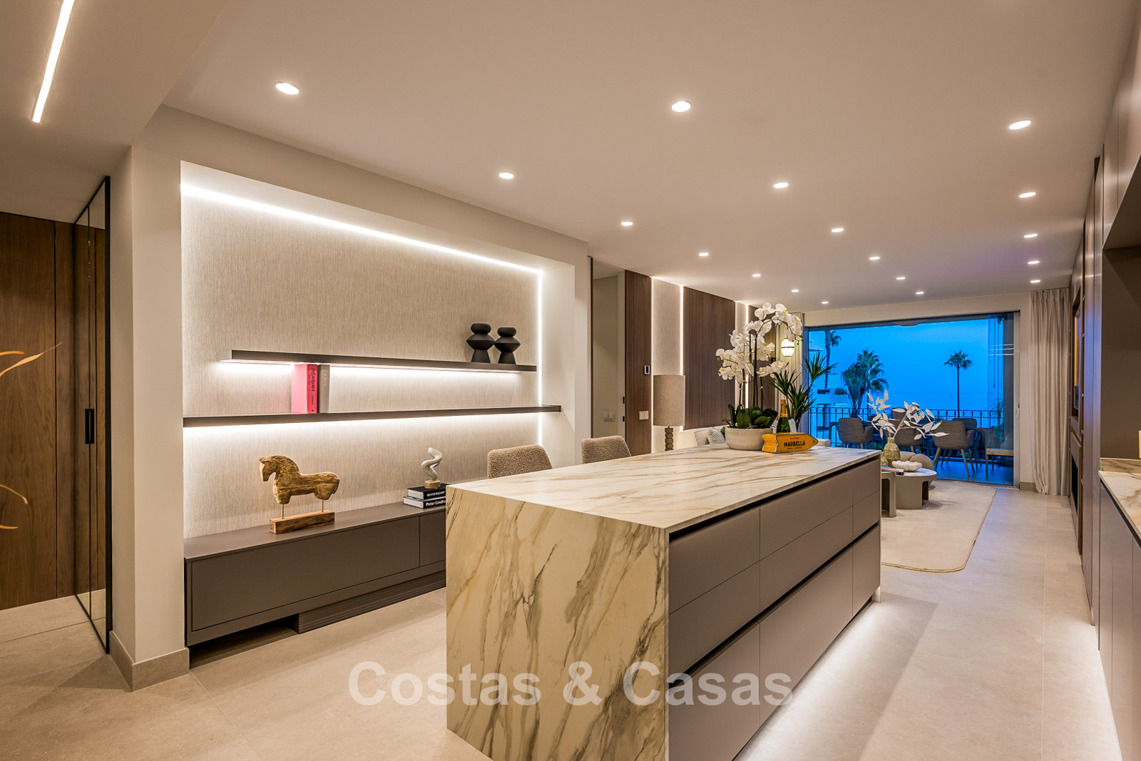 Gerenoveerd appartement met zeezicht te koop in een frontlijn strandcomplex op loopafstand van Puerto Banus, Marbella