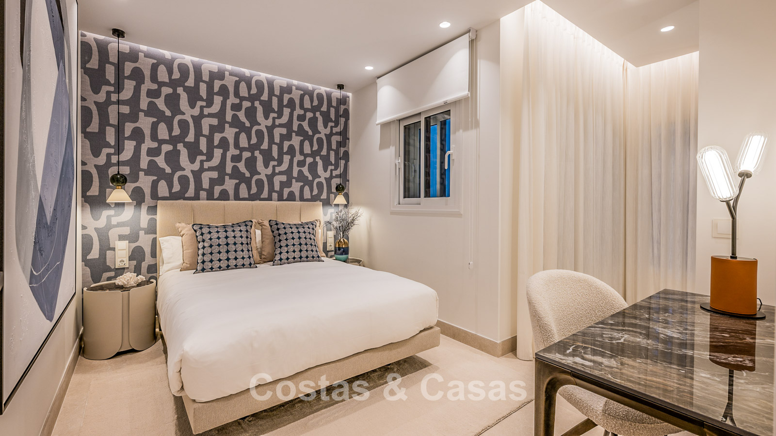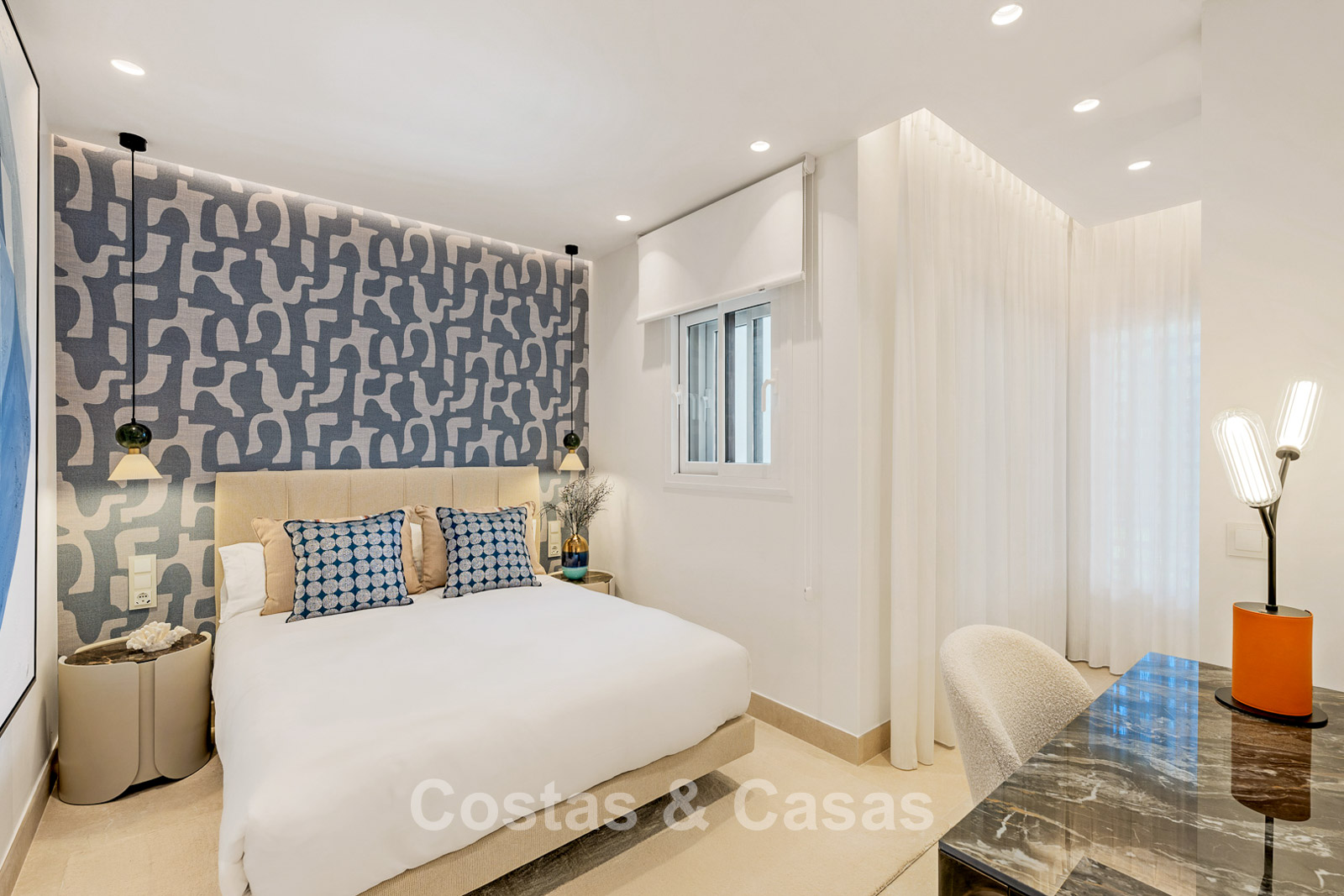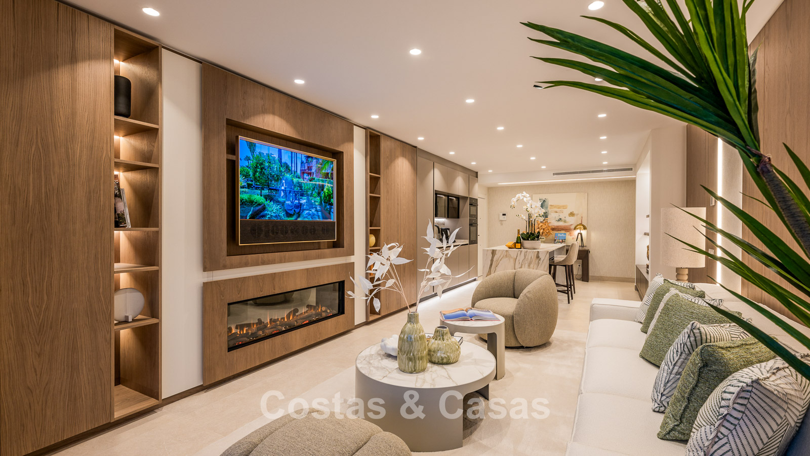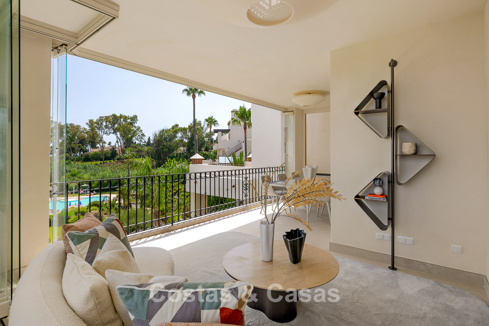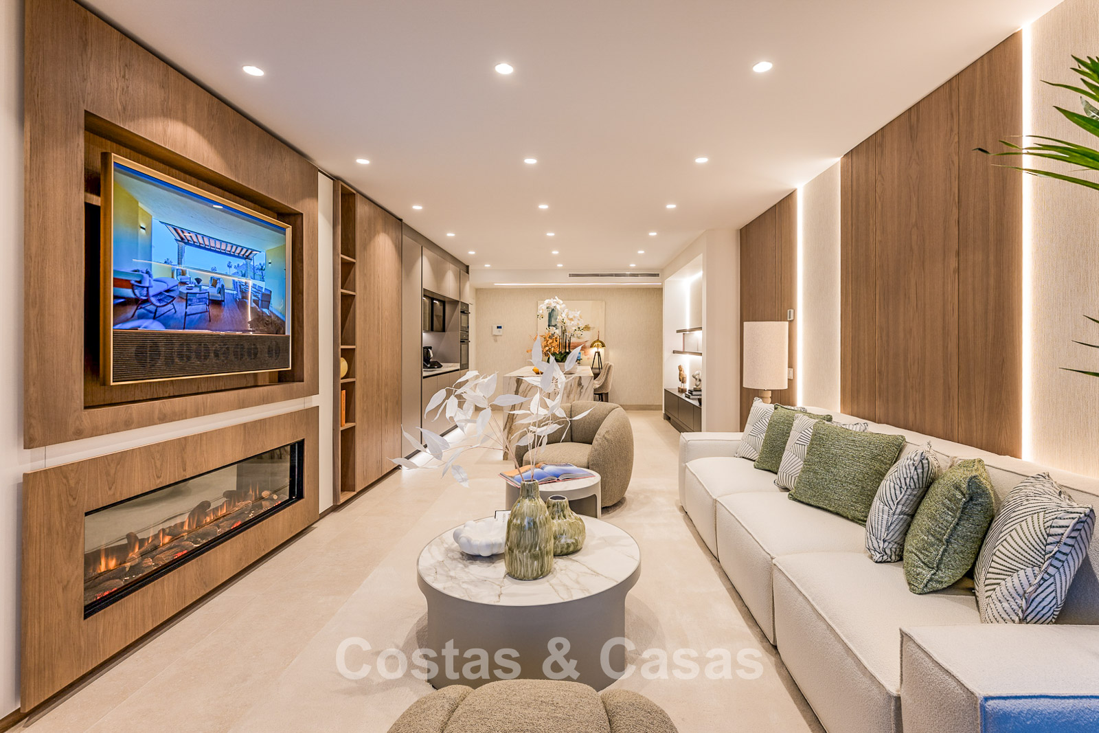 Gerenoveerd appartement met zeezicht te koop in een frontlijn strandcomplex op loopafstand van Puerto Banus, Marbella