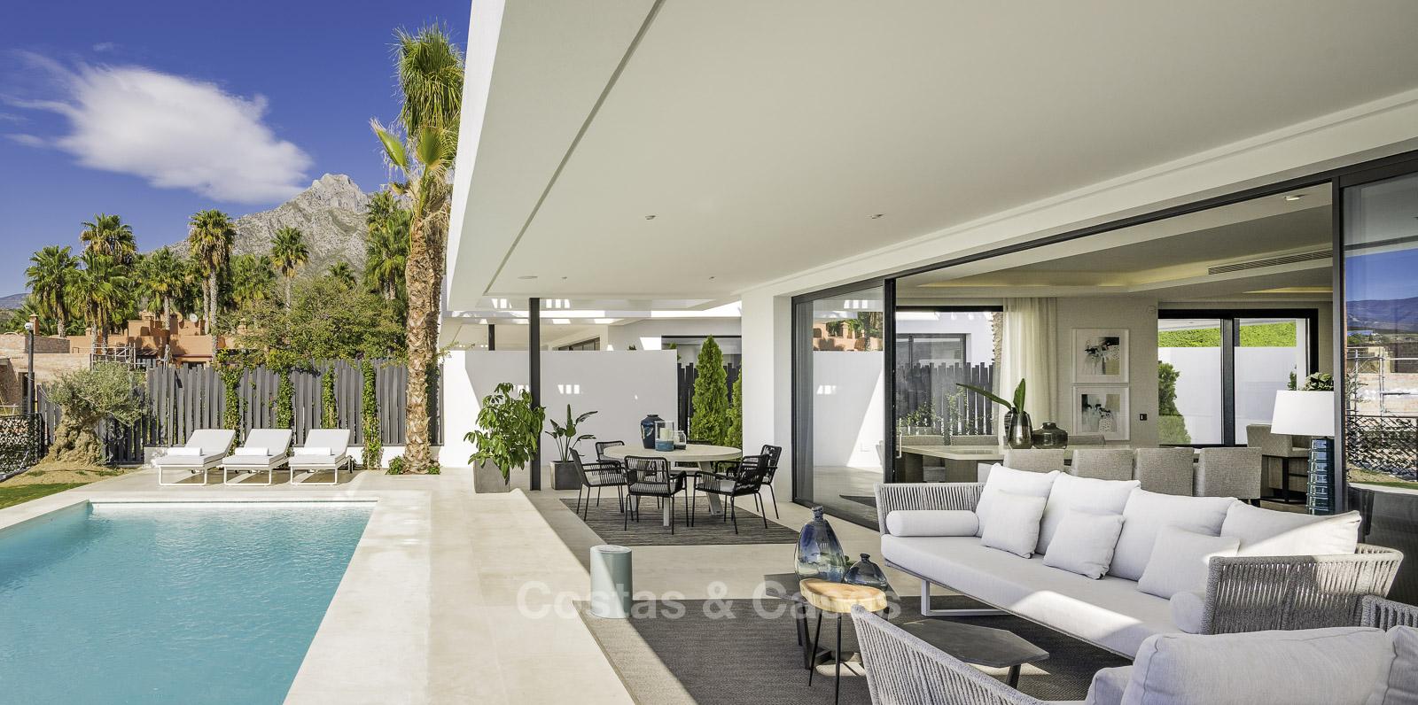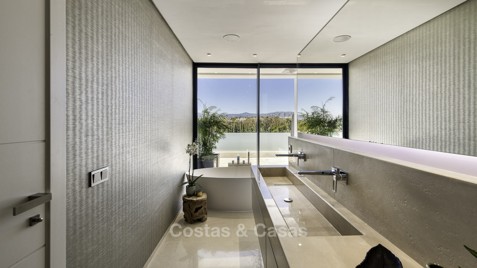 Innovatieve nieuwbouwvilla te koop, passend in de geweldige natuurlijke omgeving, unieke kijk op het berglandschap en de Middellandse Zee, in een gated resort in Benahavis - Marbella