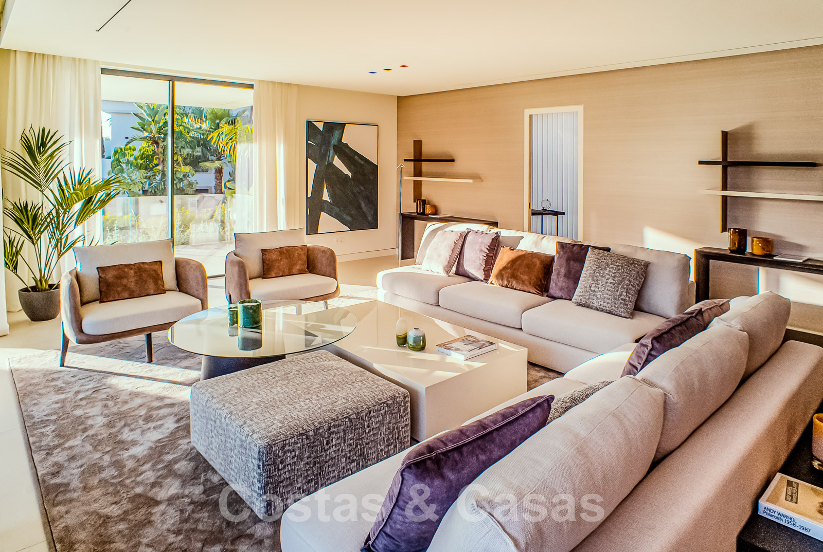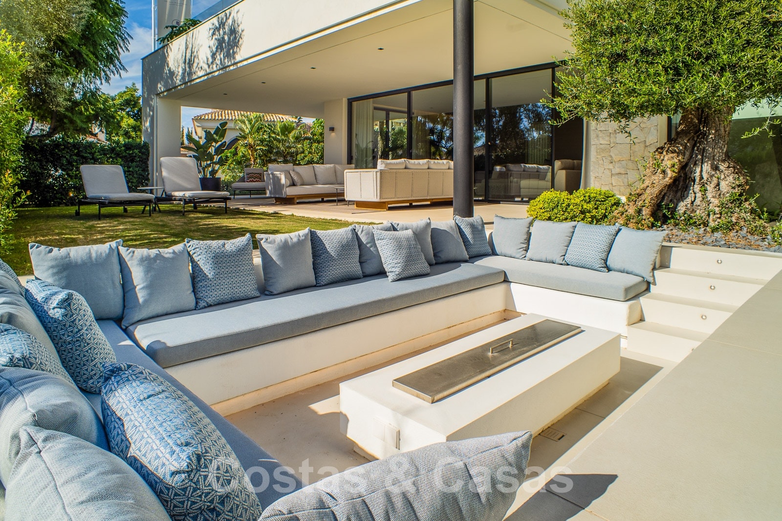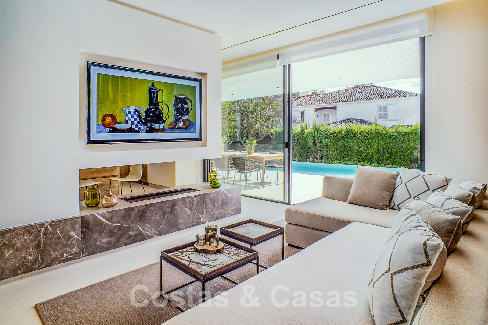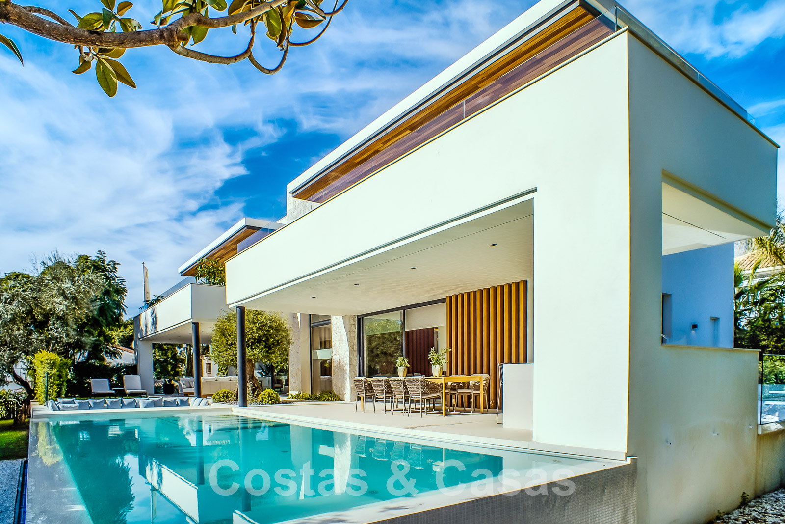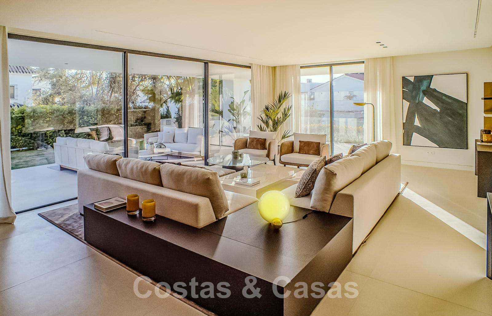 Toplocatie, moderne luxe villa te koop in een gerenommeerde urbanisatie aan het strand op de Golden Mile in Marbella. Instapklaar.