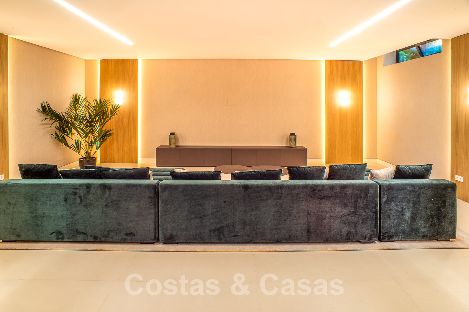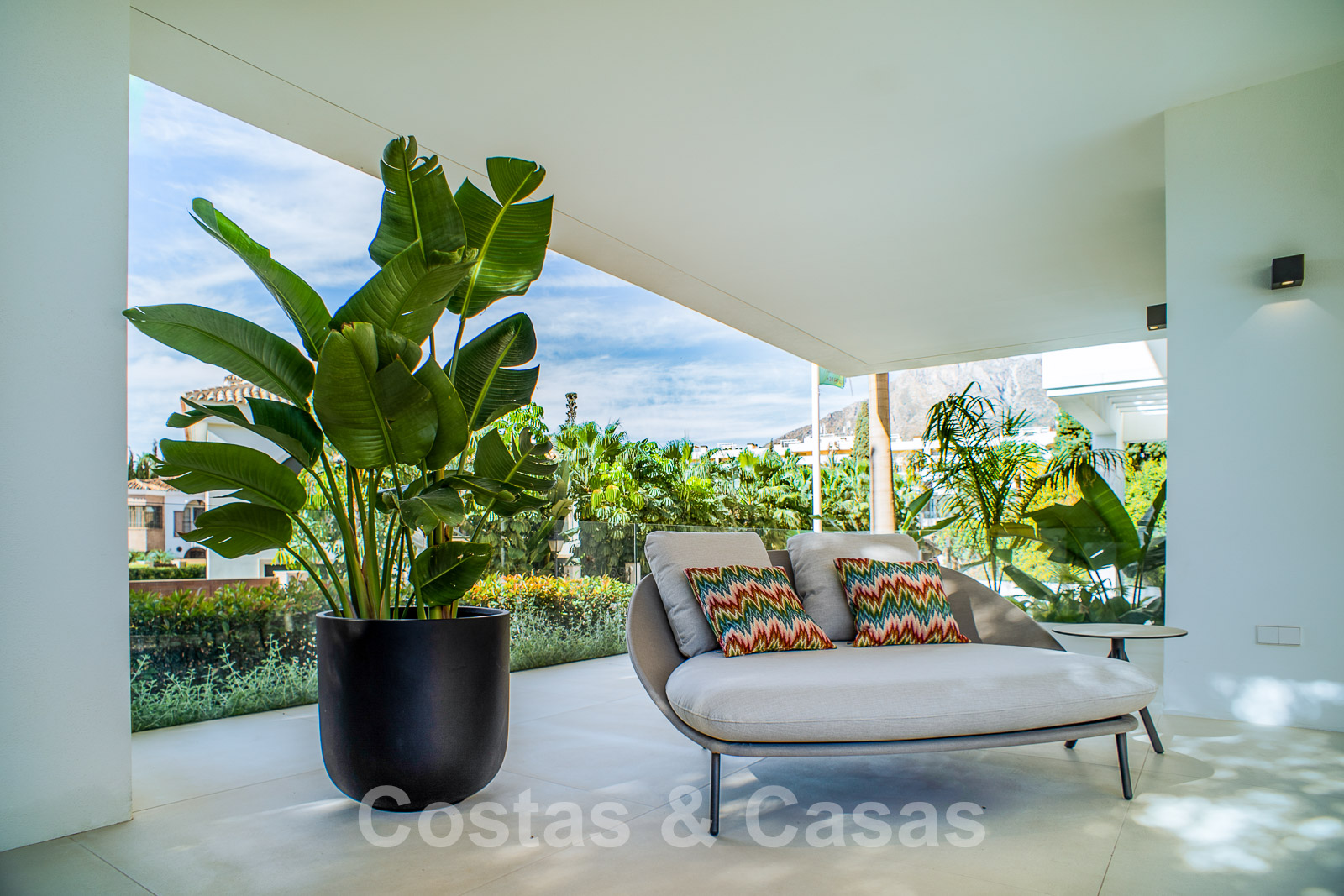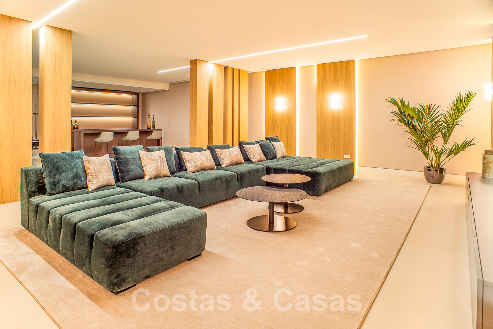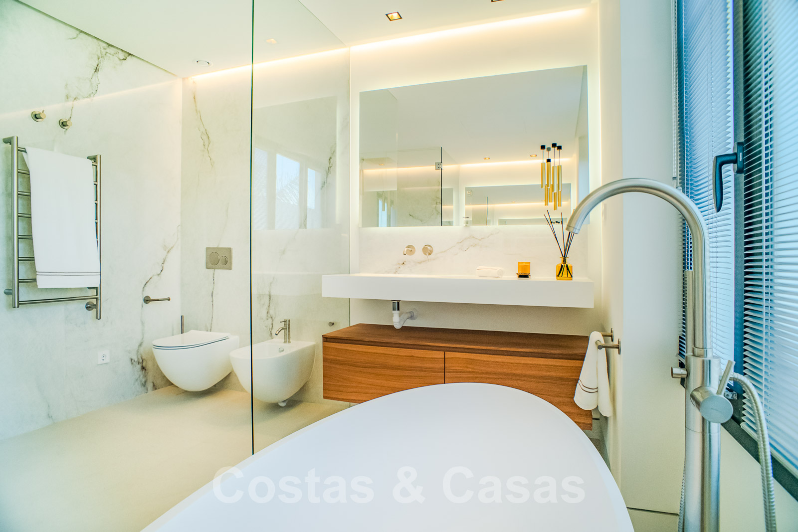 Toplocatie, moderne luxe villa te koop in een gerenommeerde urbanisatie aan het strand op de Golden Mile in Marbella. Instapklaar.