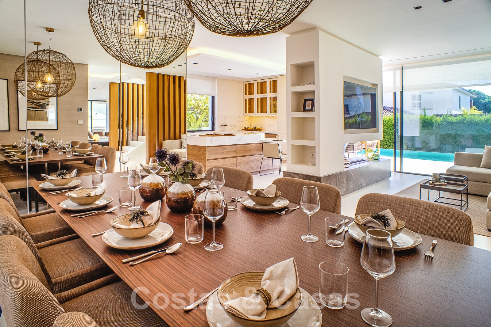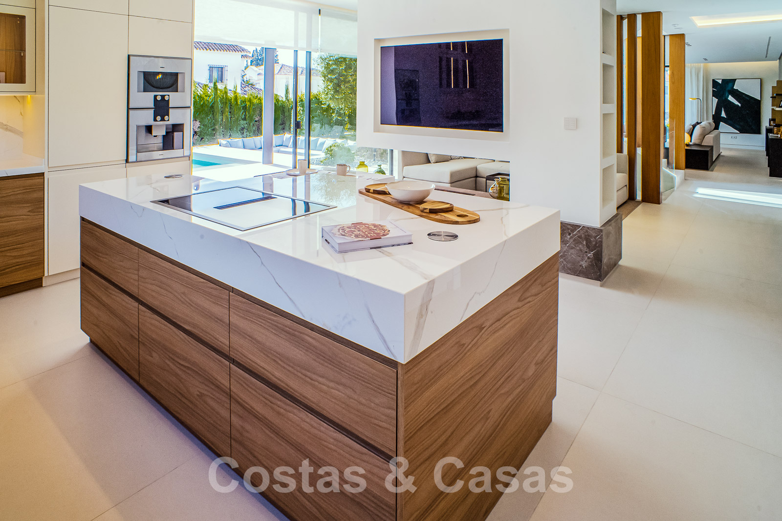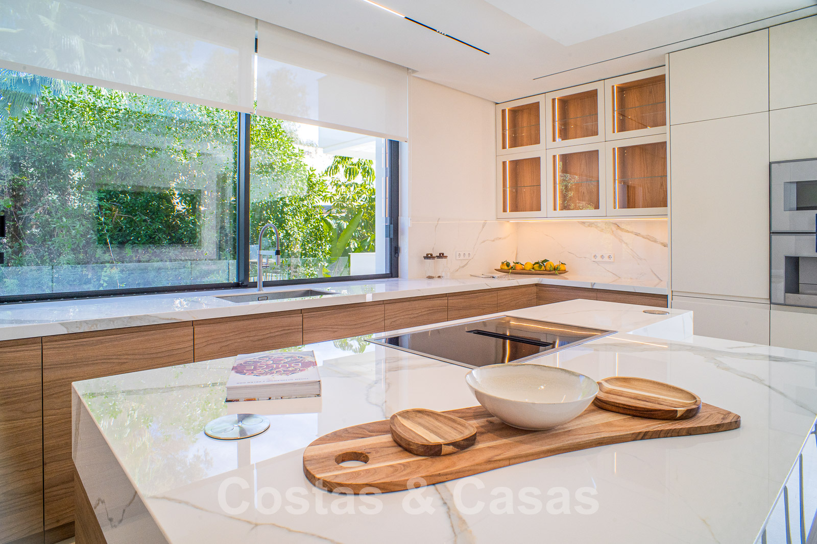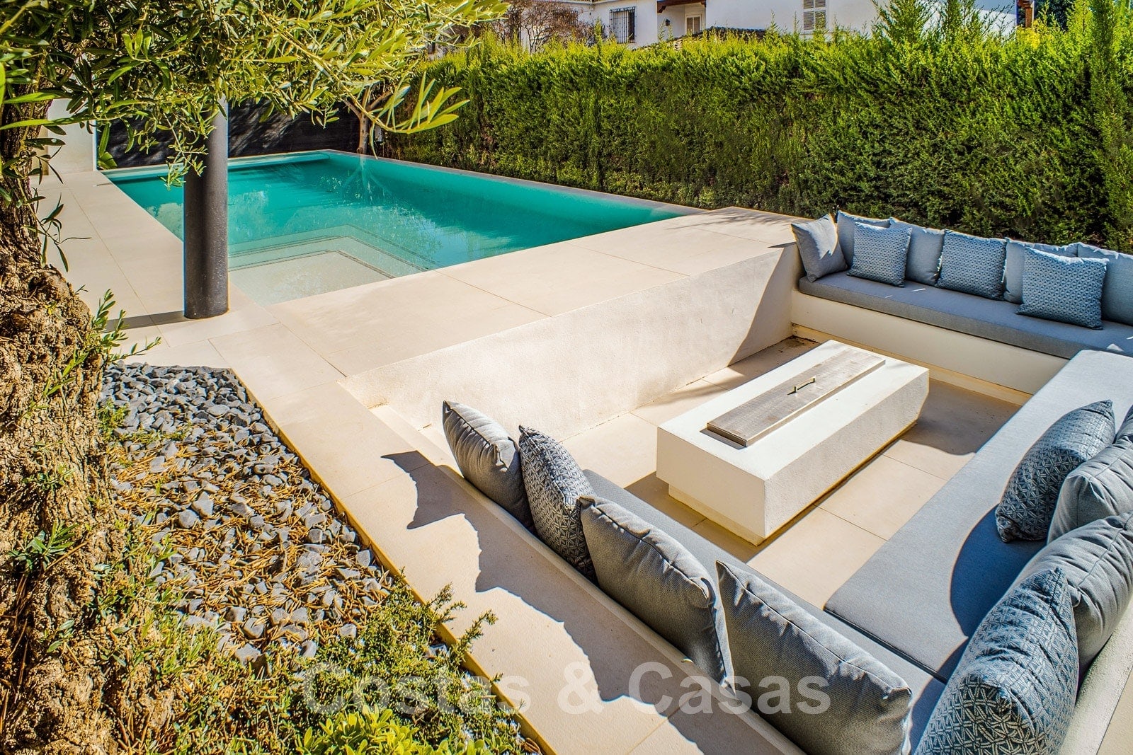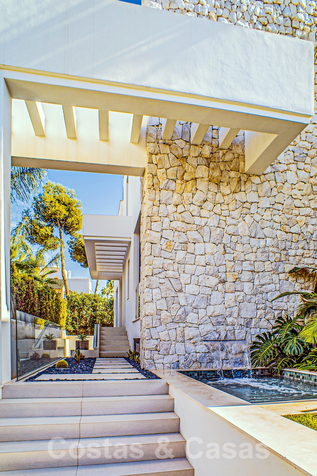 Toplocatie, moderne luxe villa te koop in een gerenommeerde urbanisatie aan het strand op de Golden Mile in Marbella. Instapklaar.