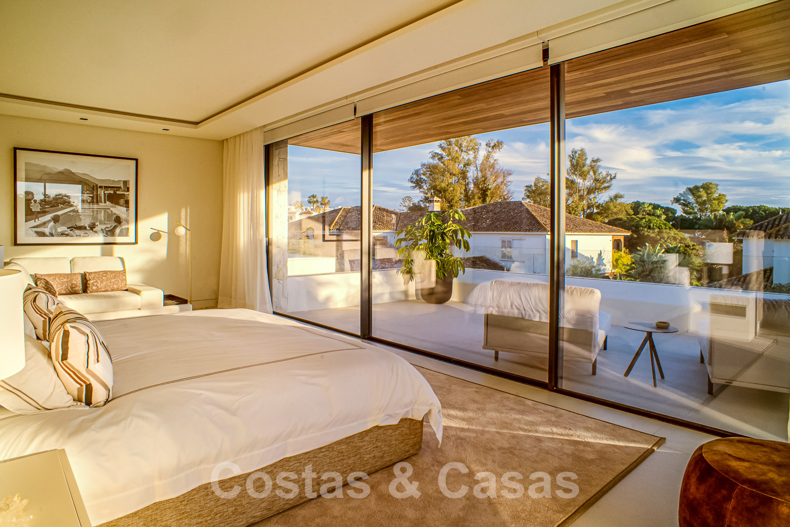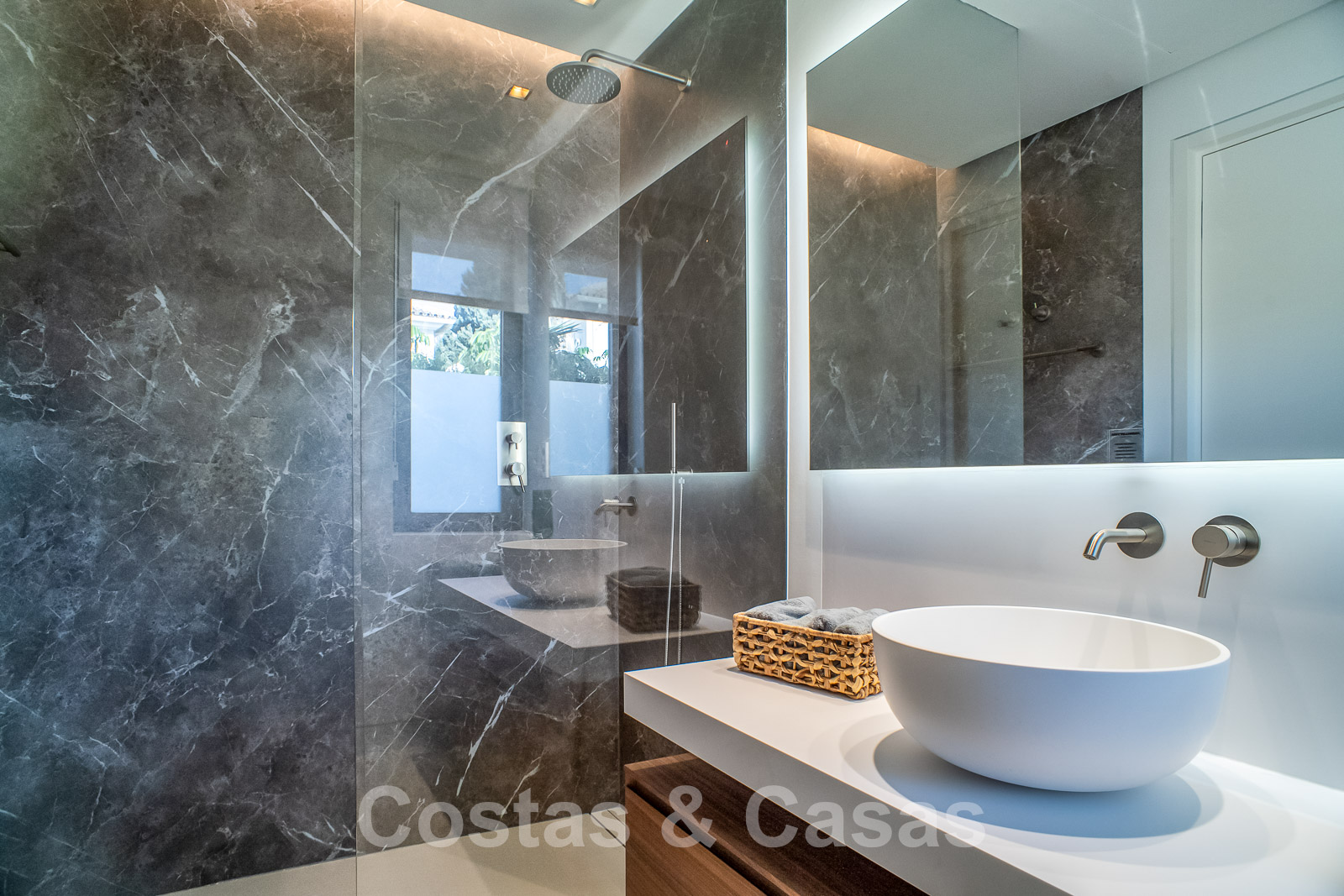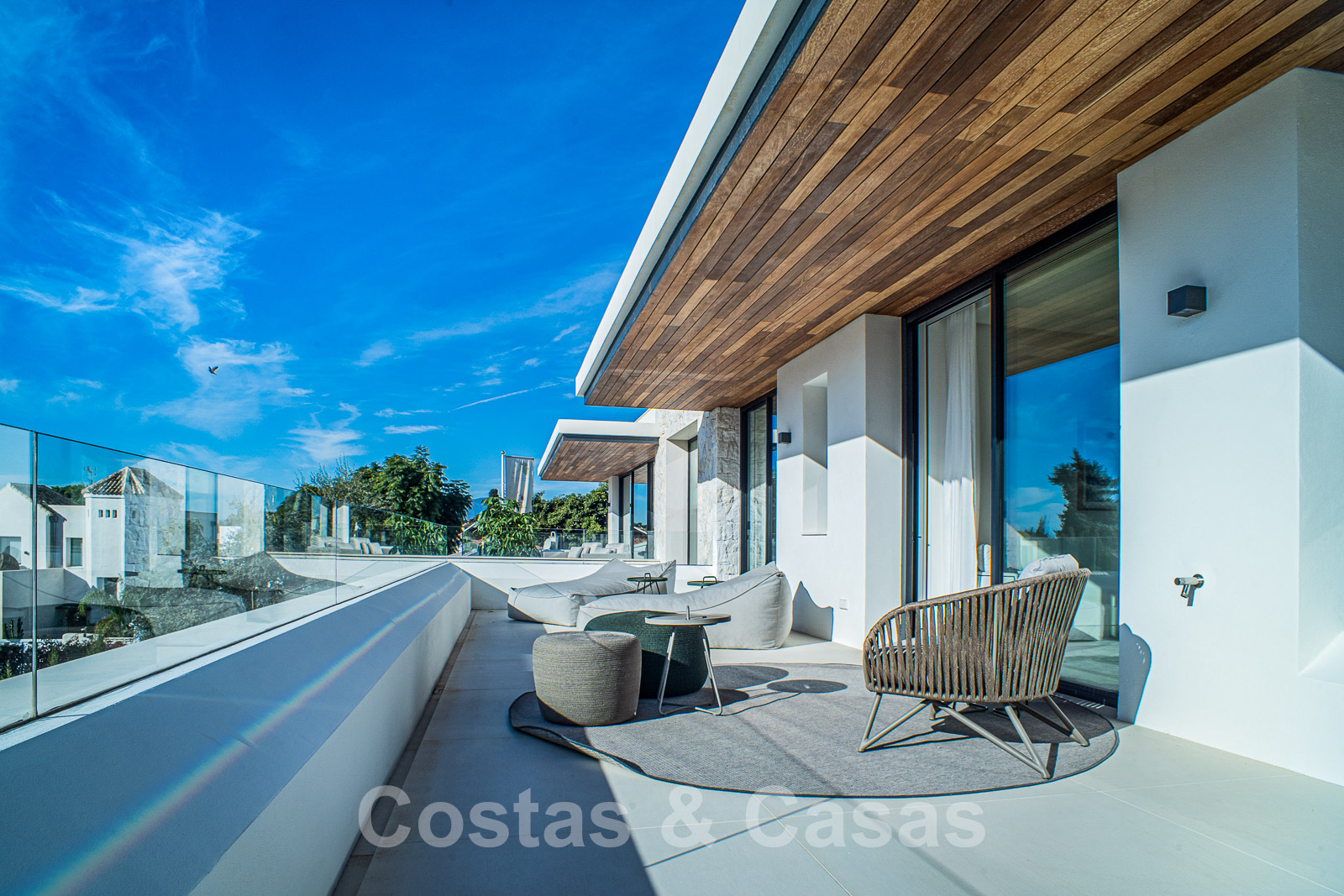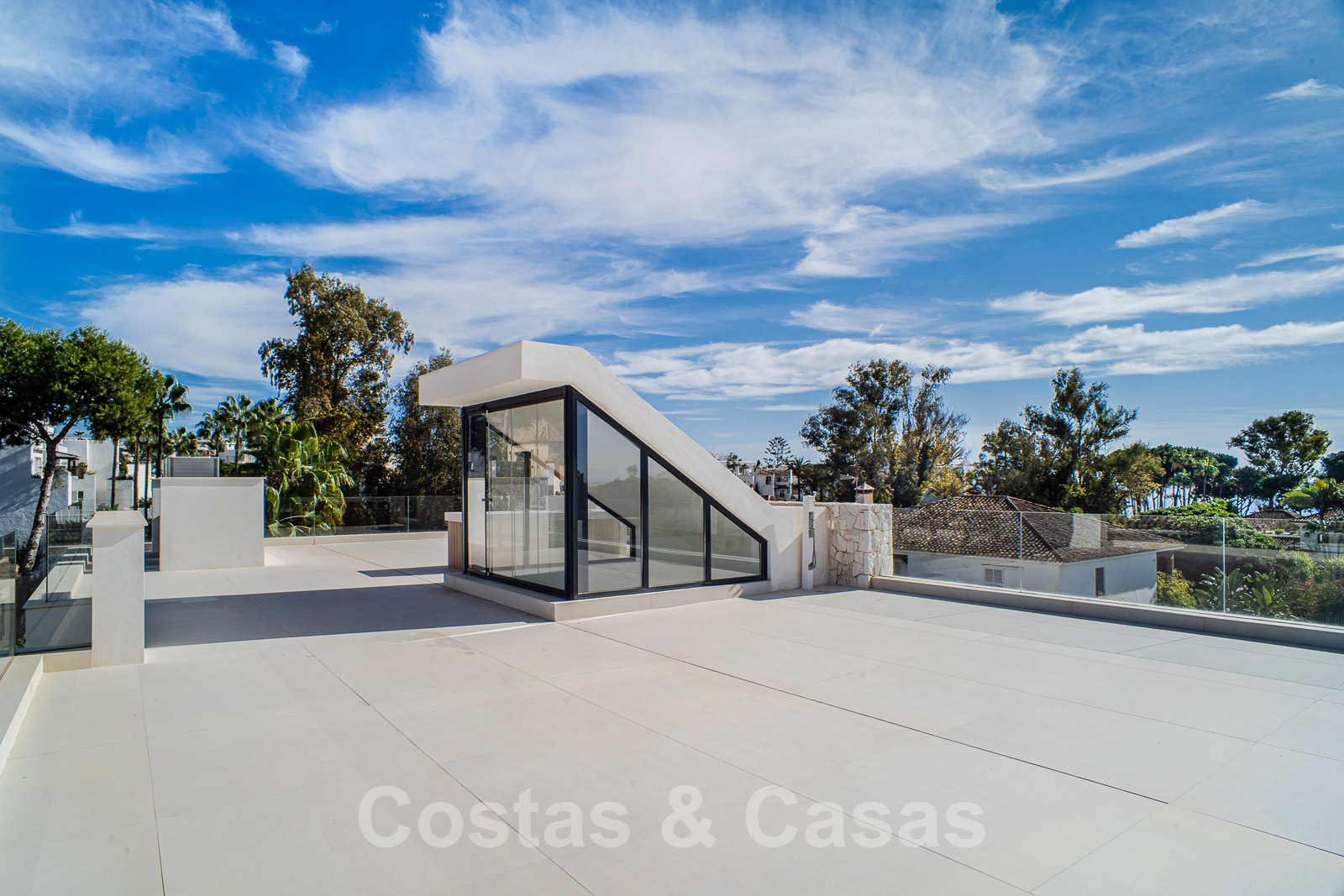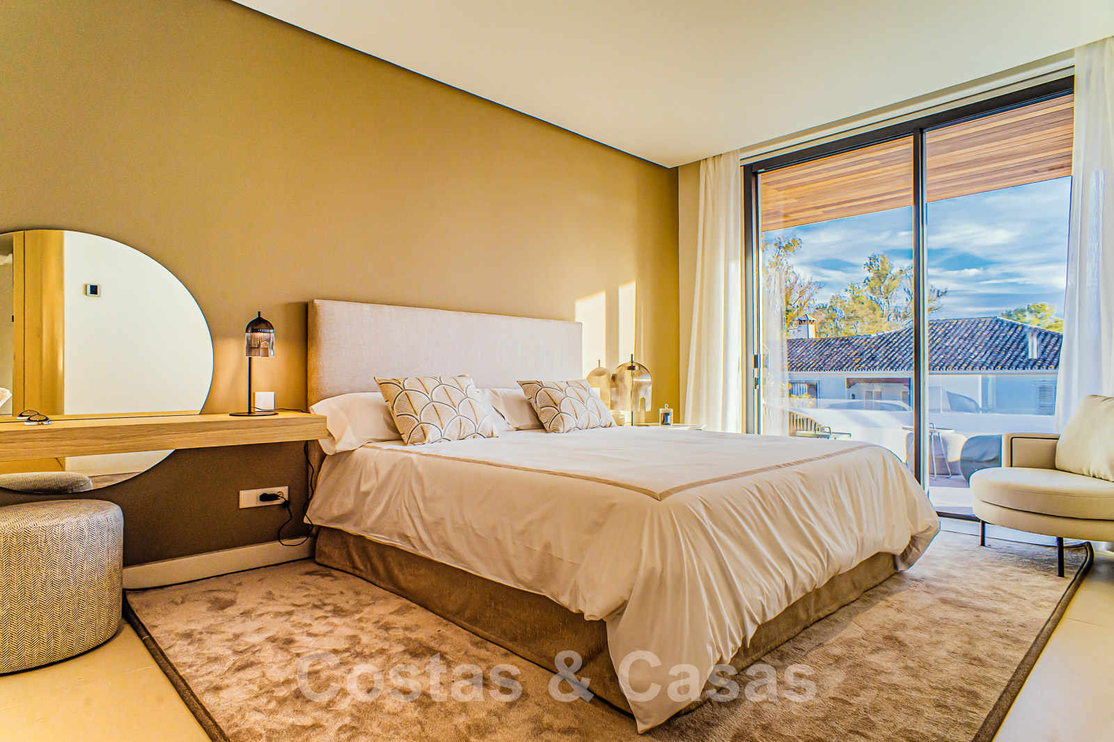 Toplocatie, moderne luxe villa te koop in een gerenommeerde urbanisatie aan het strand op de Golden Mile in Marbella. Instapklaar.