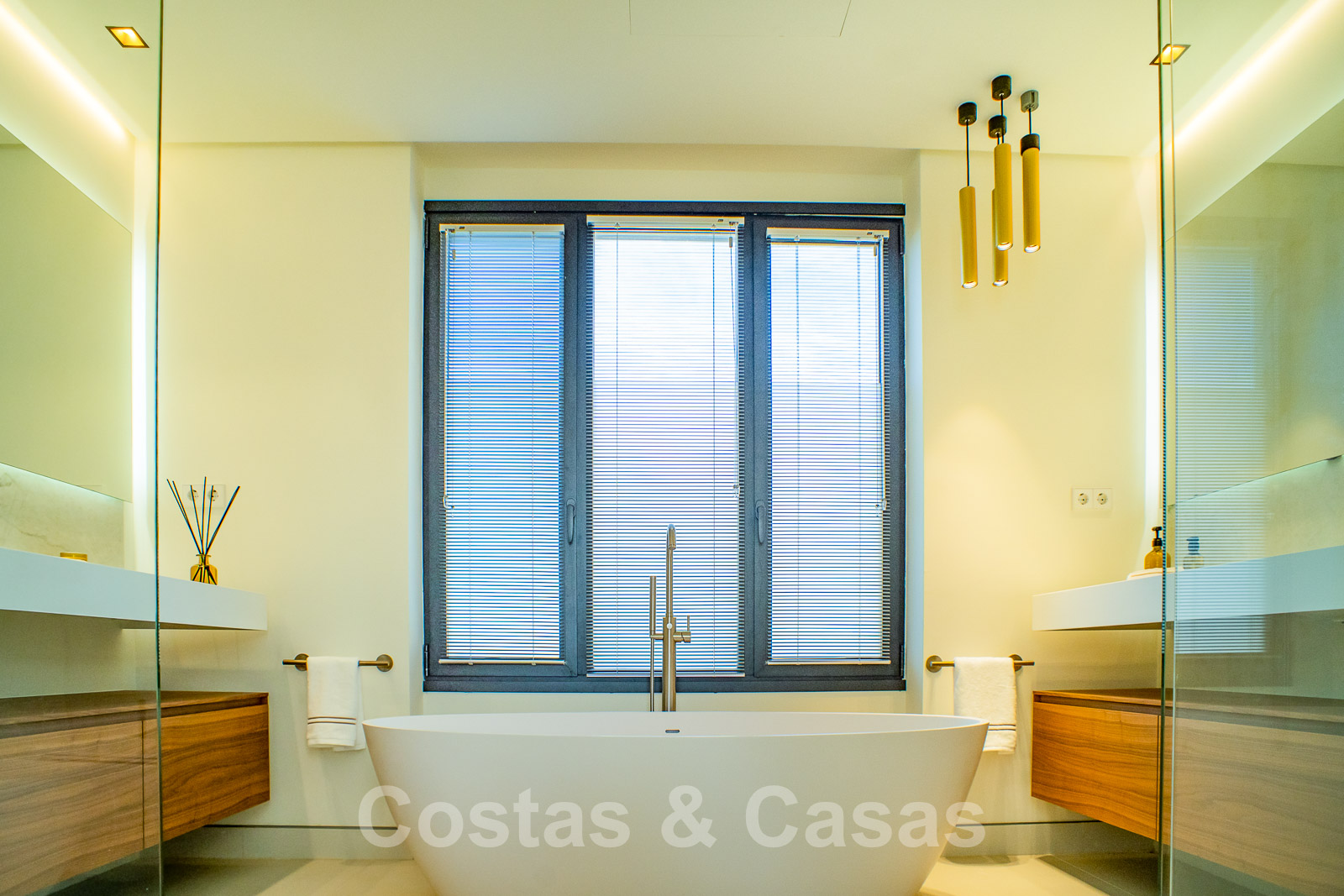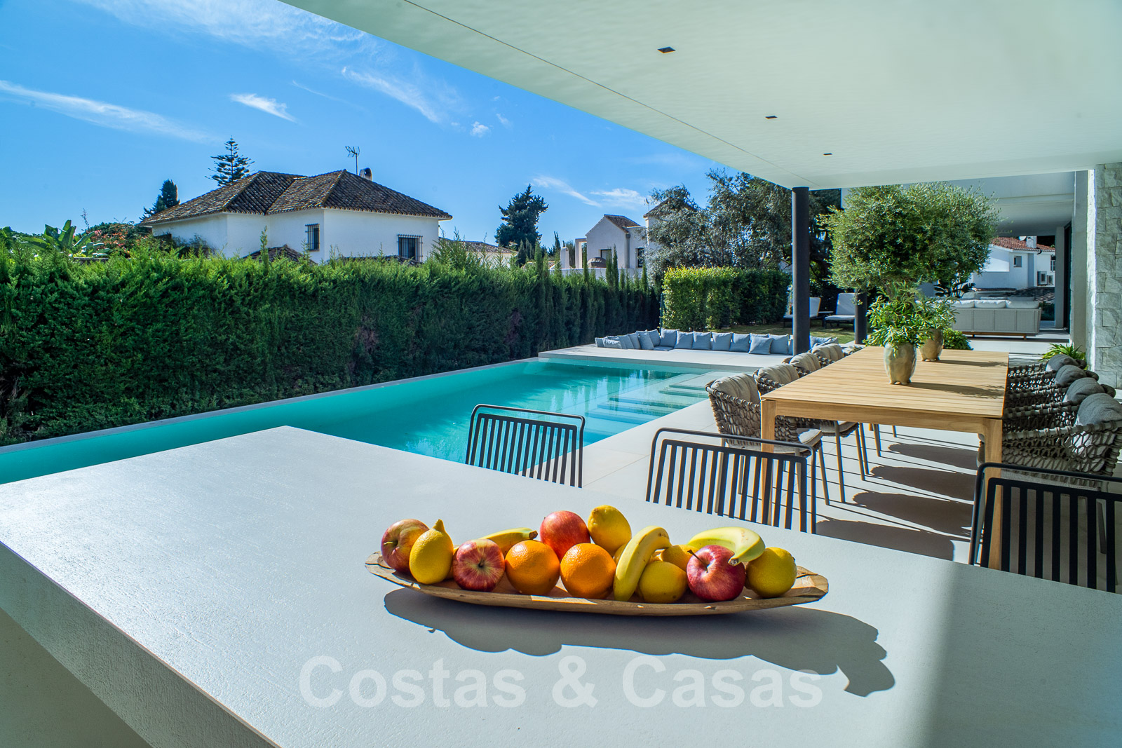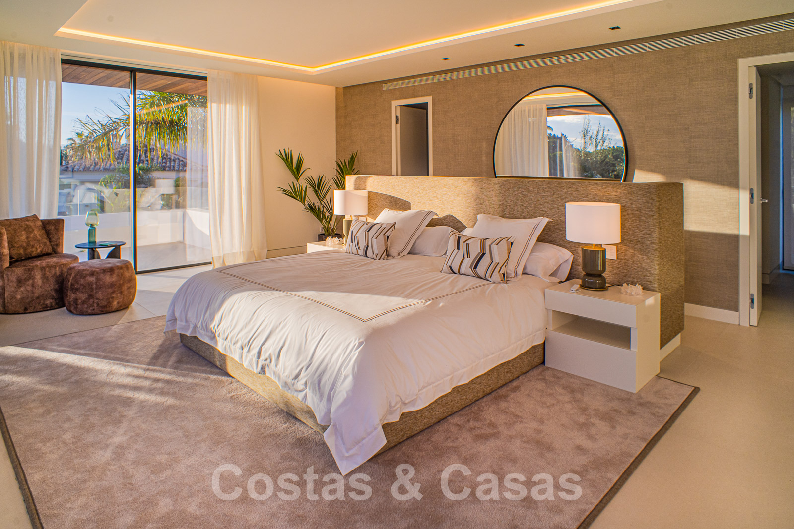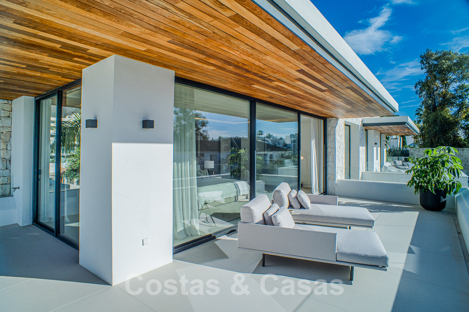 Toplocatie, moderne luxe villa te koop in een gerenommeerde urbanisatie aan het strand op de Golden Mile in Marbella. Instapklaar.