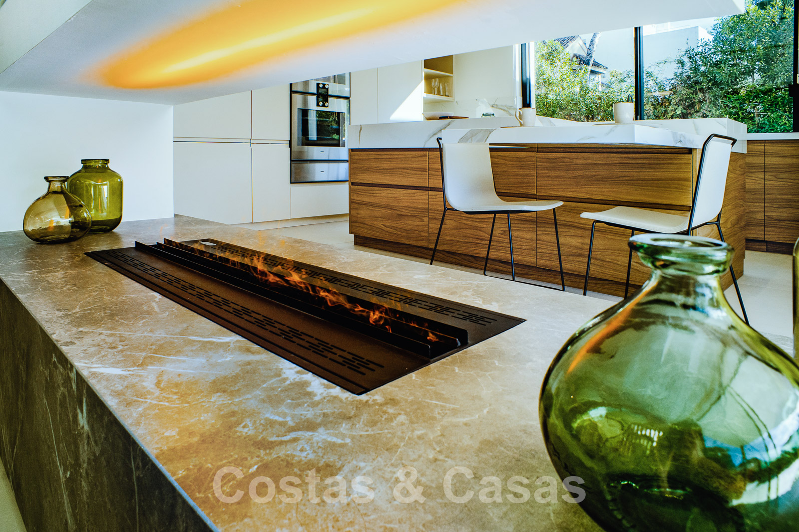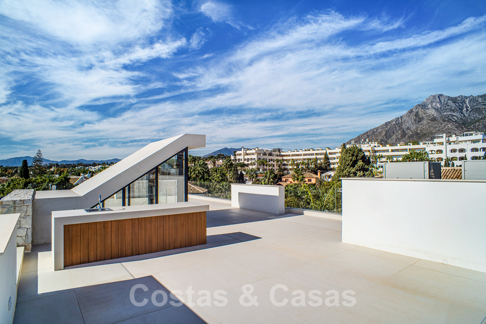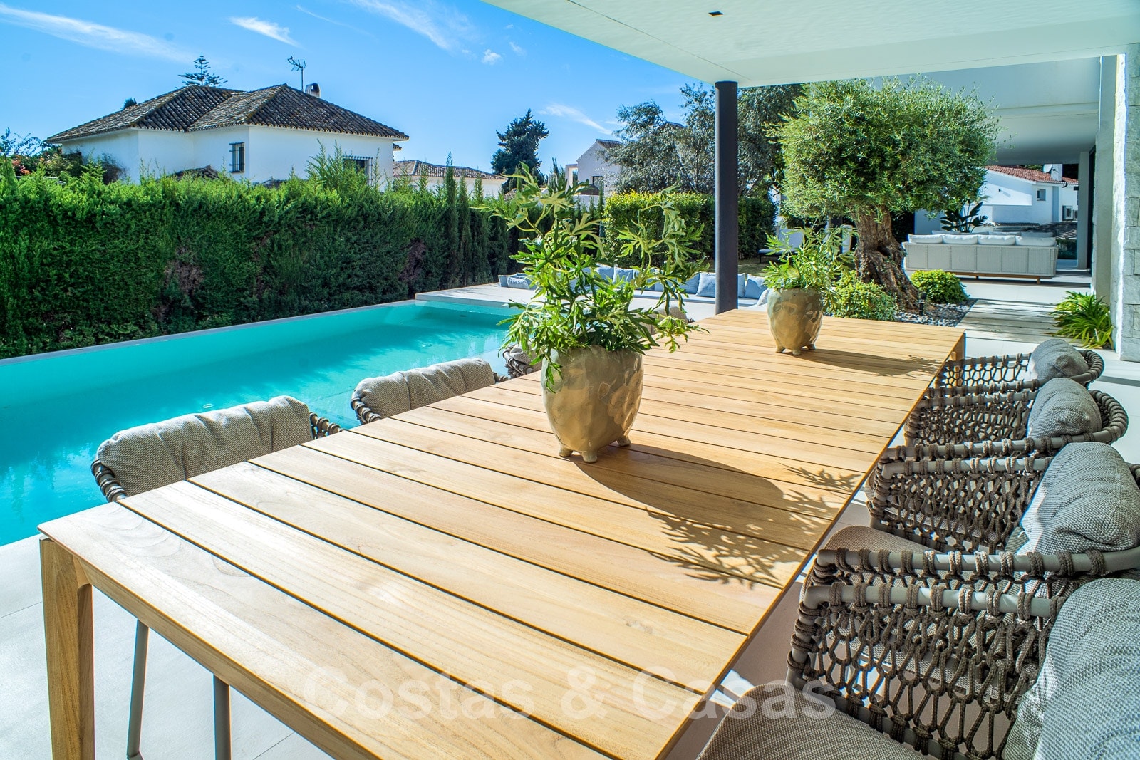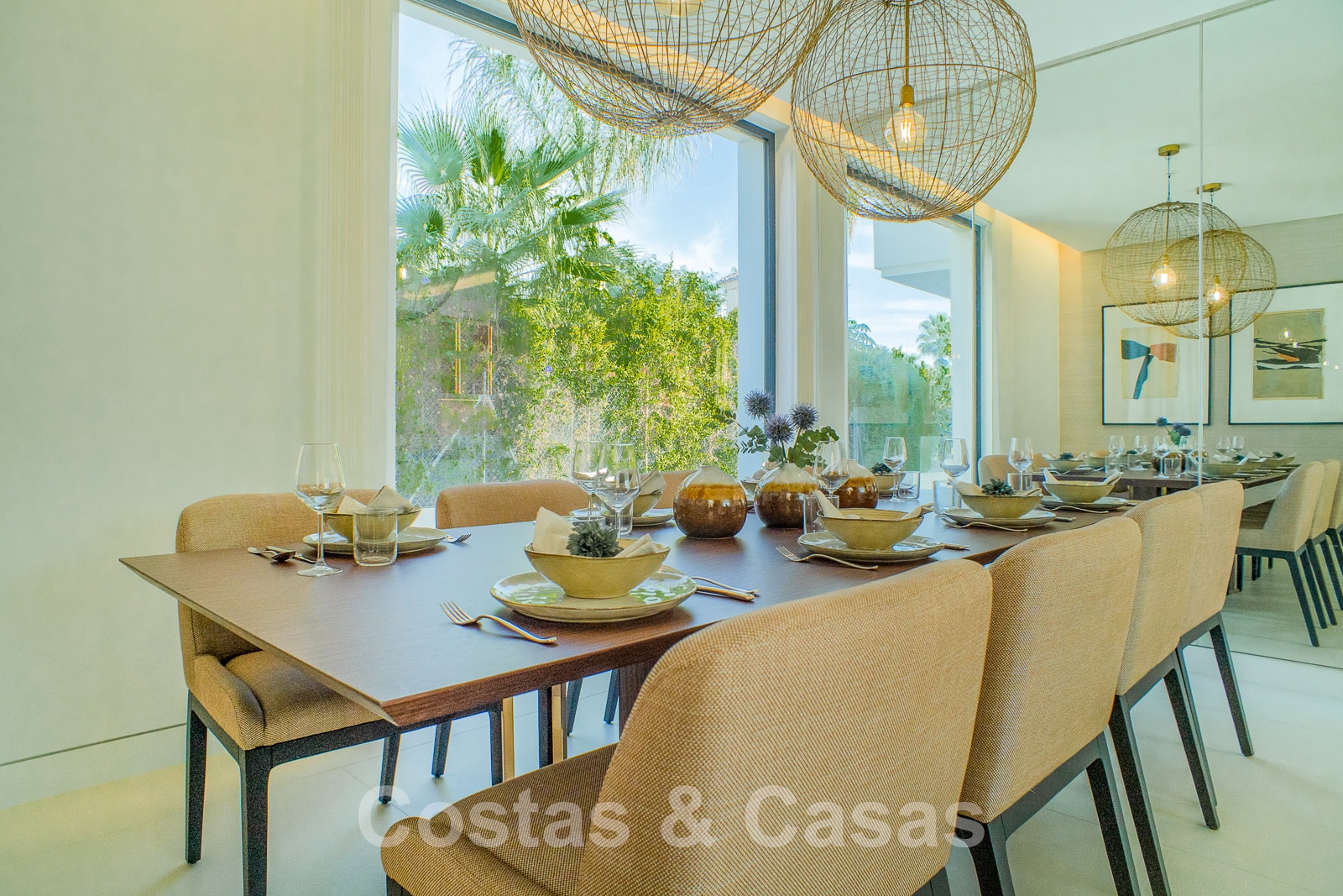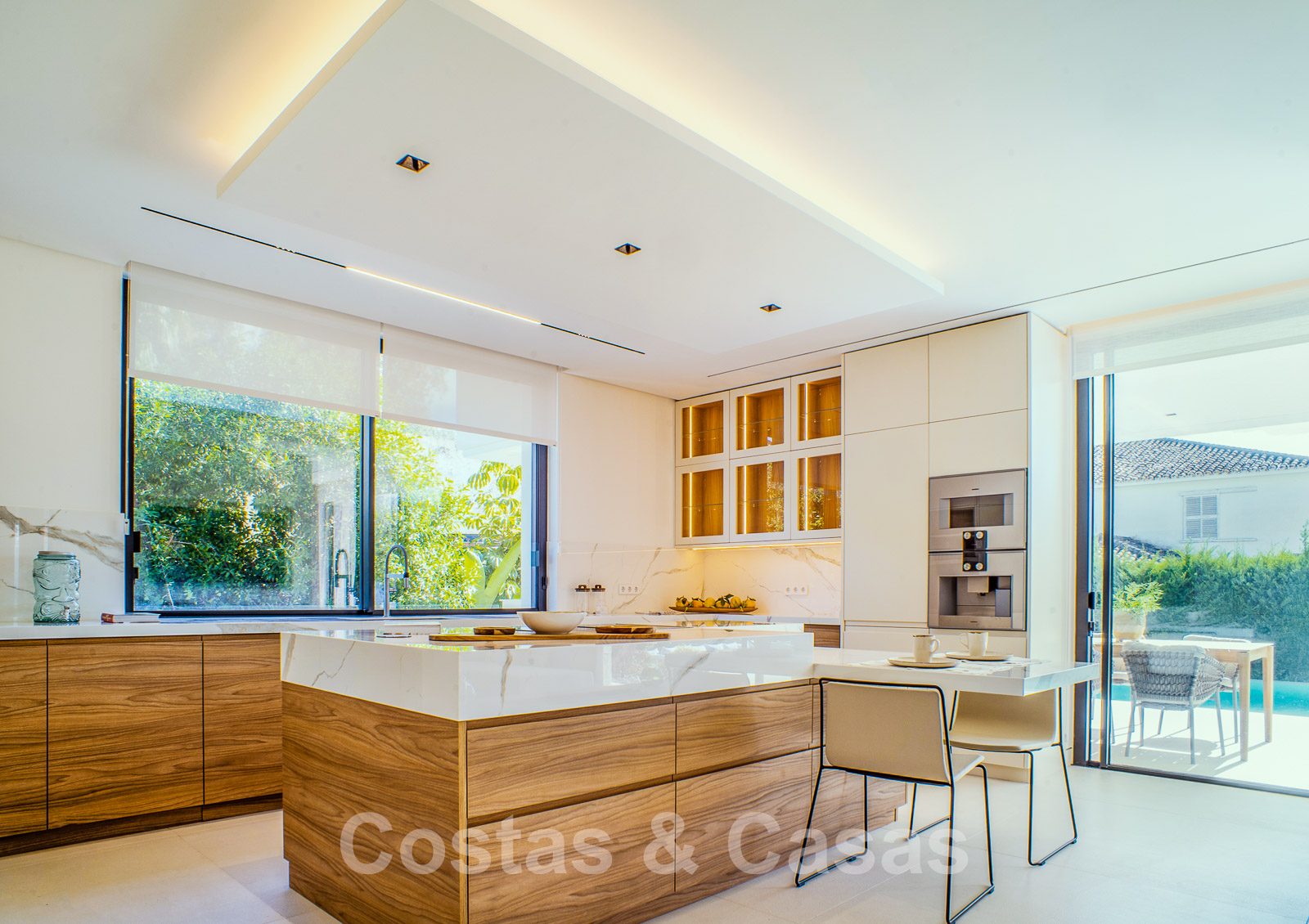 Toplocatie, moderne luxe villa te koop in een gerenommeerde urbanisatie aan het strand op de Golden Mile in Marbella. Instapklaar.