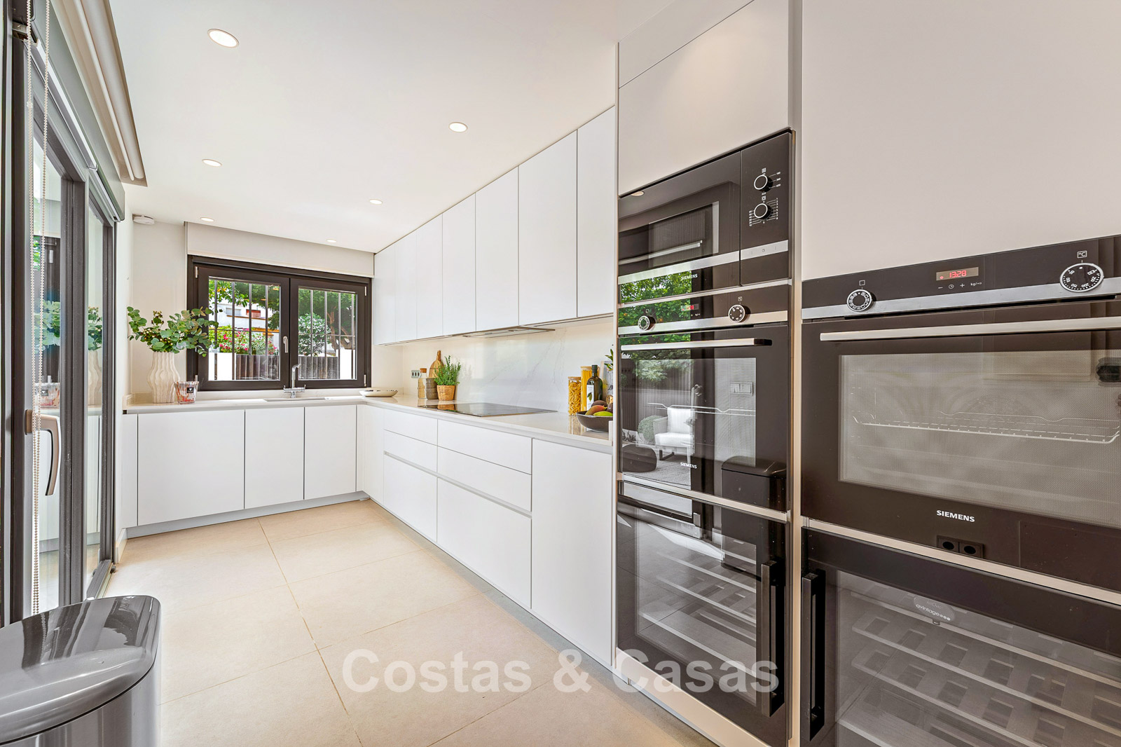 Praktisch ingerichte keuken met hoogwaardige Siemens toestellen en een ontbijtbar.