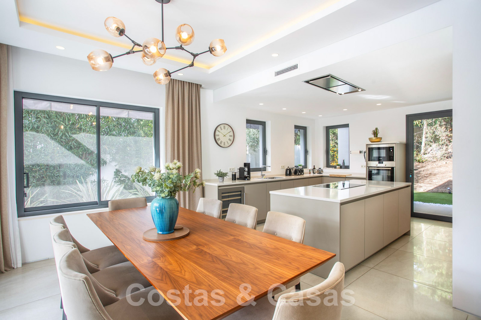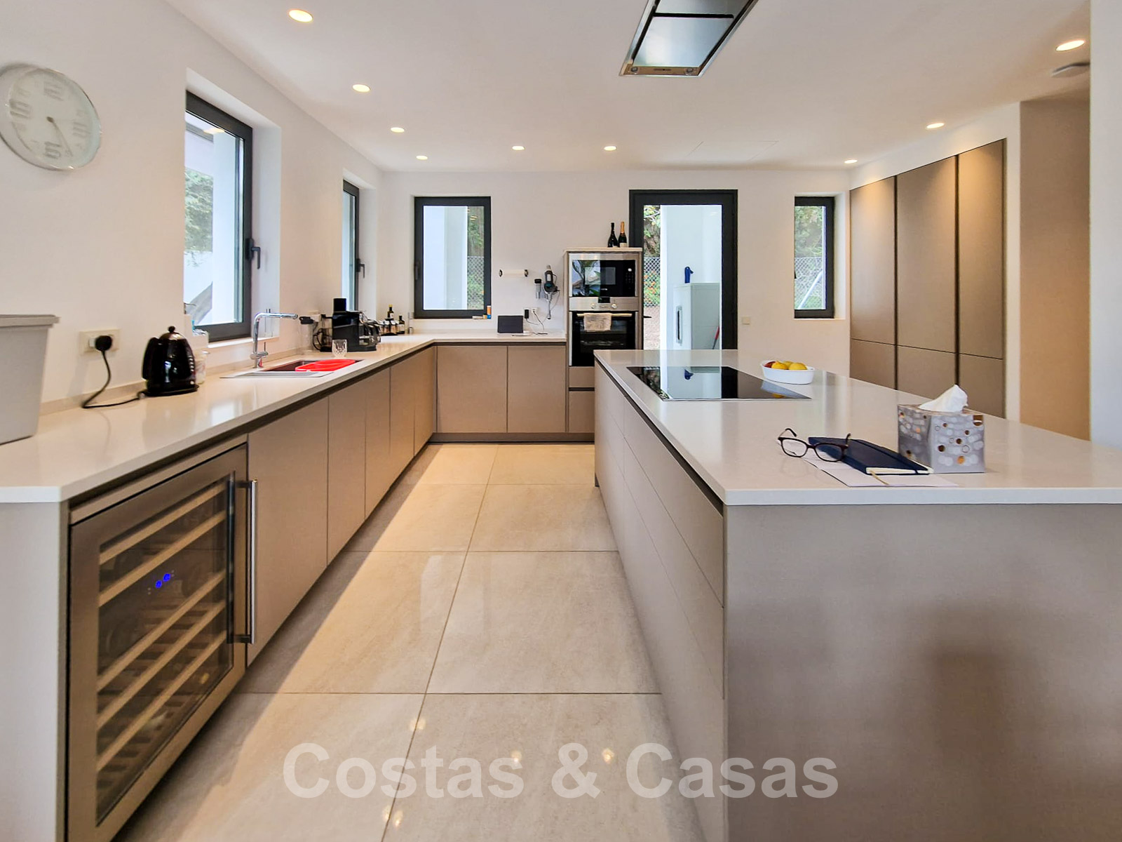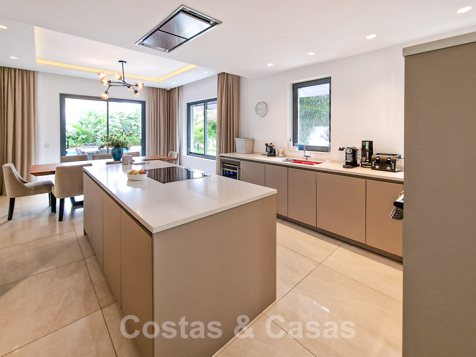 • Open keuken volledig geëquipeerd met hoogwaardige toestellen en kookeiland.