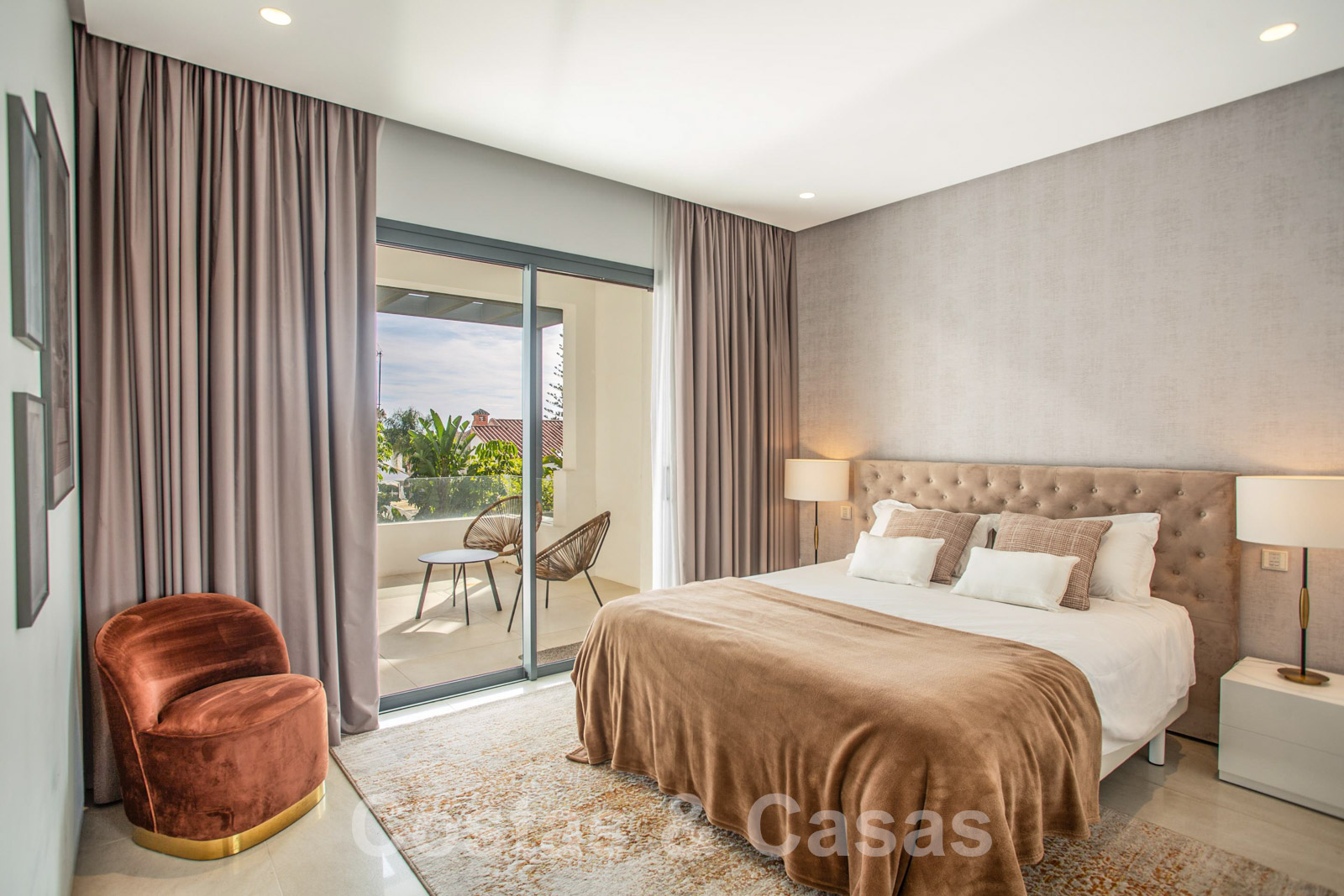 • De grote master suite is voorzien van een dressingruimte, een open haard en een zuidelijkgericht privéterras.