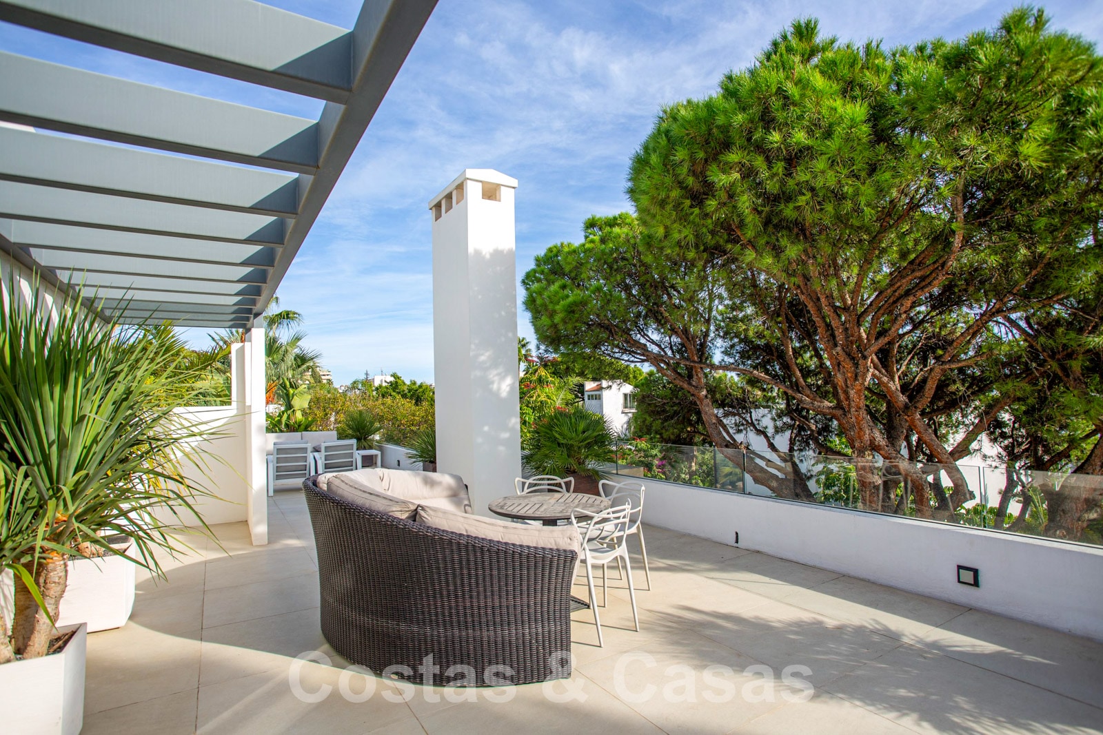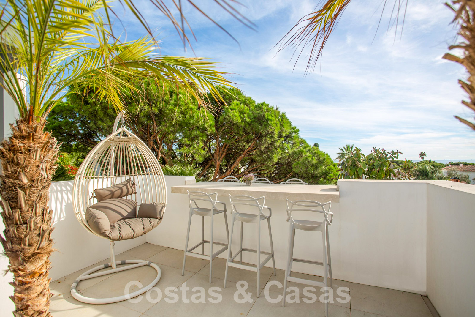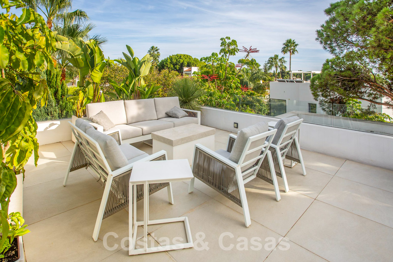 • Uitgestrekt solarium met diverse lounge area’s, een bar en panoramisch uitzicht op de La Concha berg en de Middellandse Zee.