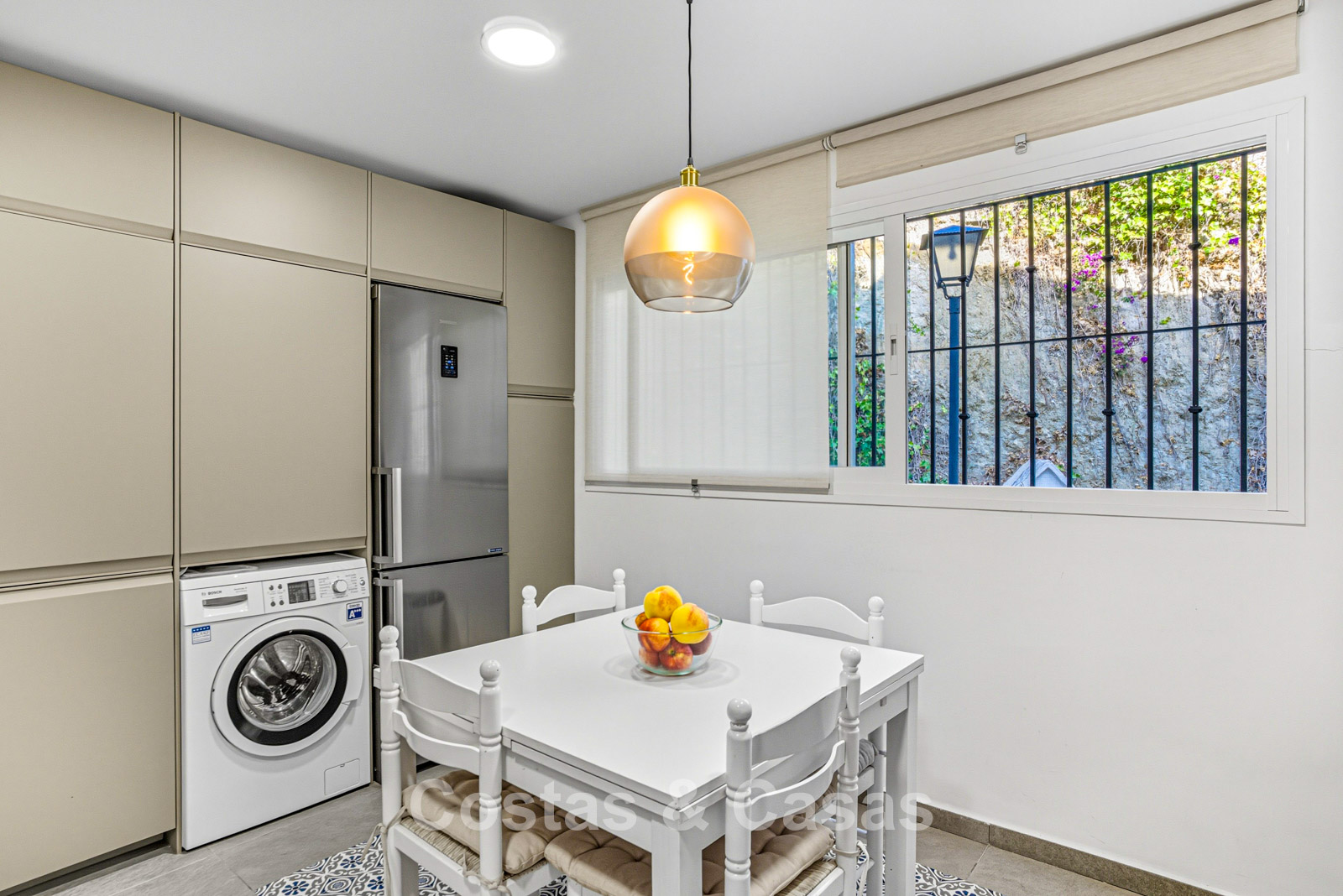 Deels gemoderniseerde rijwoning te koop aan de Golden Mile vlakbij Marbella centrum
