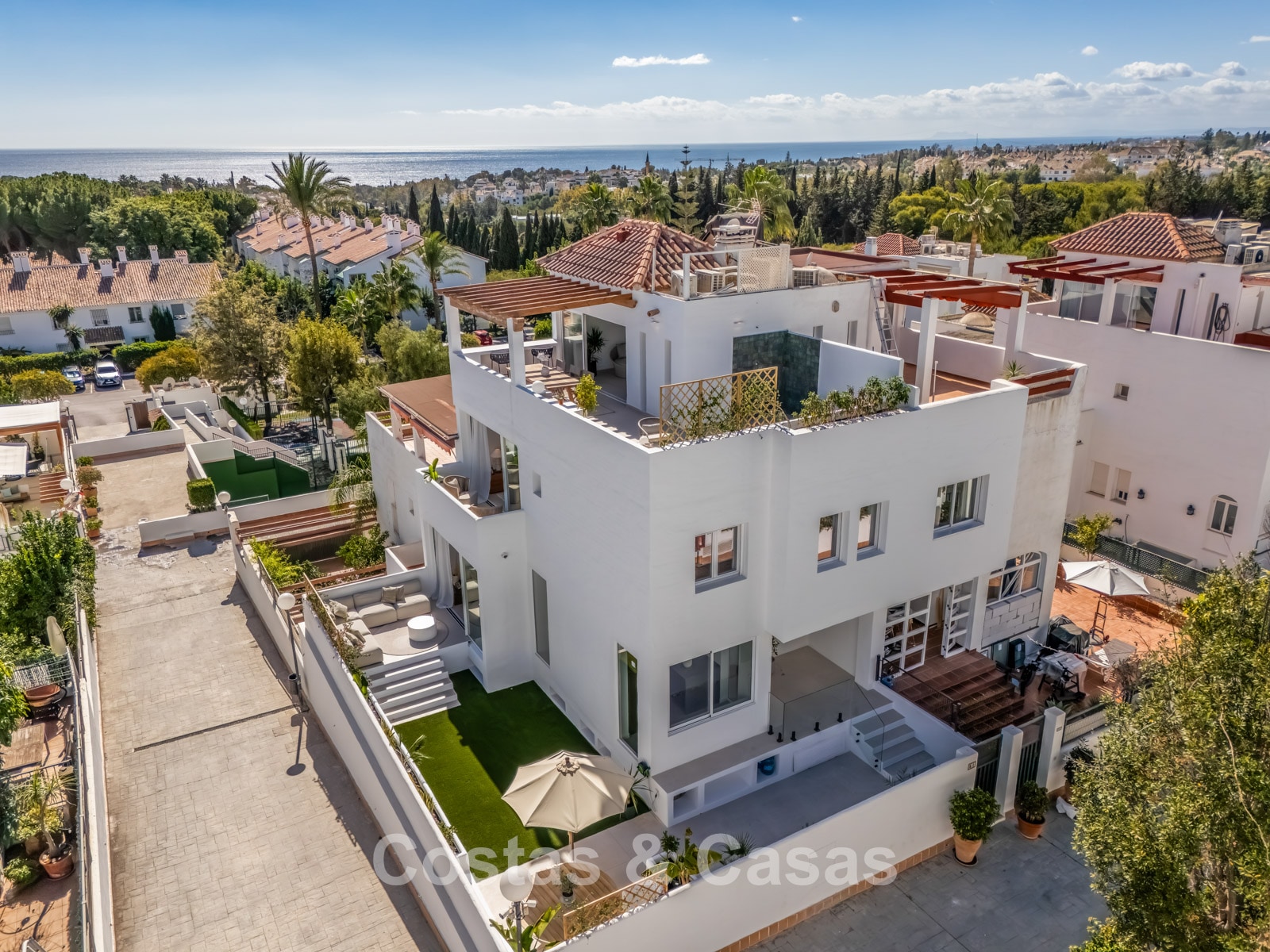 1.300.000 €Energie efficiënte, hedendaagse villa te koop met zeezicht in een begeerde woongemeenschap nabij Rio Real en Marbella stad