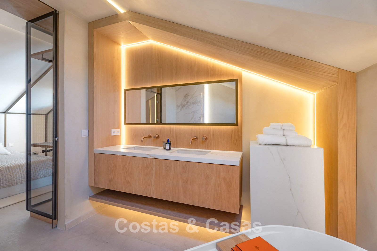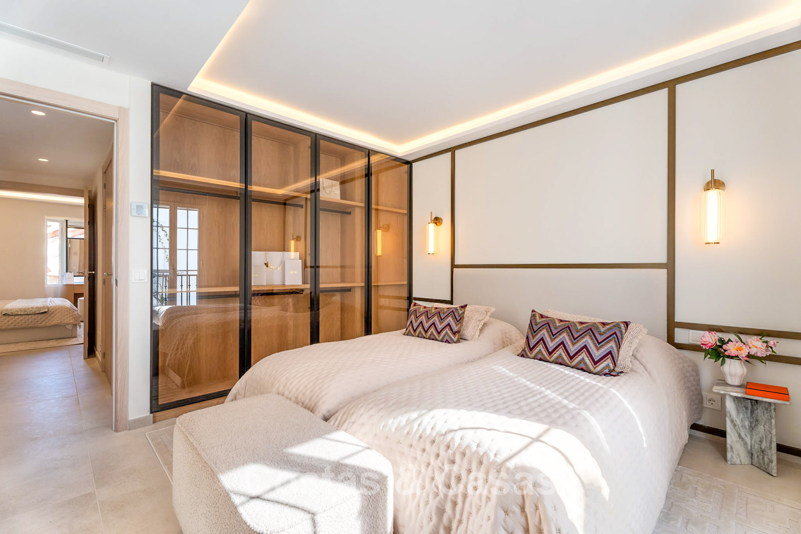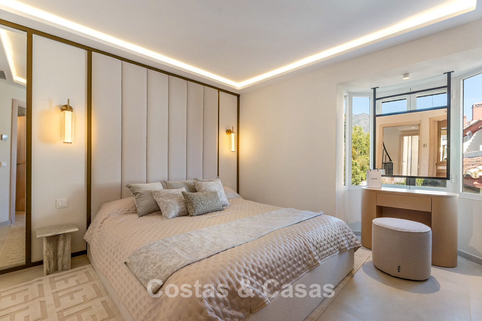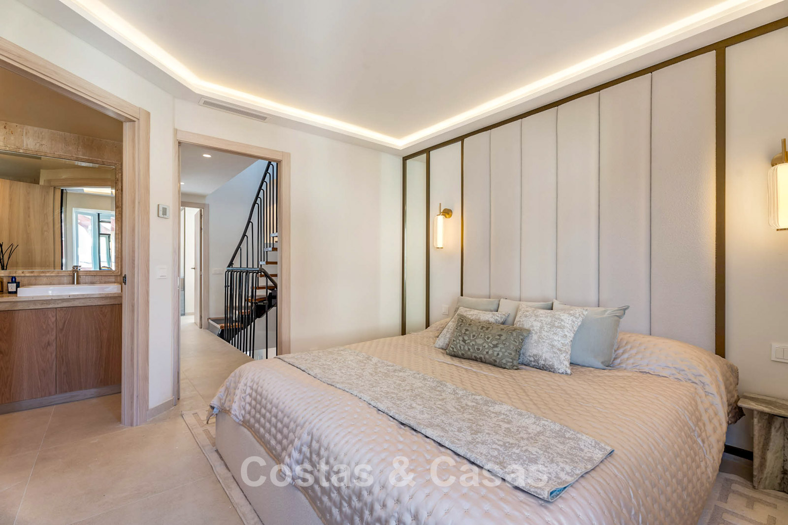 Bovendien geniet de master suite van directe toegang tot een privéterras met uitzicht op de iconische La Concha berg.