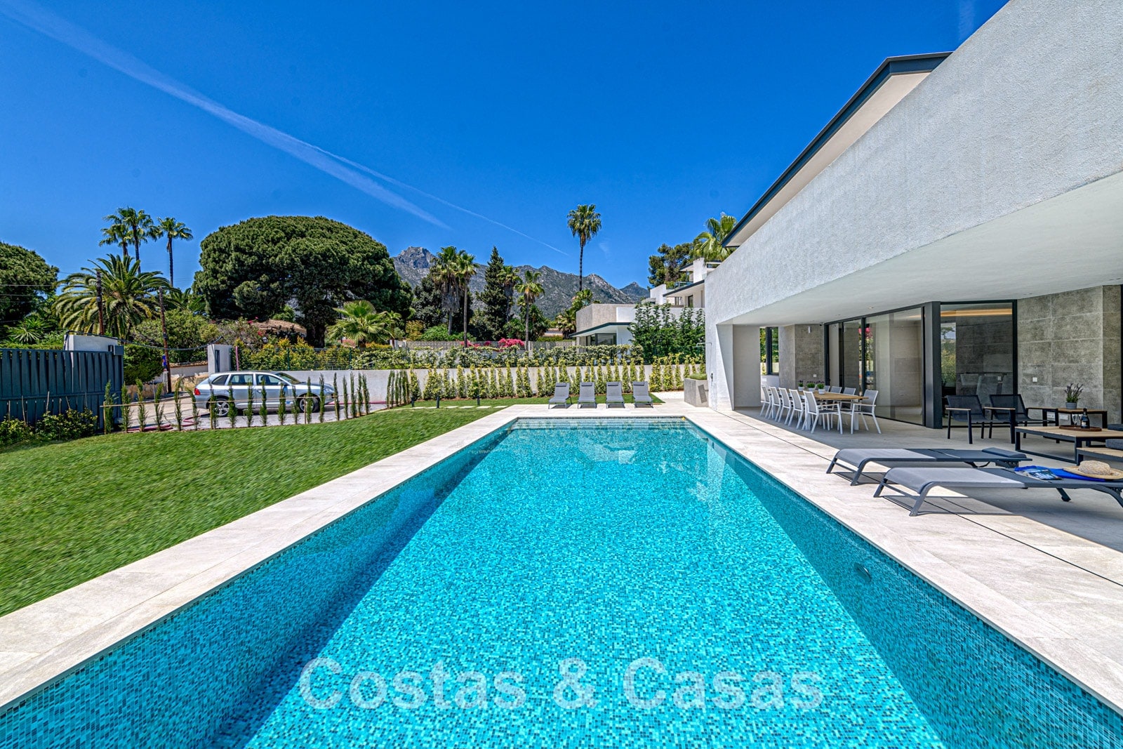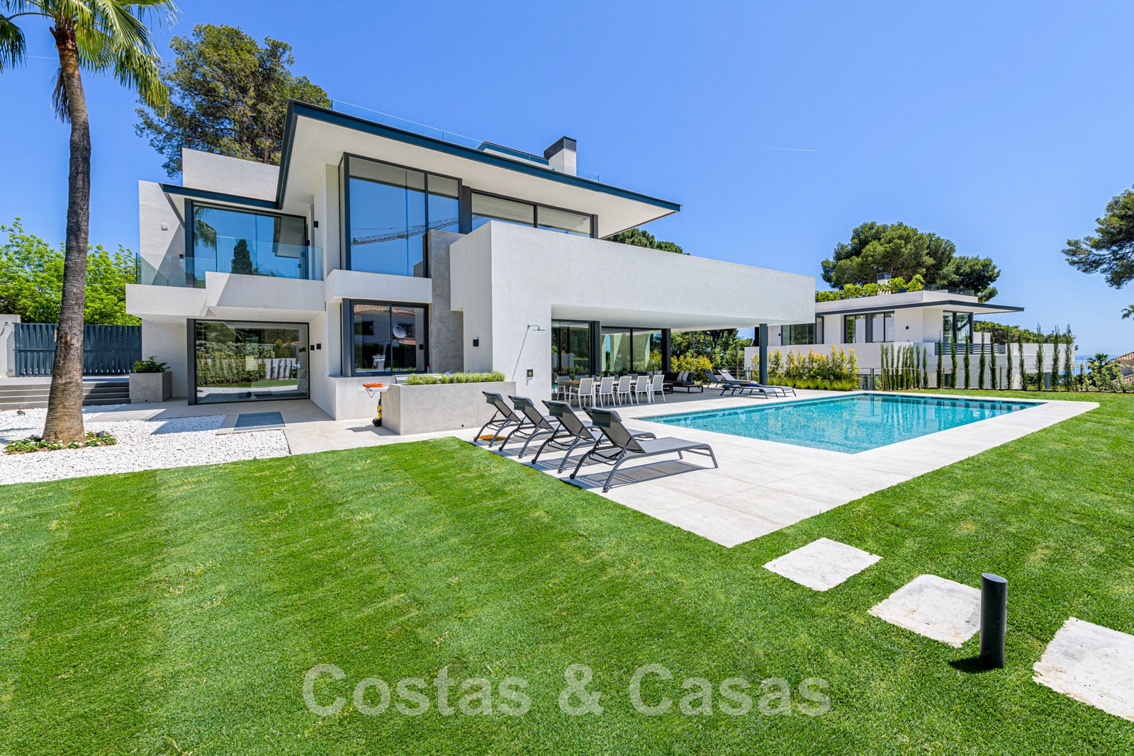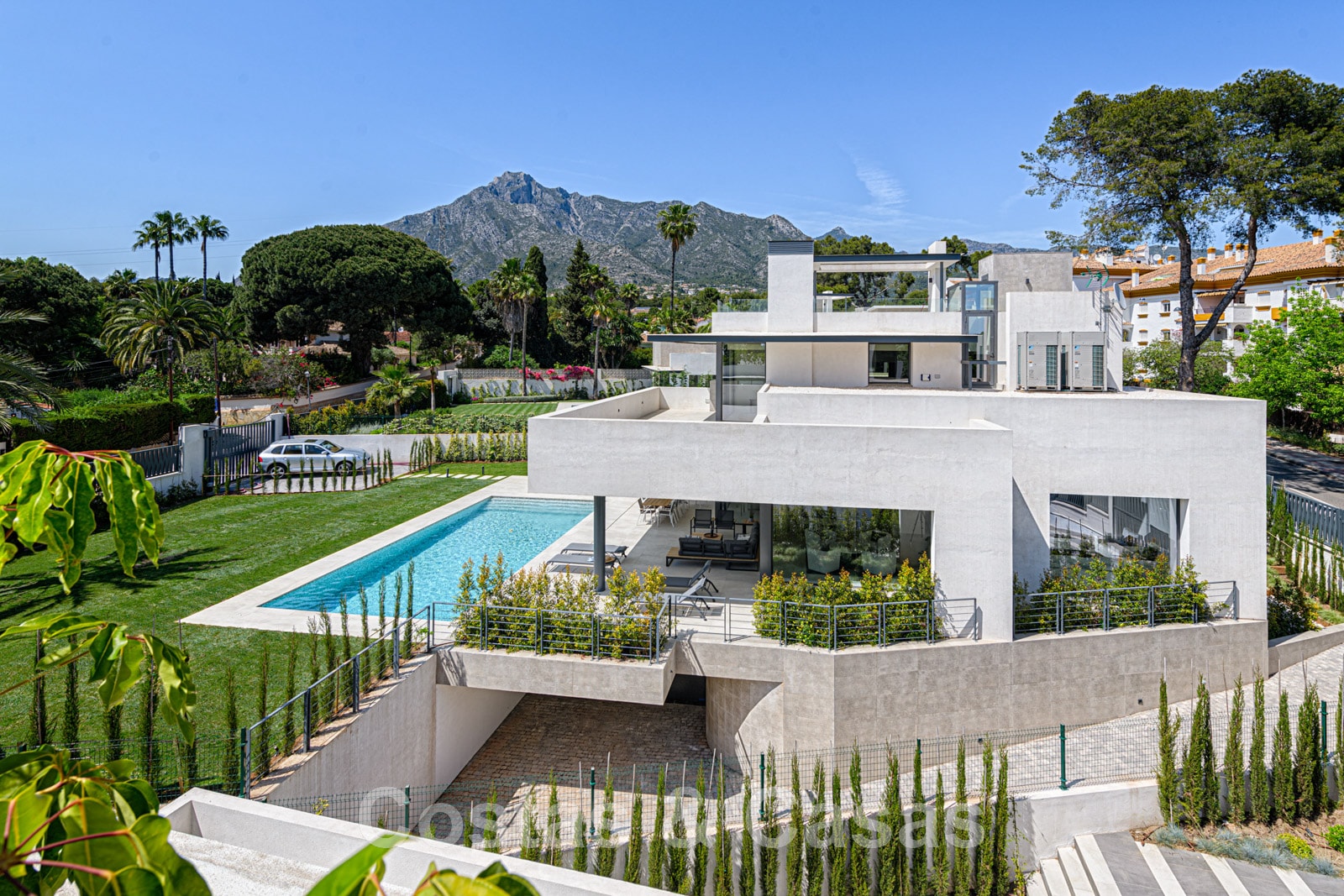 Hoogstaande, modernistische luxevilla te koop met berg- en zeezicht op de Golden Mile in Marbella