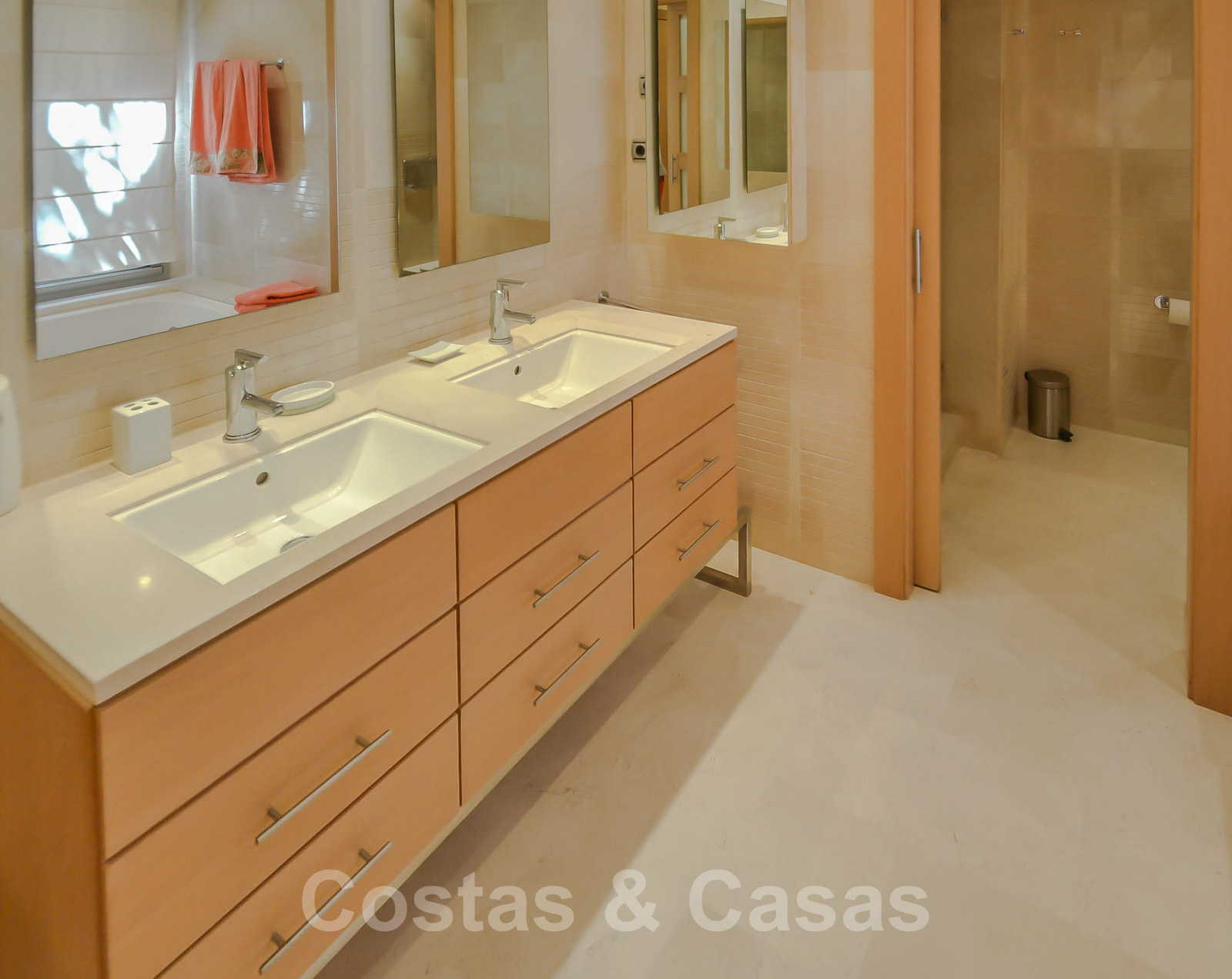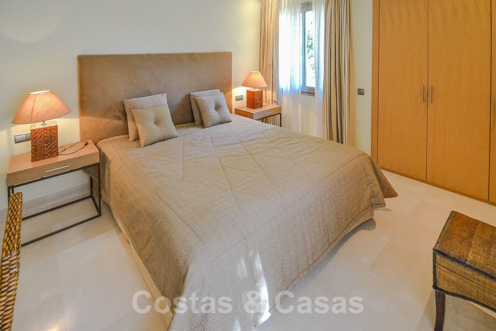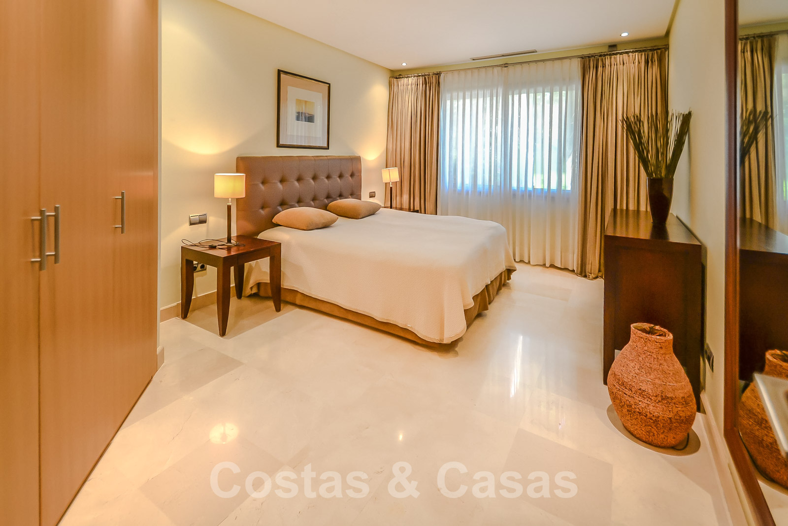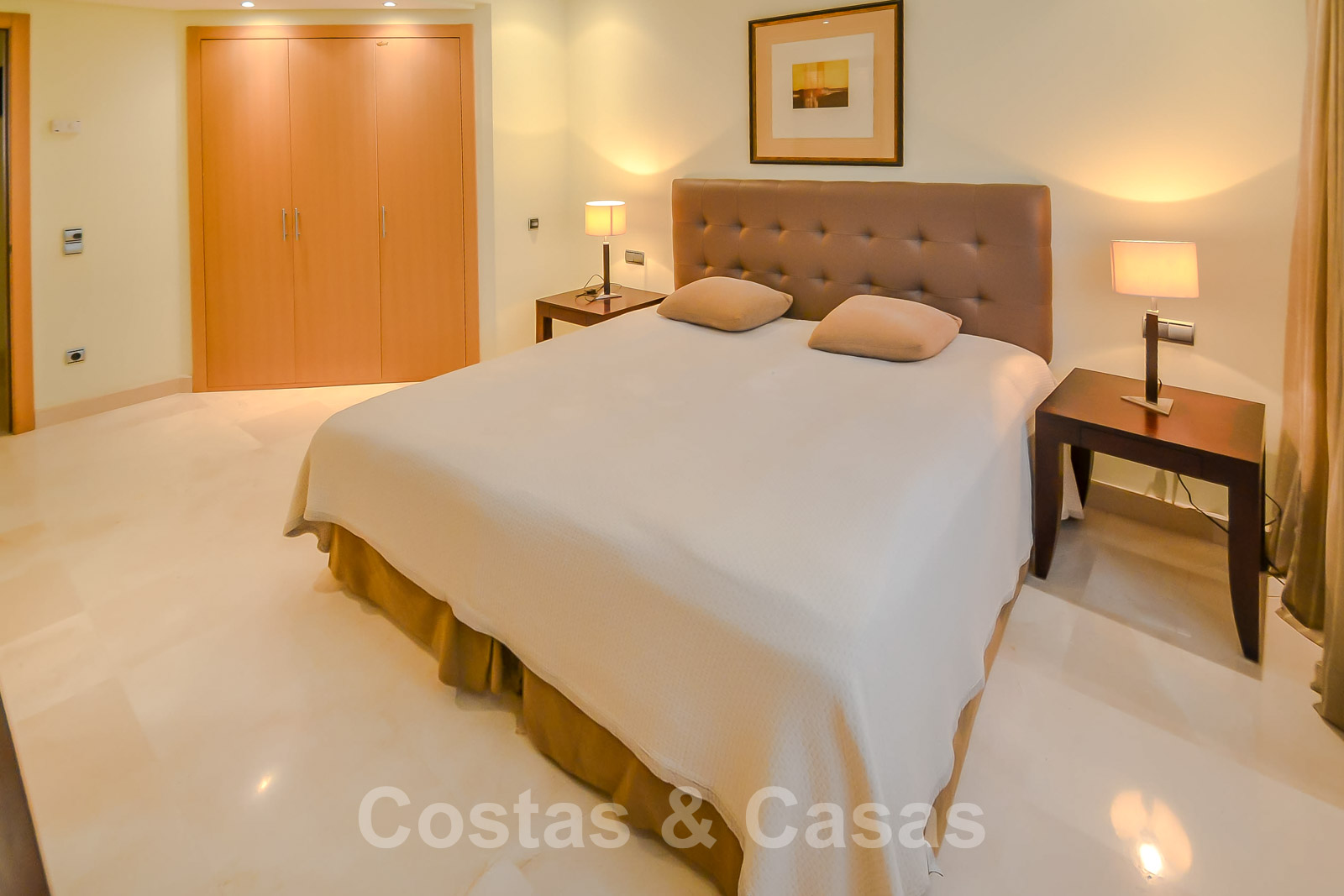 • Crème marmeren vloeren, vloerverwarming, airconditioning voor verkoeling en verwarming, domotica, alarmsysteem.