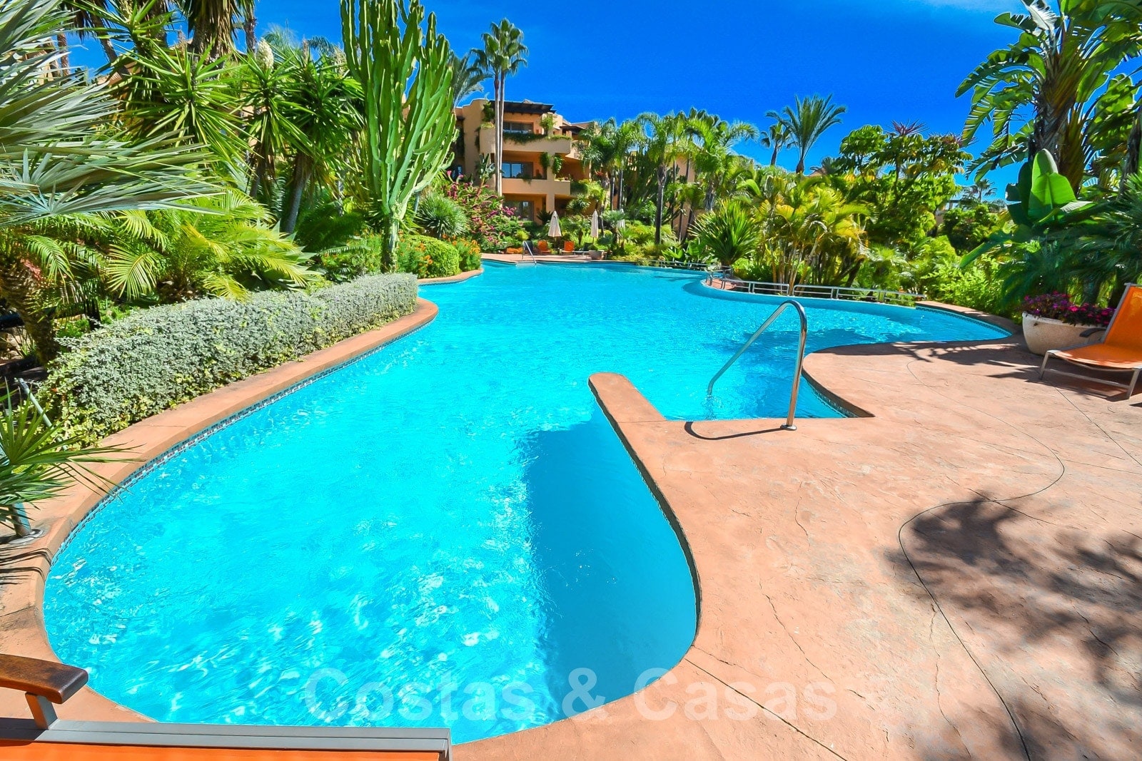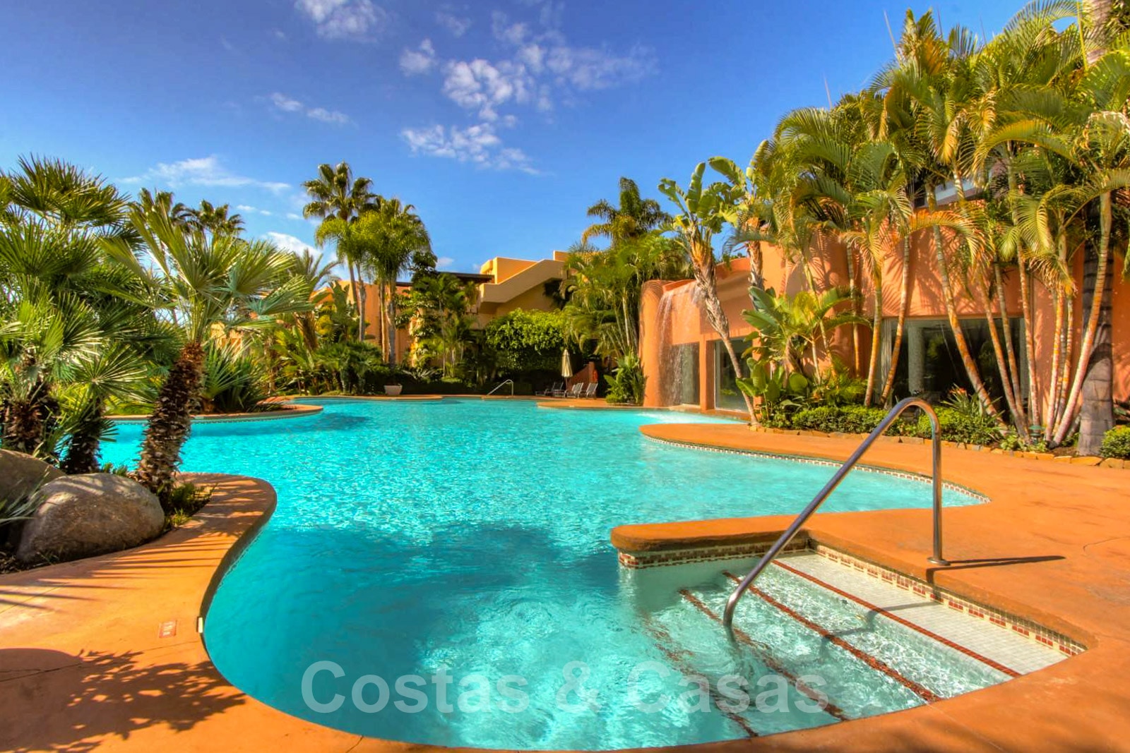 • Er zijn prachtige tuinen met vijvertjes, 2 grote buitenzwembaden met watervallen en een verwarmd binnenzwembad, een fitnessruimte en een Turks bad.