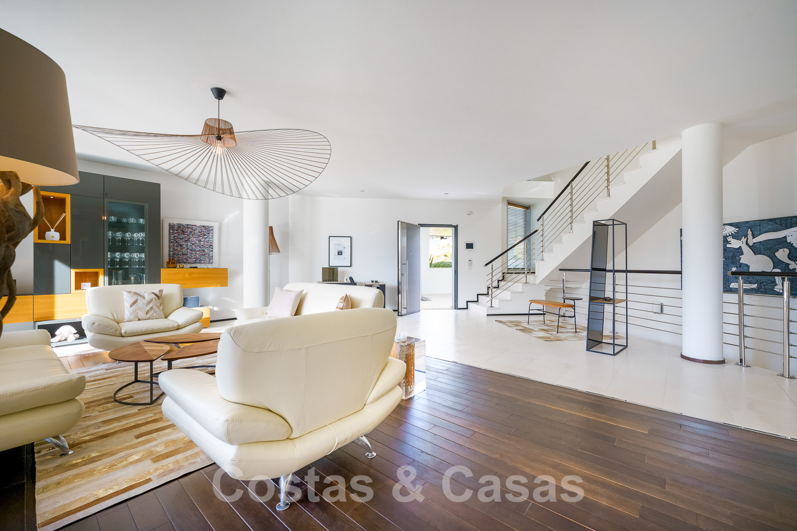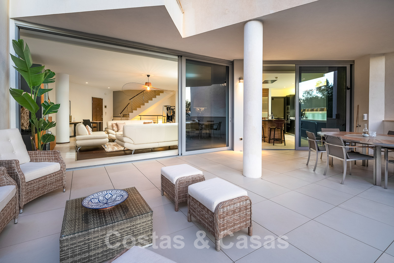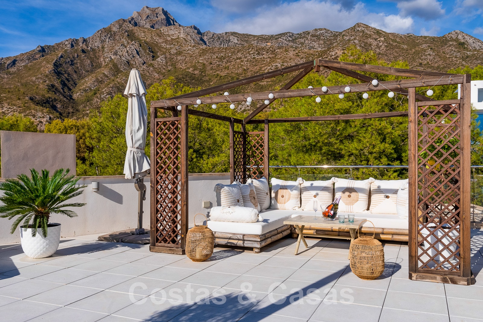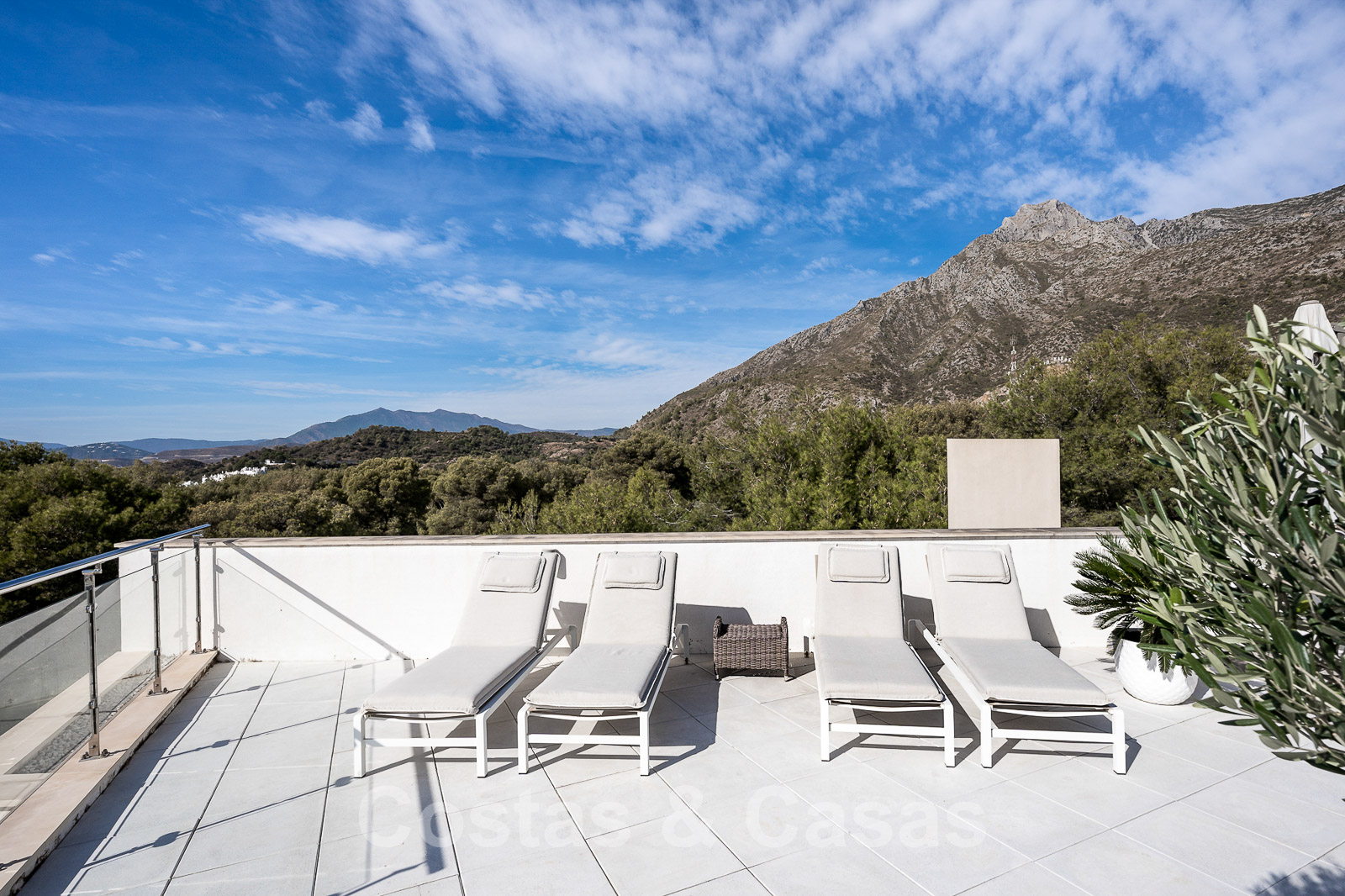 Moderne halfvrijstaande woning met 3 slaapkamers te koop, met spectaculair zeezicht in Sierra Blanca op de Golden Mile te Marbella
