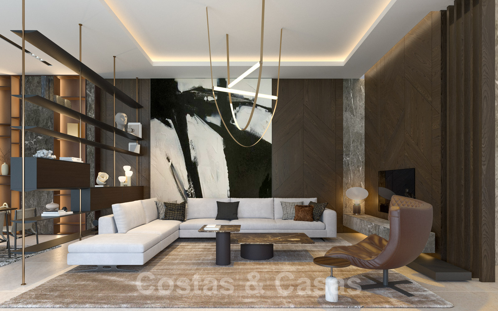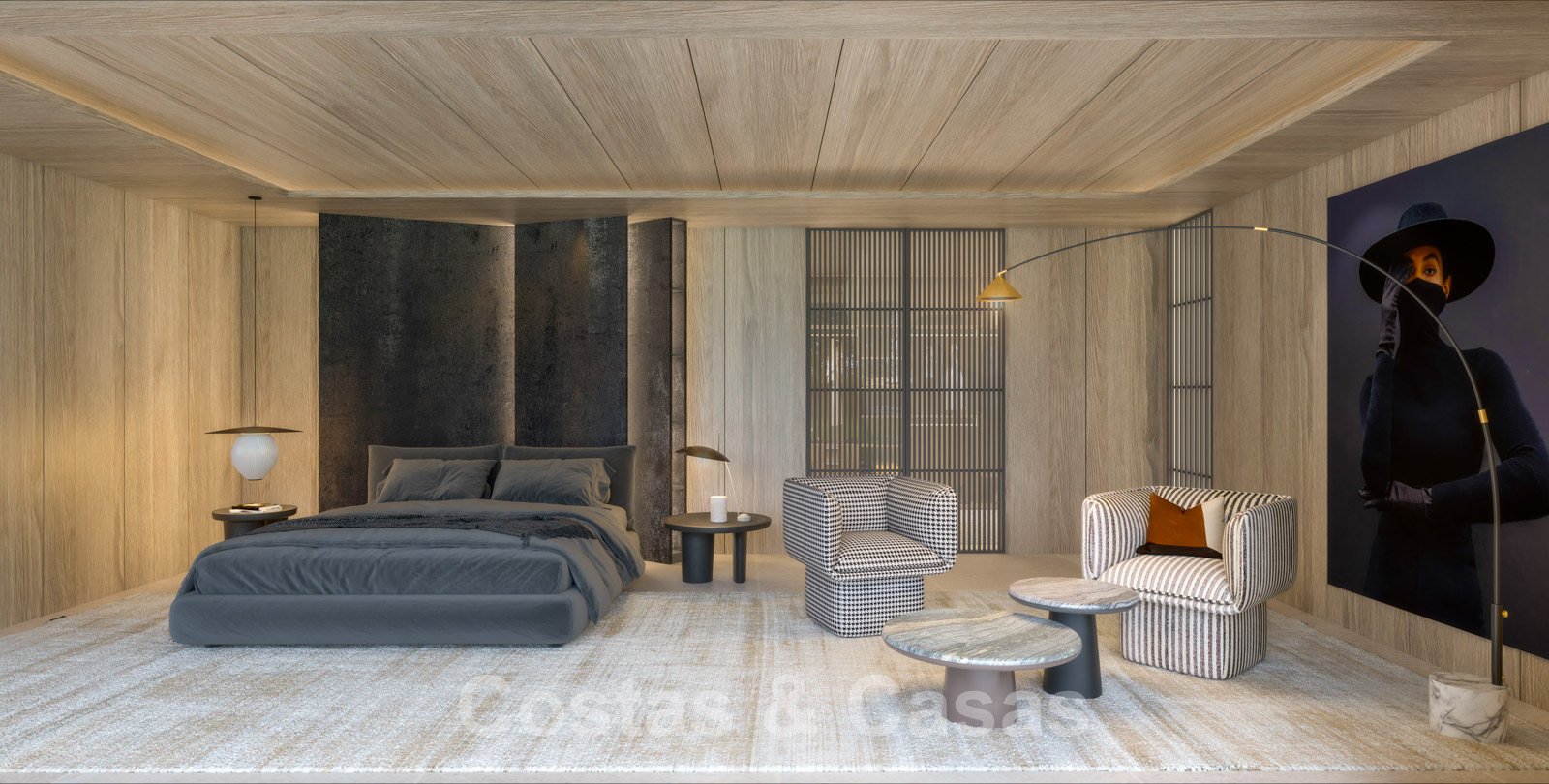 Riante hoofdslaapkamer en-suite met een eigen salon en een indrukwekkende dressing met LED-verlichting.