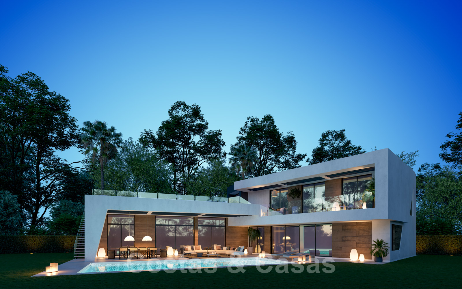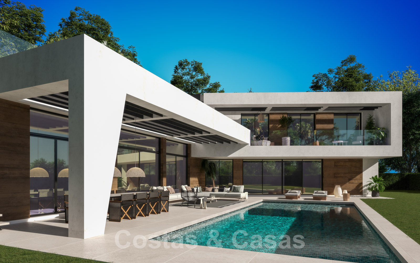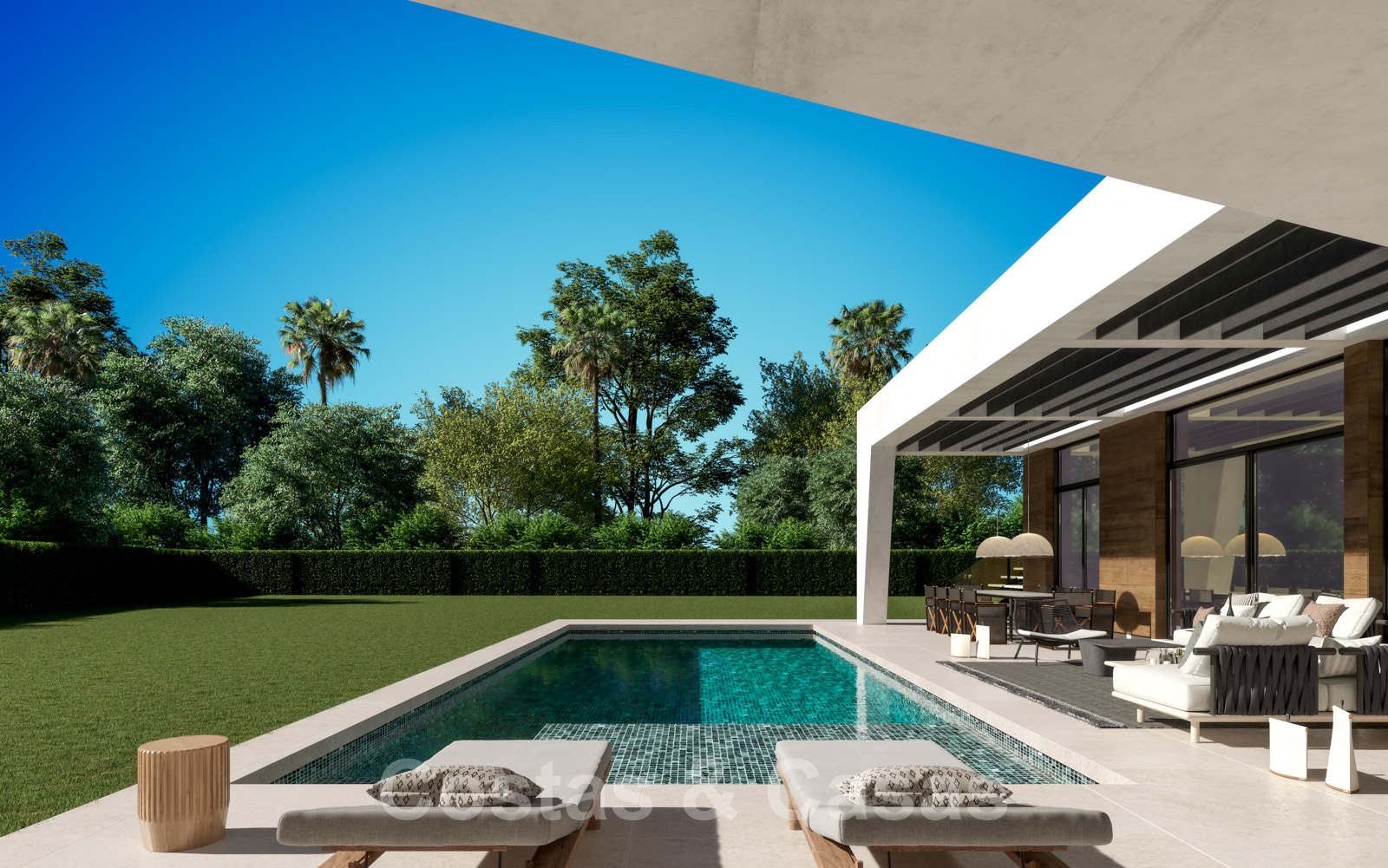 Vooraanstaande, nieuwe luxevilla te koop in moderne stijl in een geprefereerde en rustige buurt van Guadalmina Baja in Marbella