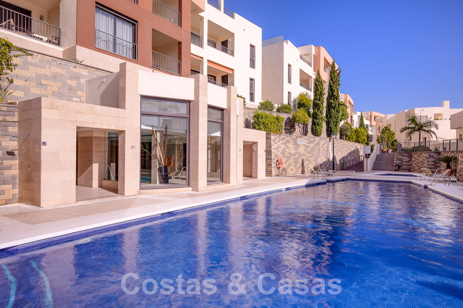 Het complex maakt deel uit van een volledig omheinde urbanisatie met permanente bewaking, een gemeenschappelijke binnen- en buitenzwembad, een fitnesscentrum en spafaciliteiten waaronder een massagekamer en sauna.