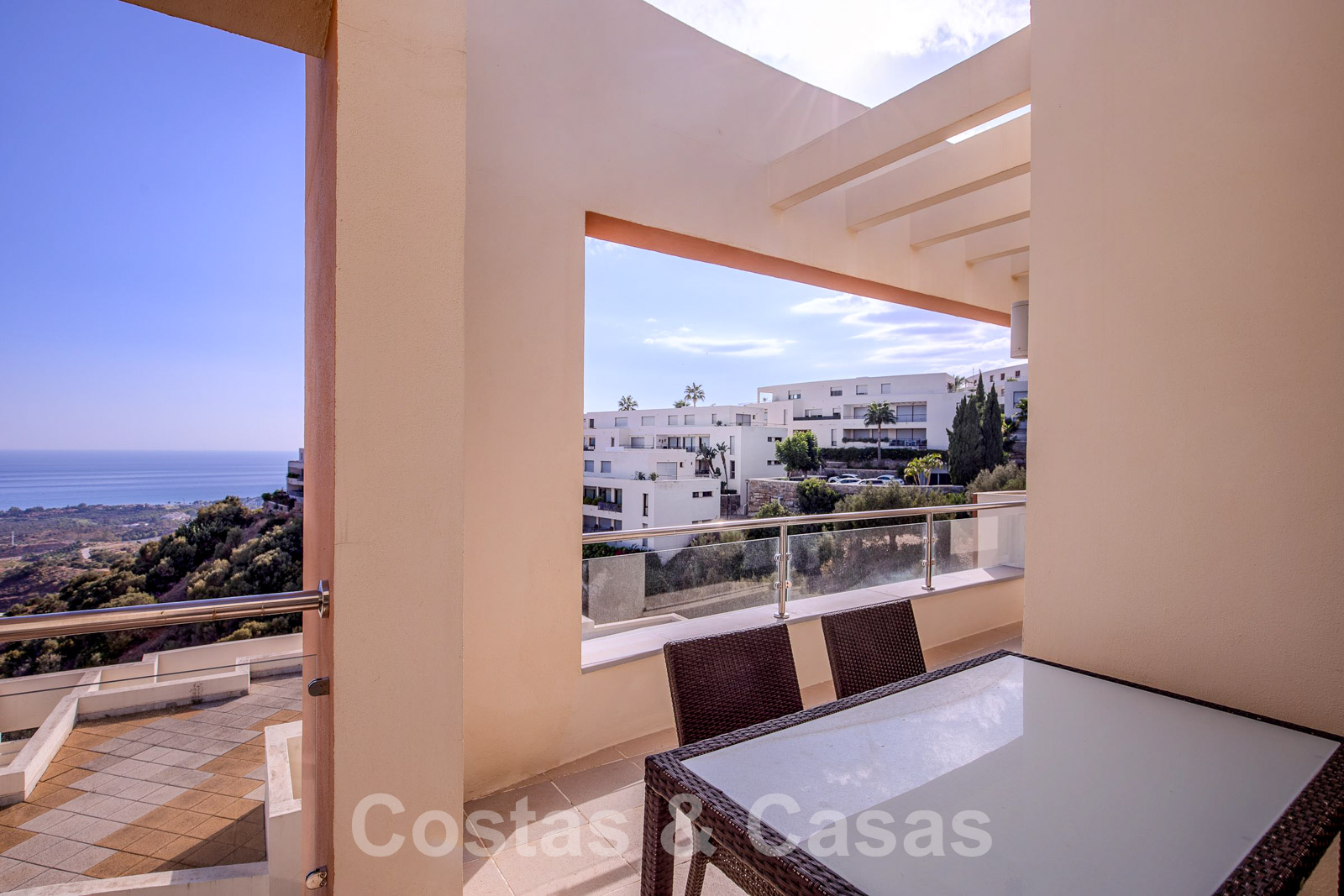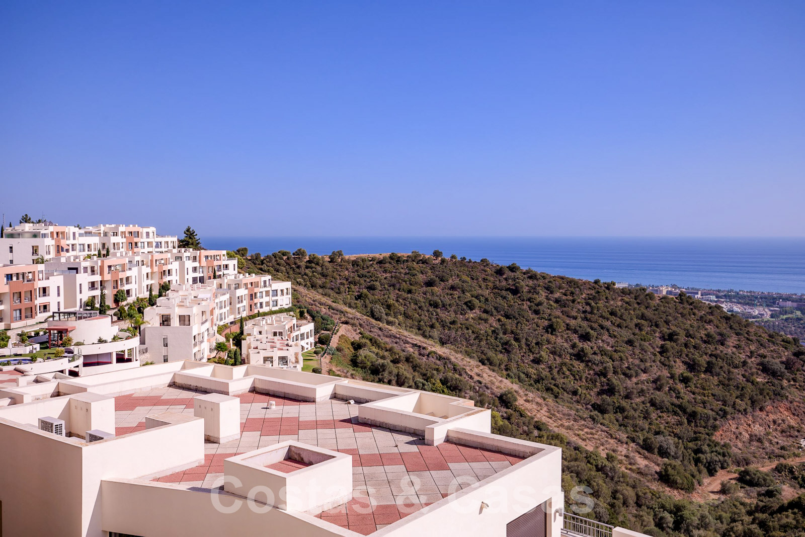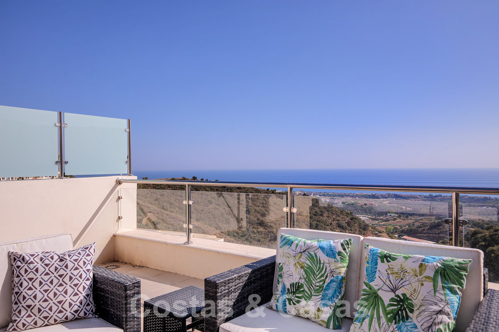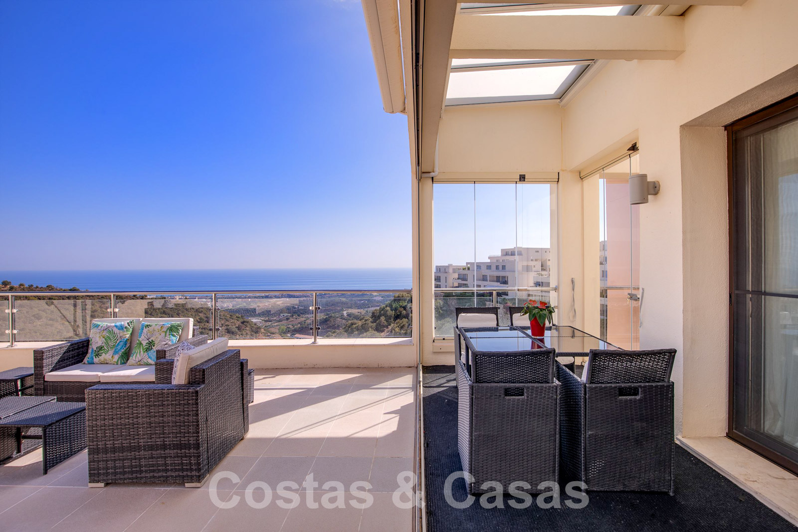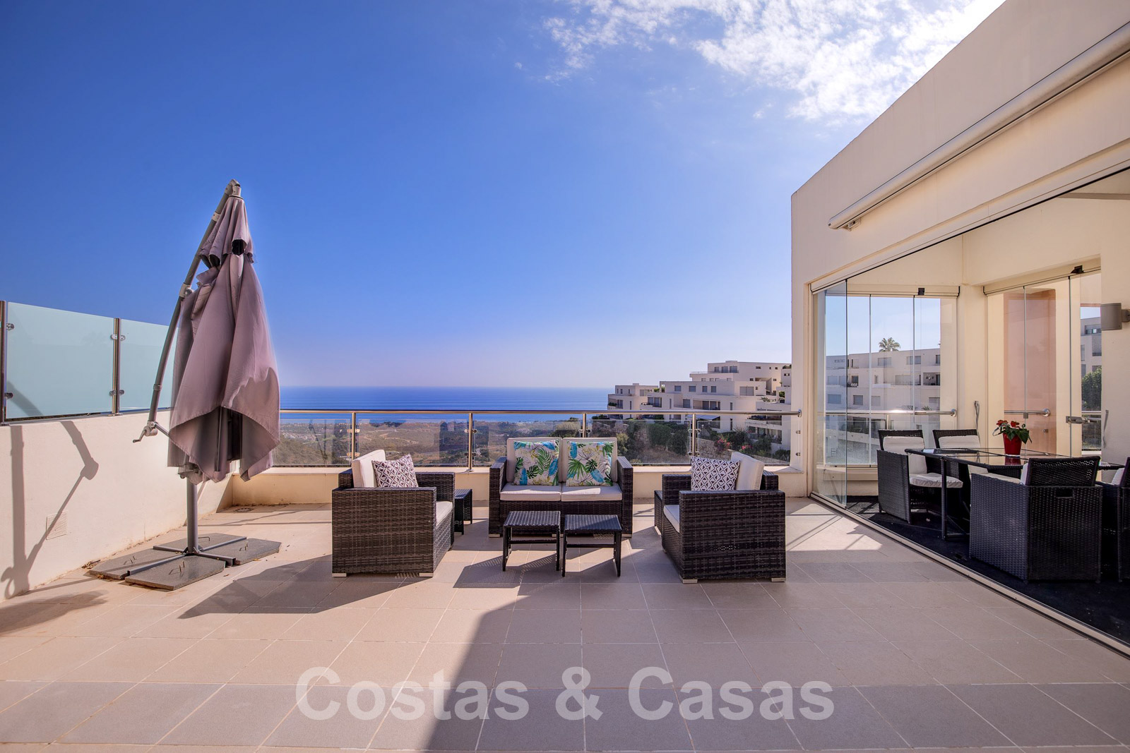 • Uitgestrekt, U-vormig terras met panoramisch zeezicht.